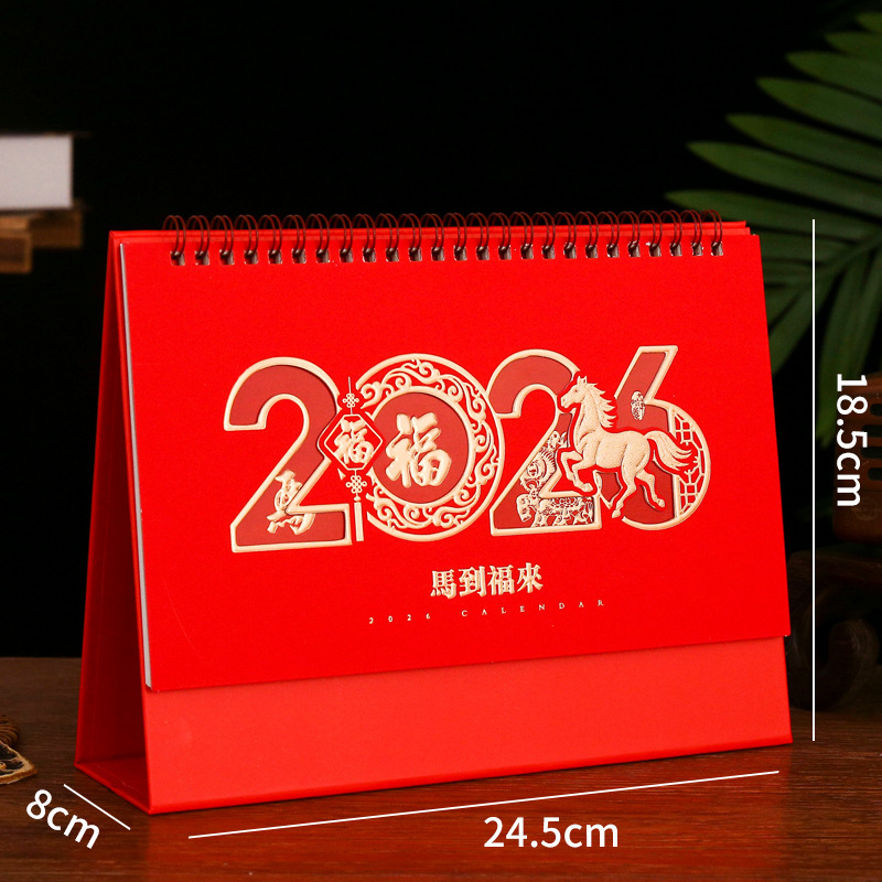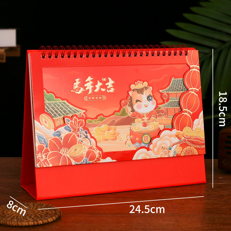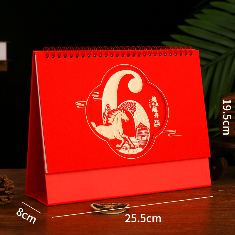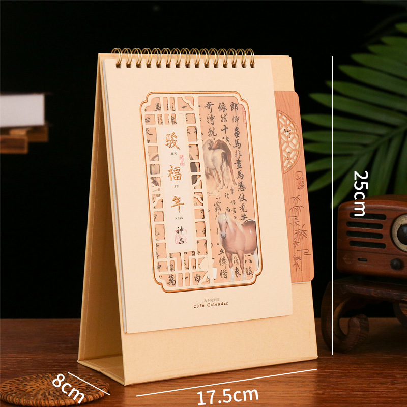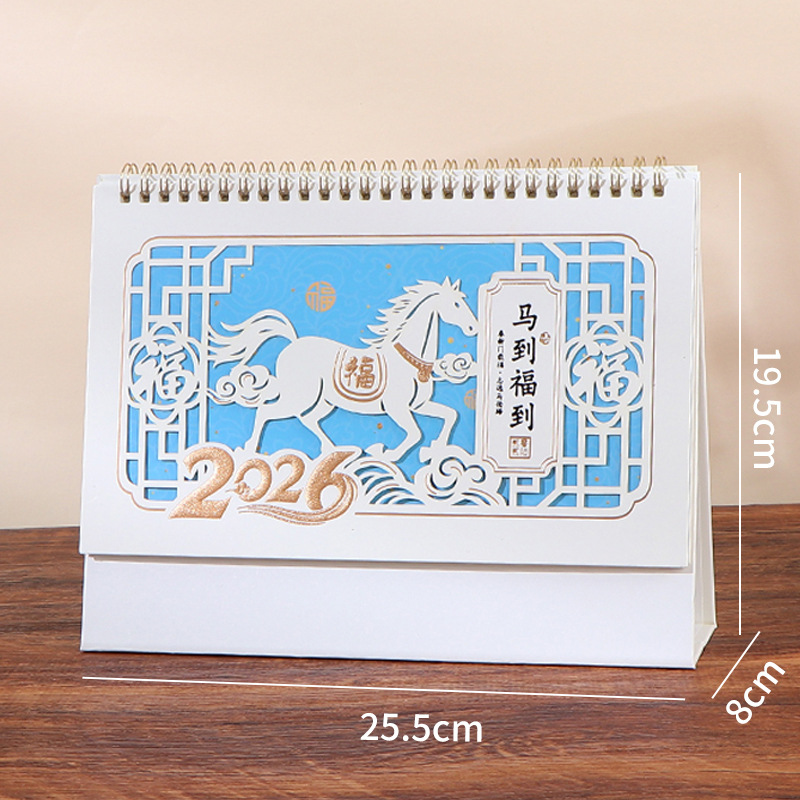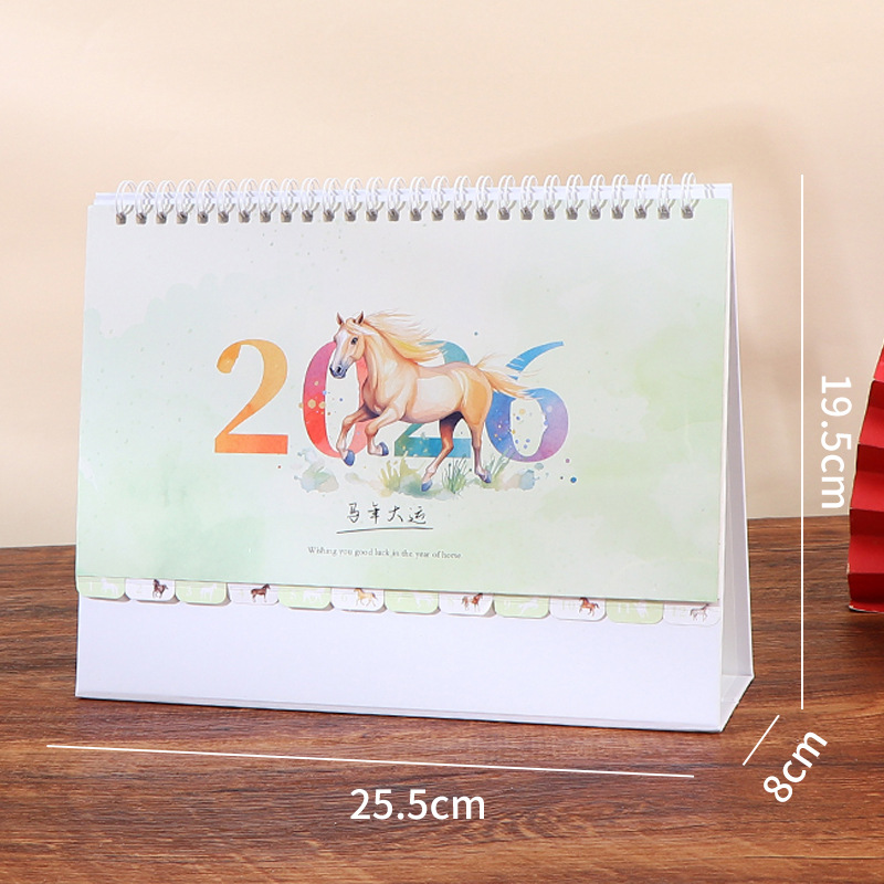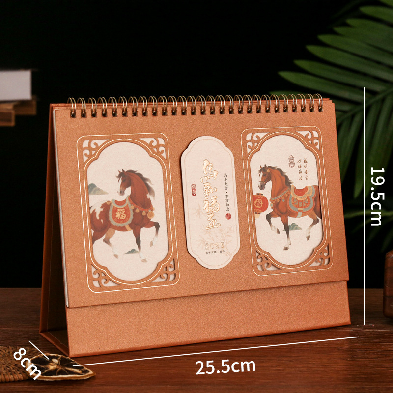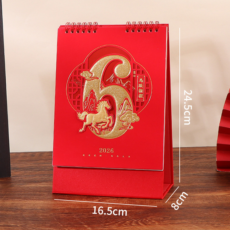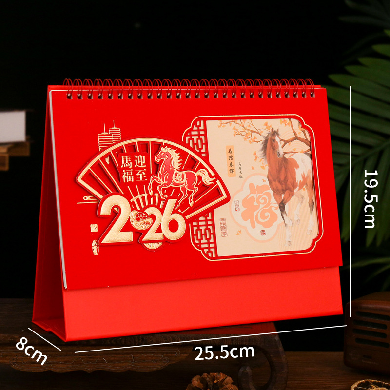 Настольный календарь на 2026 год (Год коня), с индивидуальным логотипом, креативный, нестандартный дизайн, золотое тиснение, декоративное украшение для рабочего стола, оптом