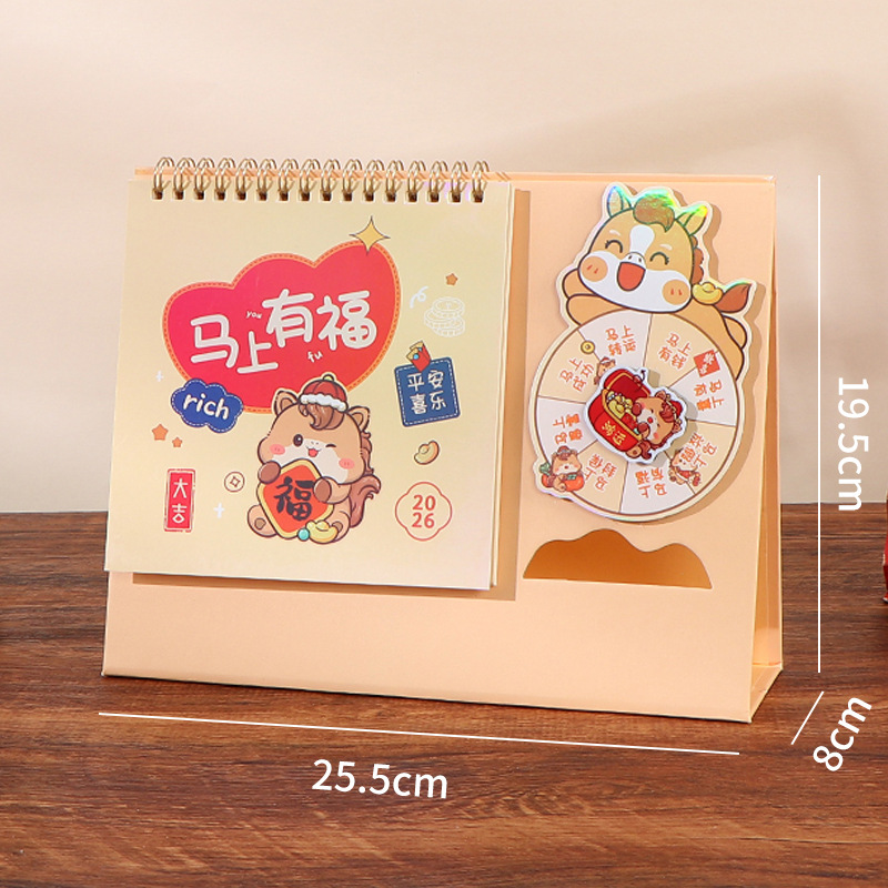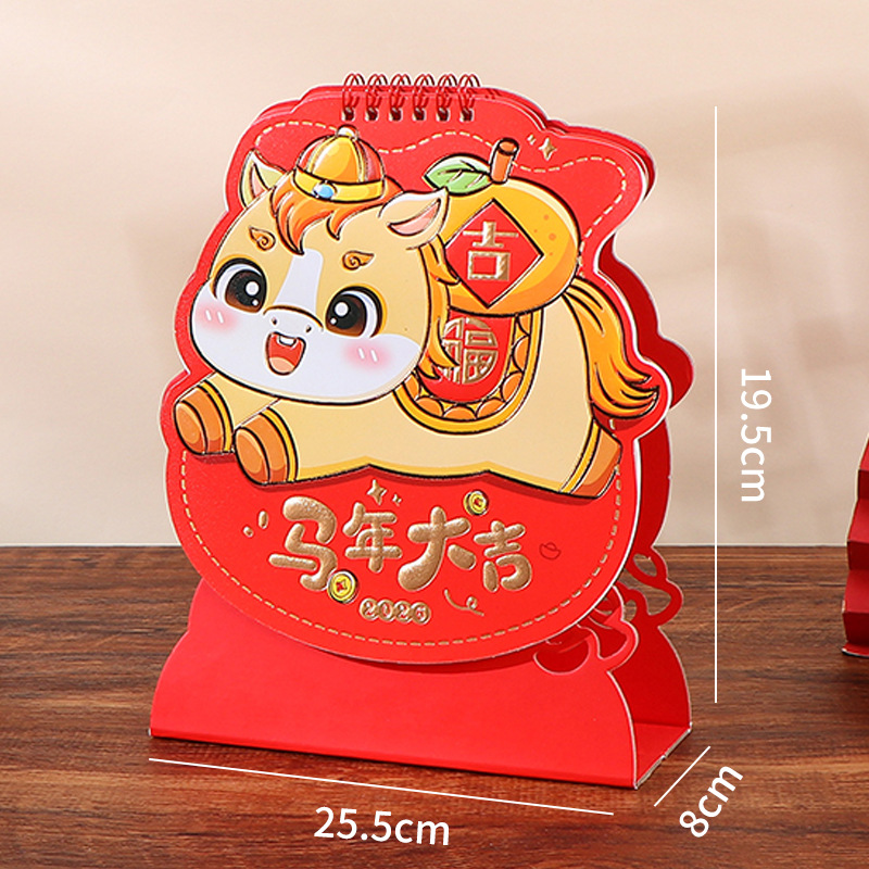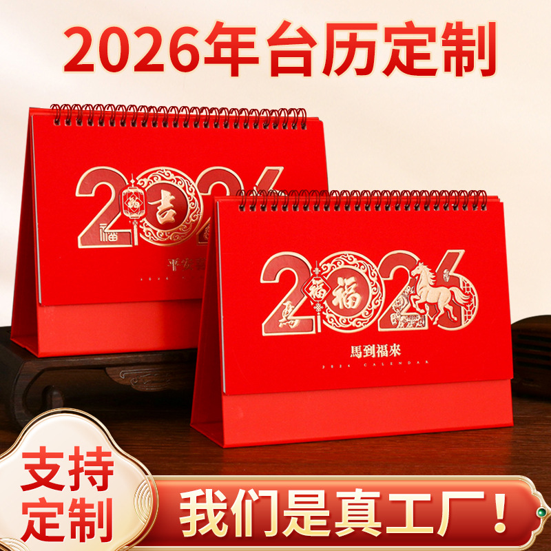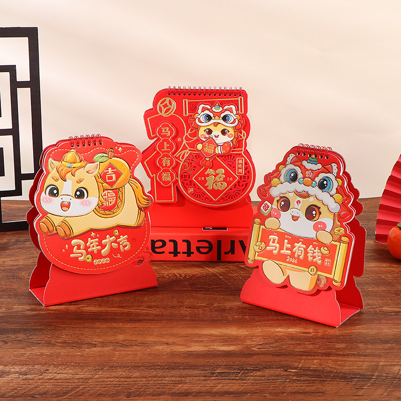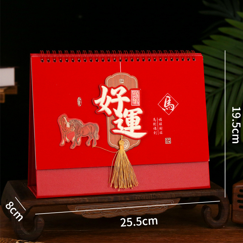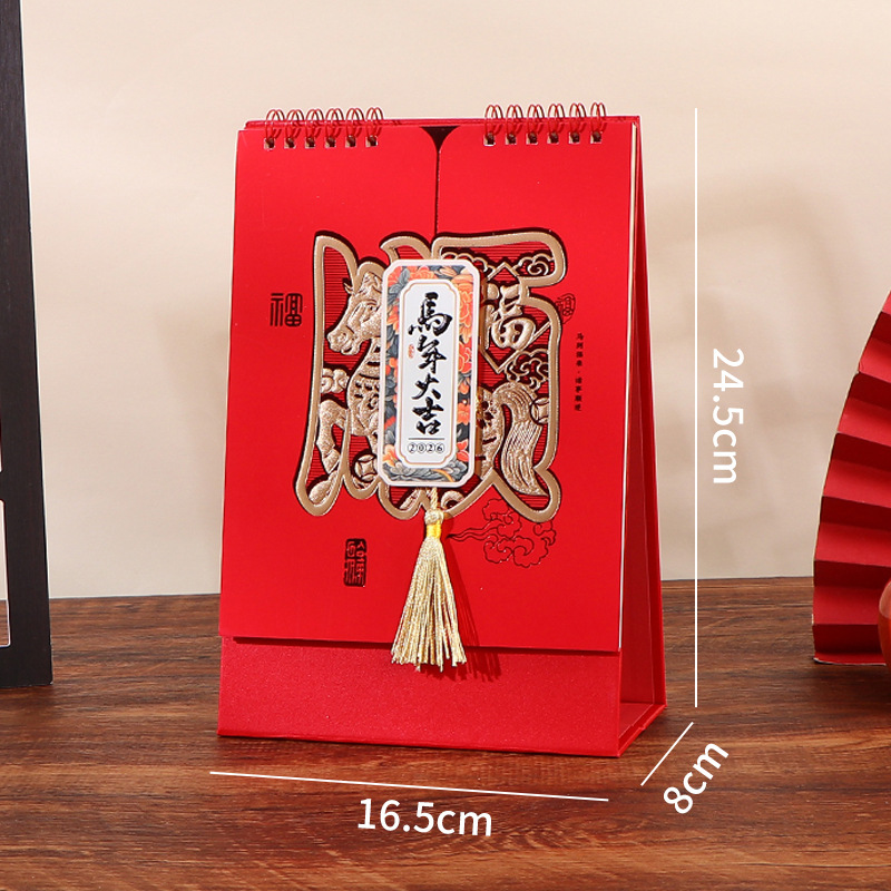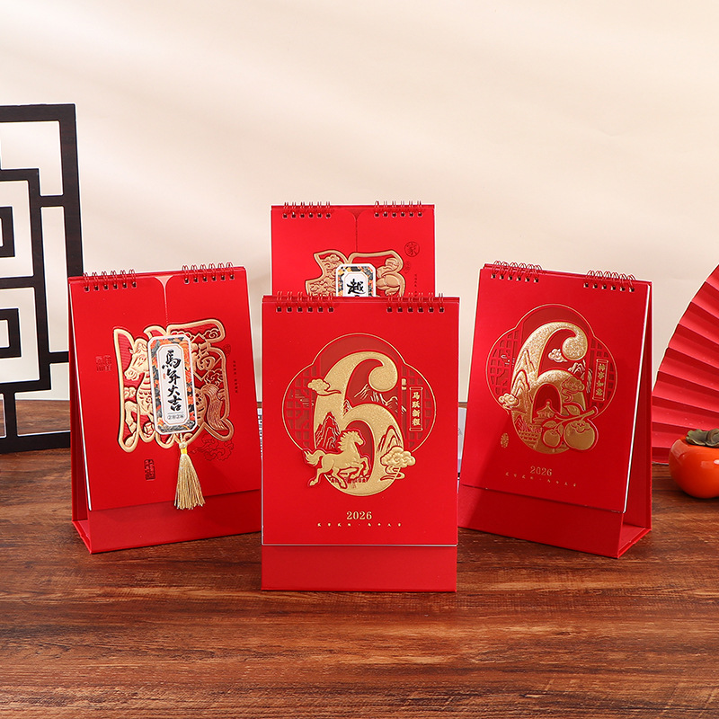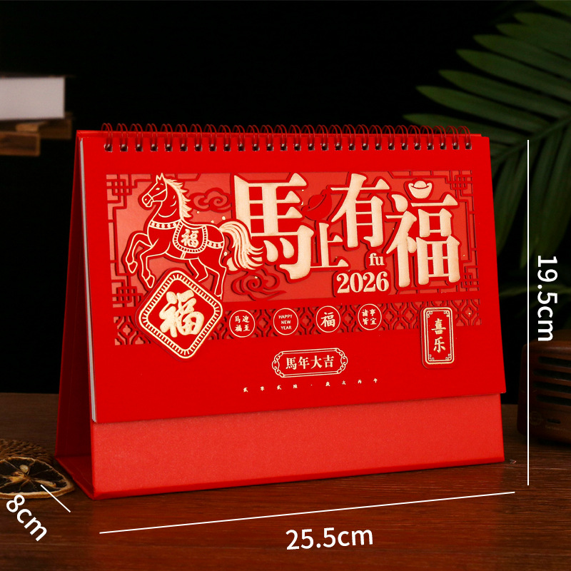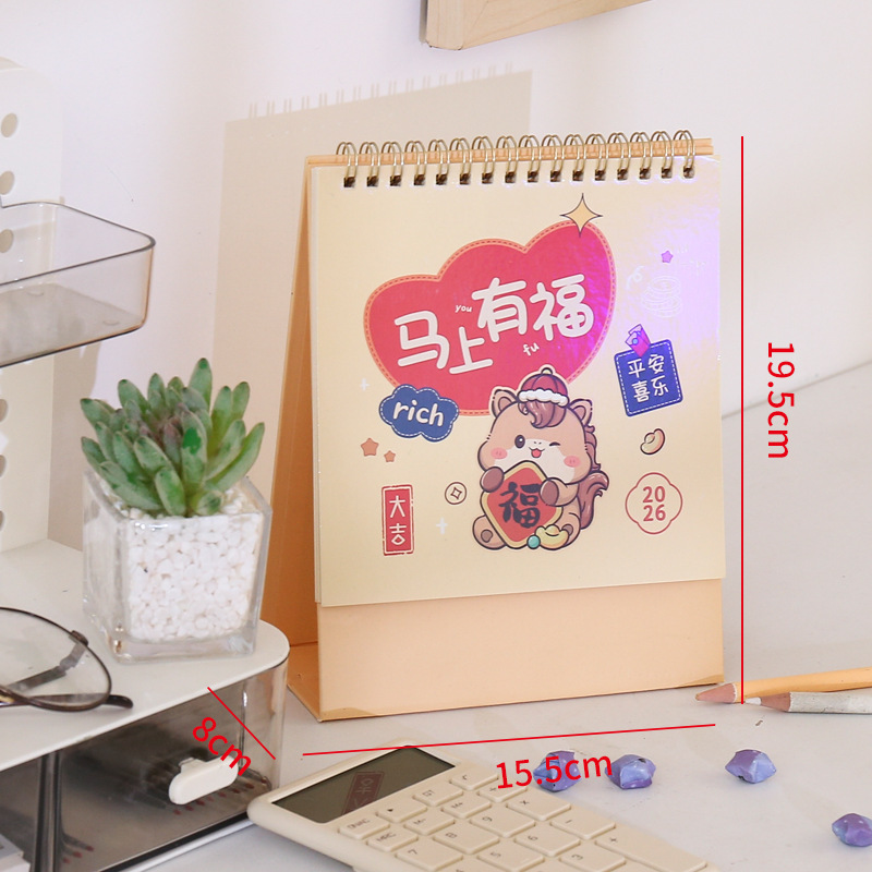 Настольный календарь на 2026 год (Год коня), с индивидуальным логотипом, креативный, нестандартный дизайн, золотое тиснение, декоративное украшение для рабочего стола, оптом