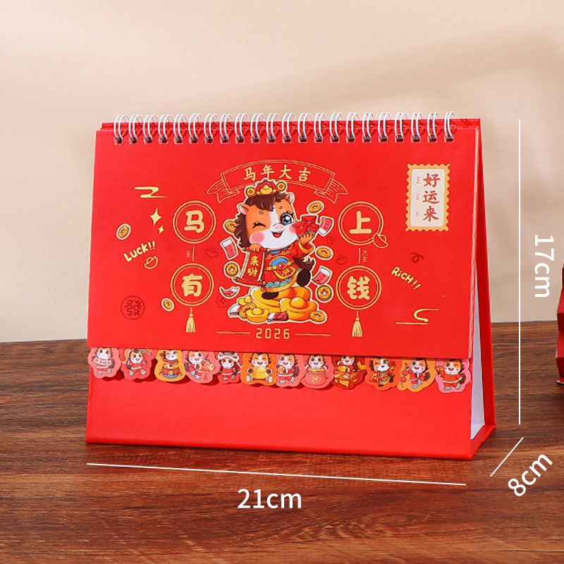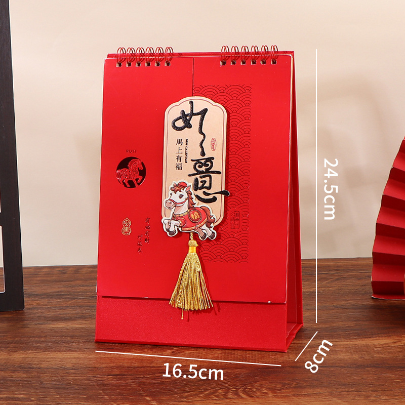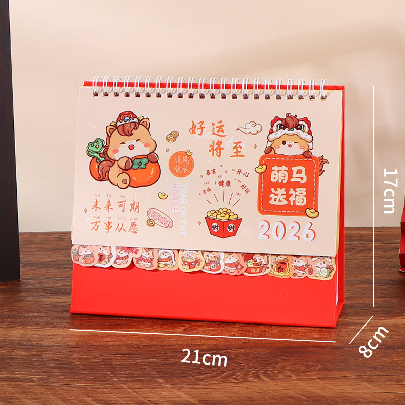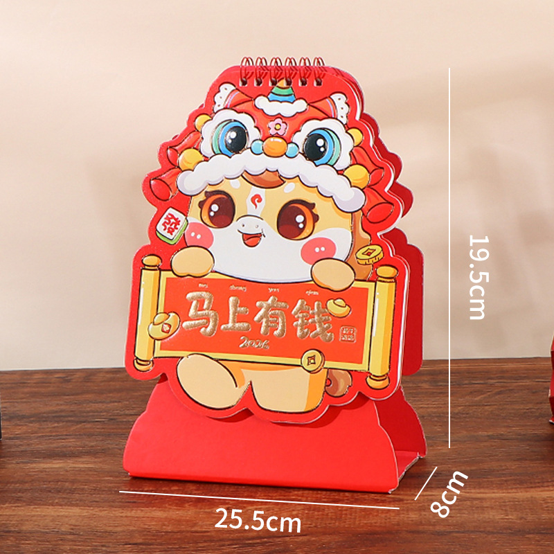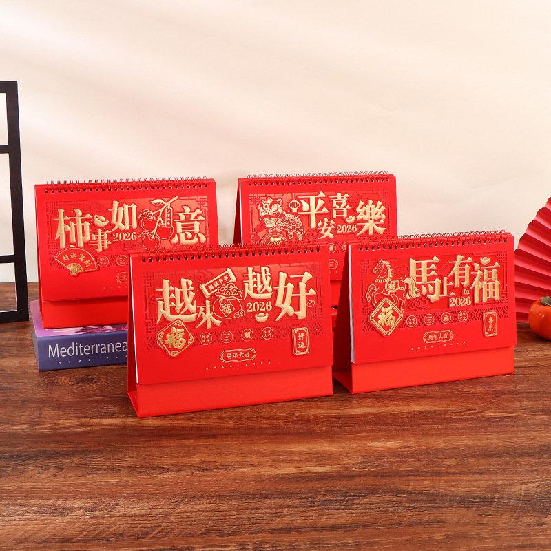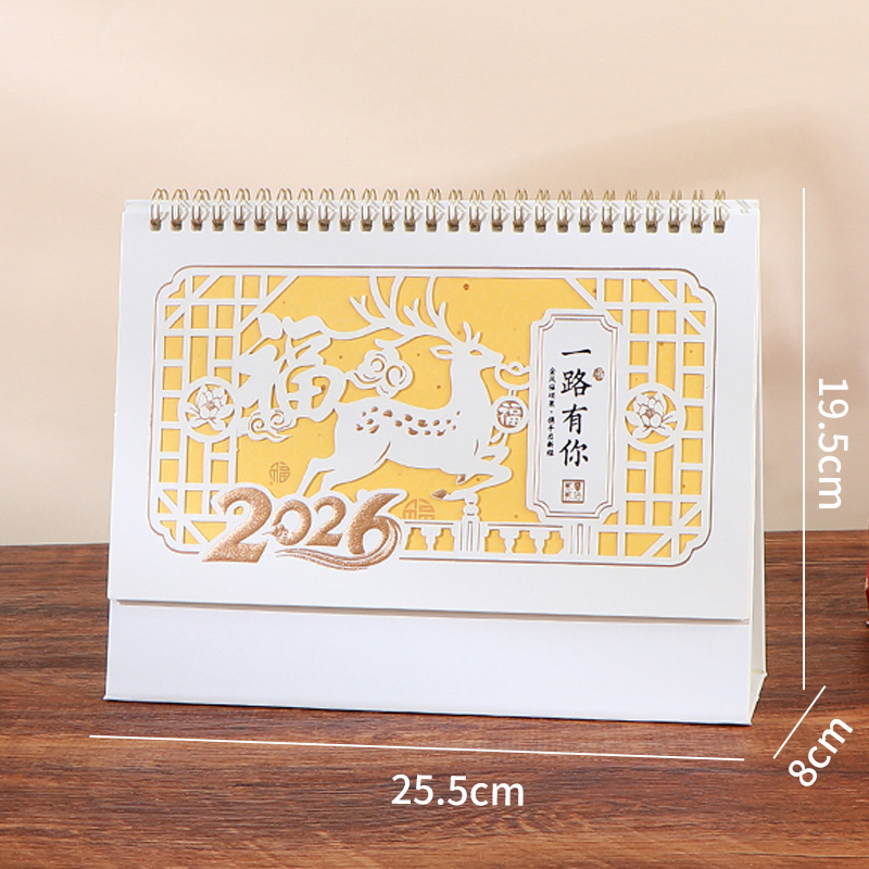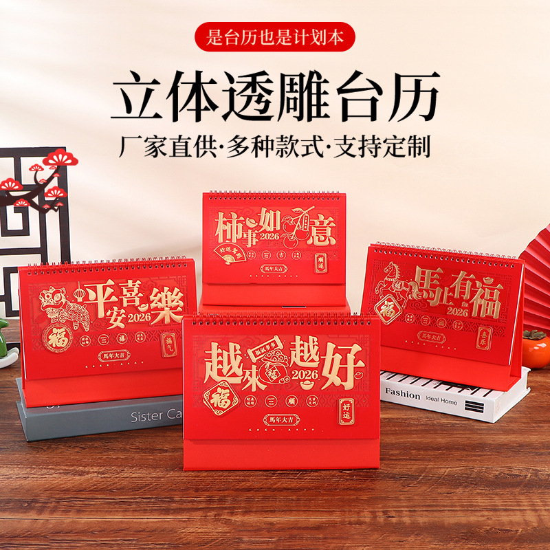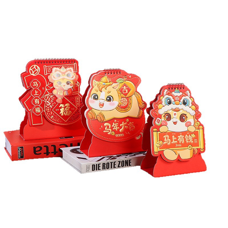 Настольный календарь на 2026 год (Год коня), с индивидуальным логотипом, креативный, нестандартный дизайн, золотое тиснение, декоративное украшение для рабочего стола, оптом
