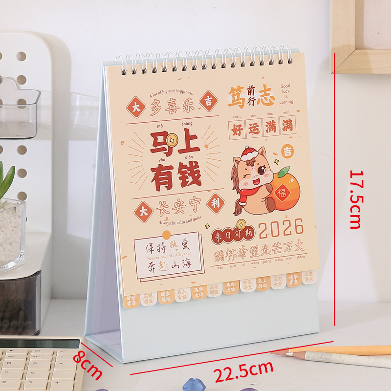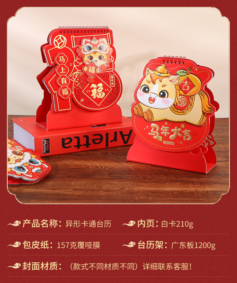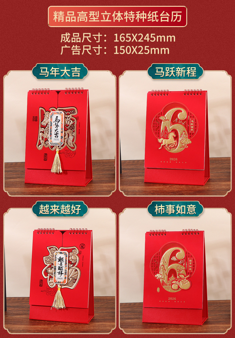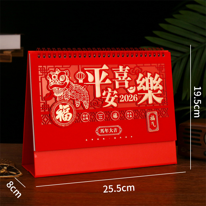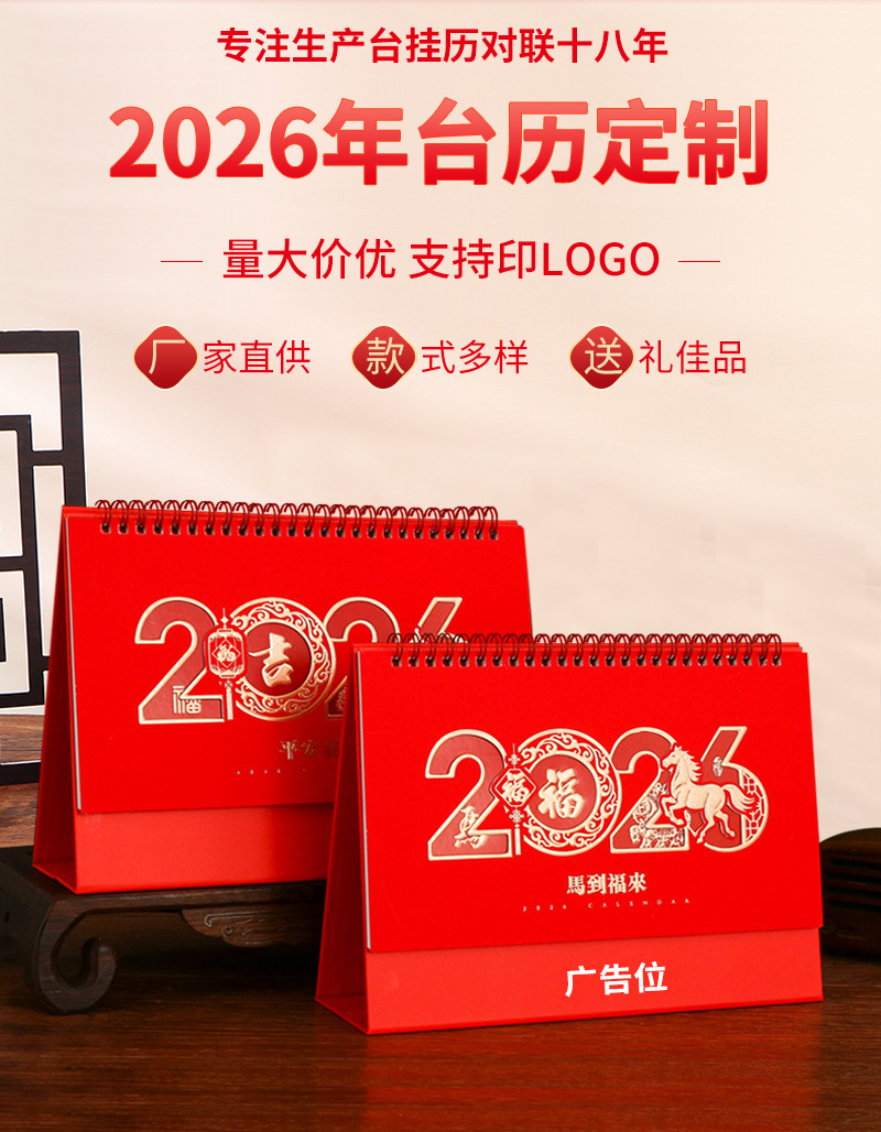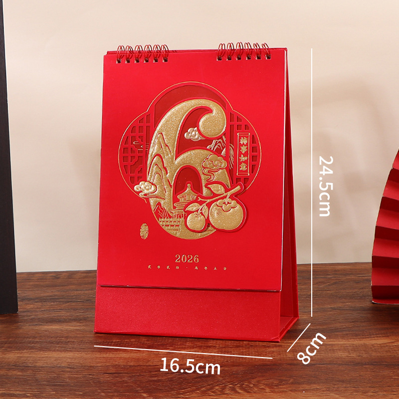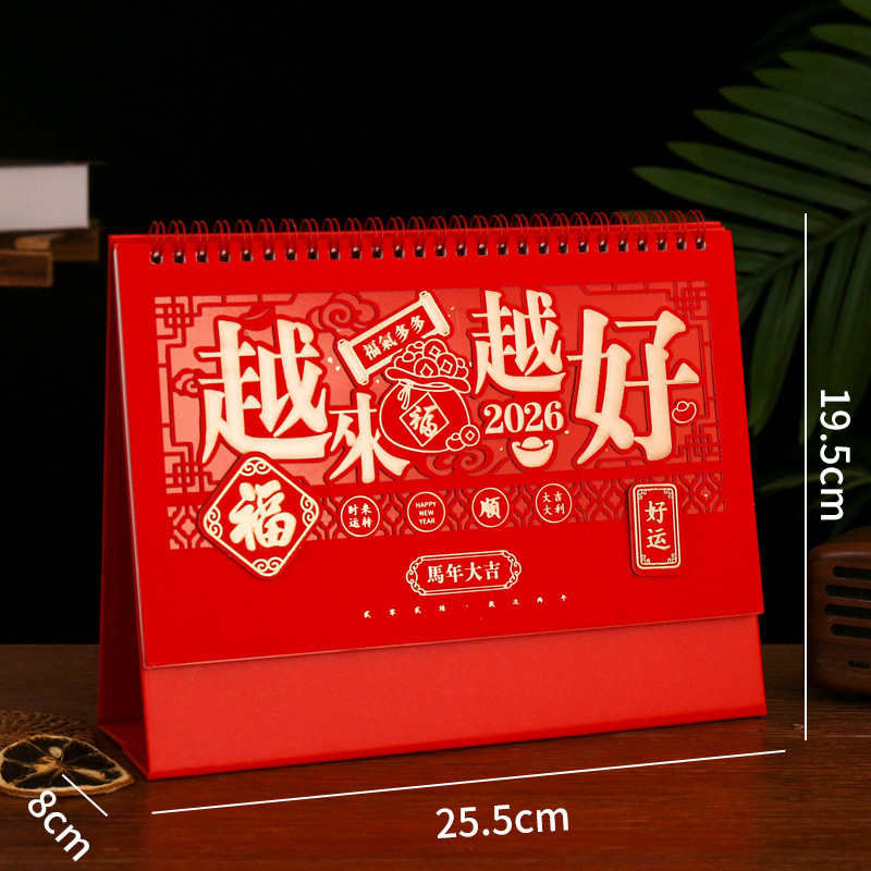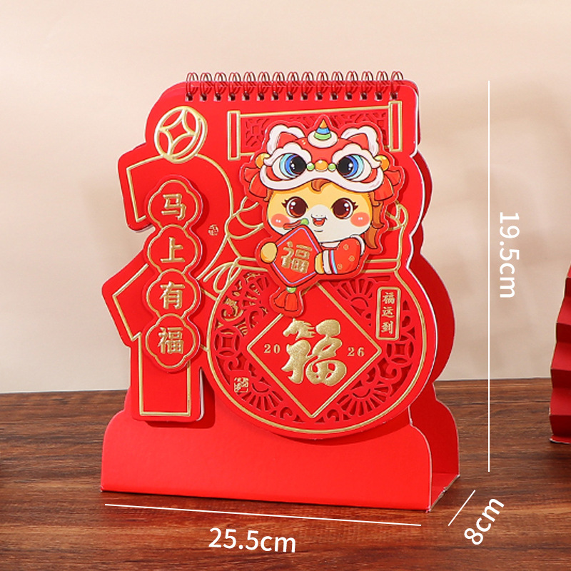Настольный календарь на 2026 год (Год коня), с индивидуальным логотипом, креативный, нестандартный дизайн, золотое тиснение, декоративное украшение для рабочего стола, оптом