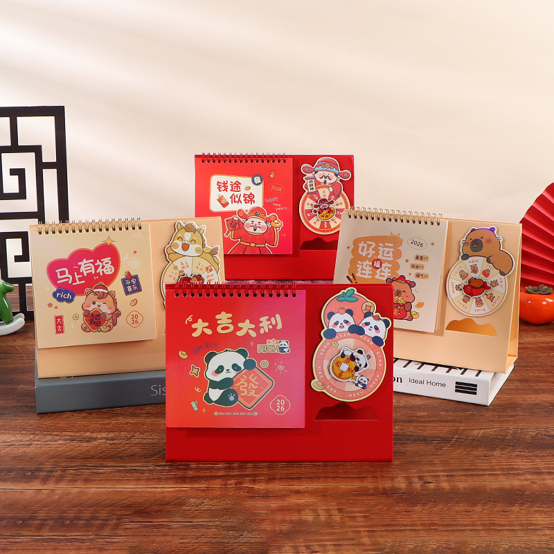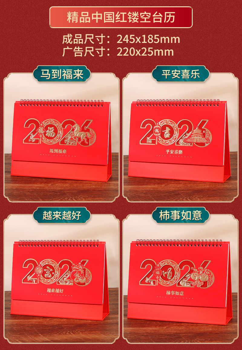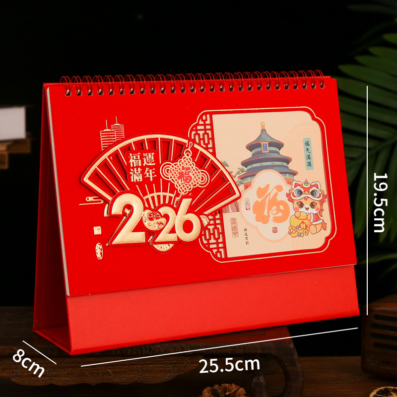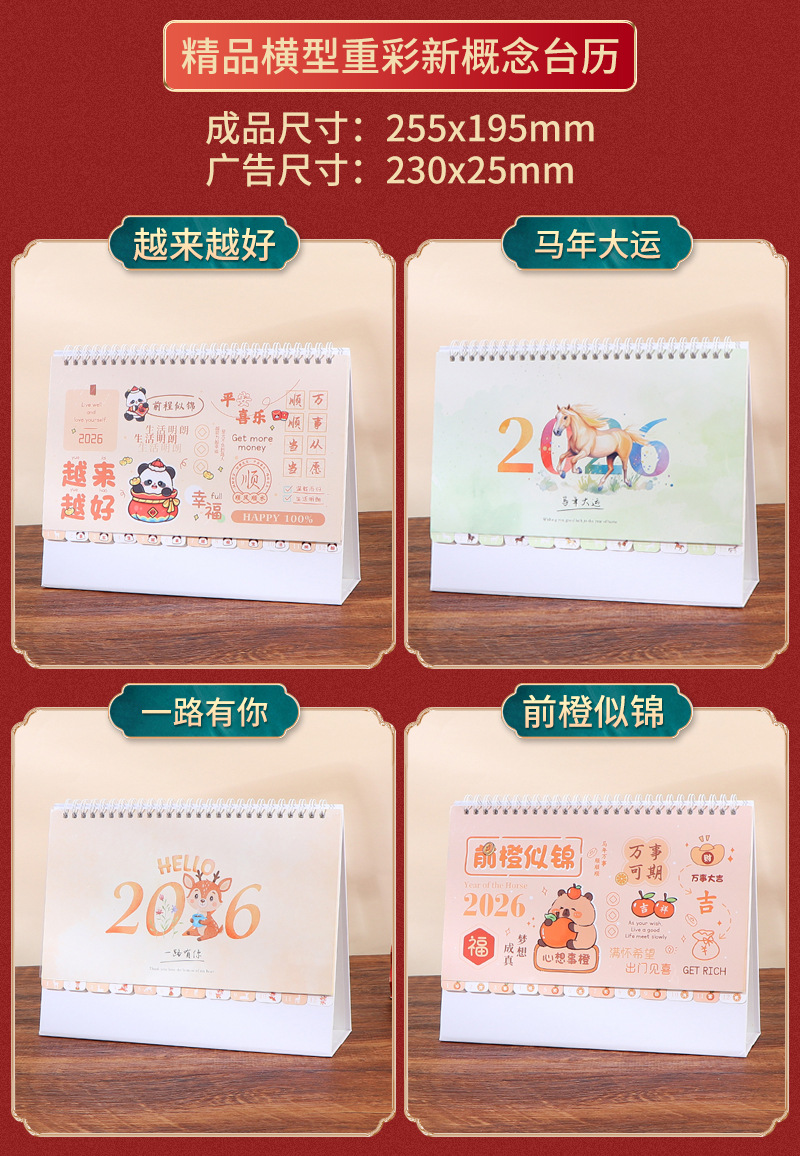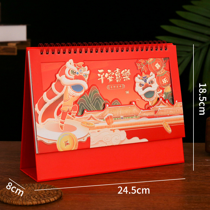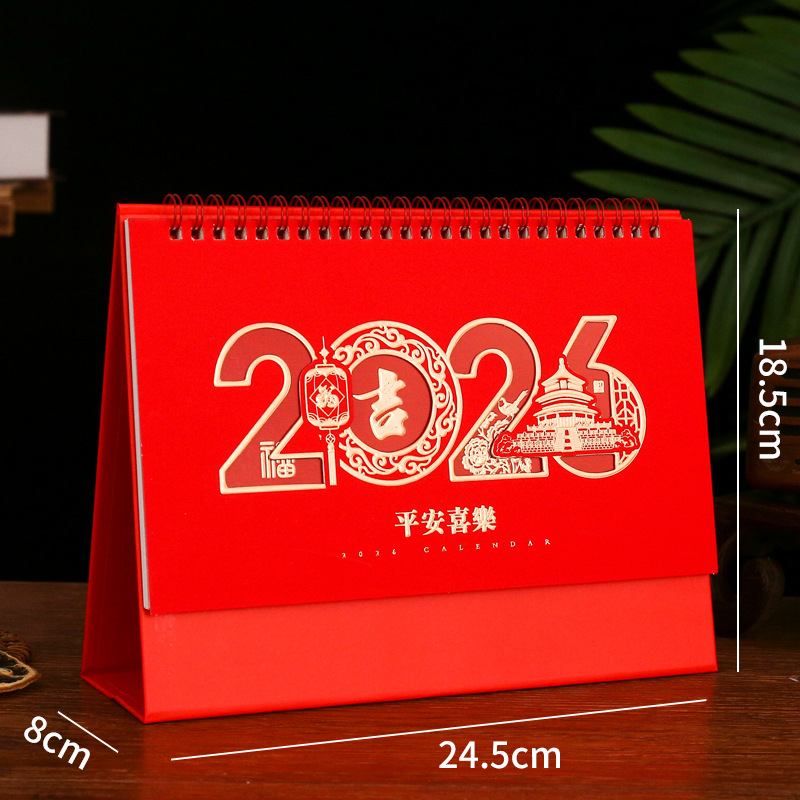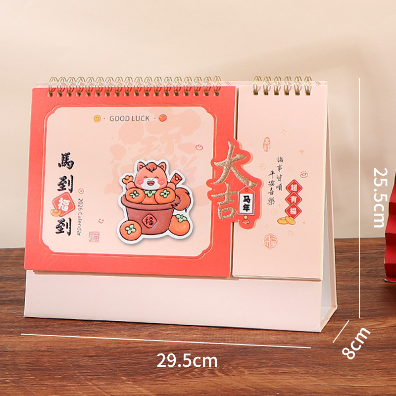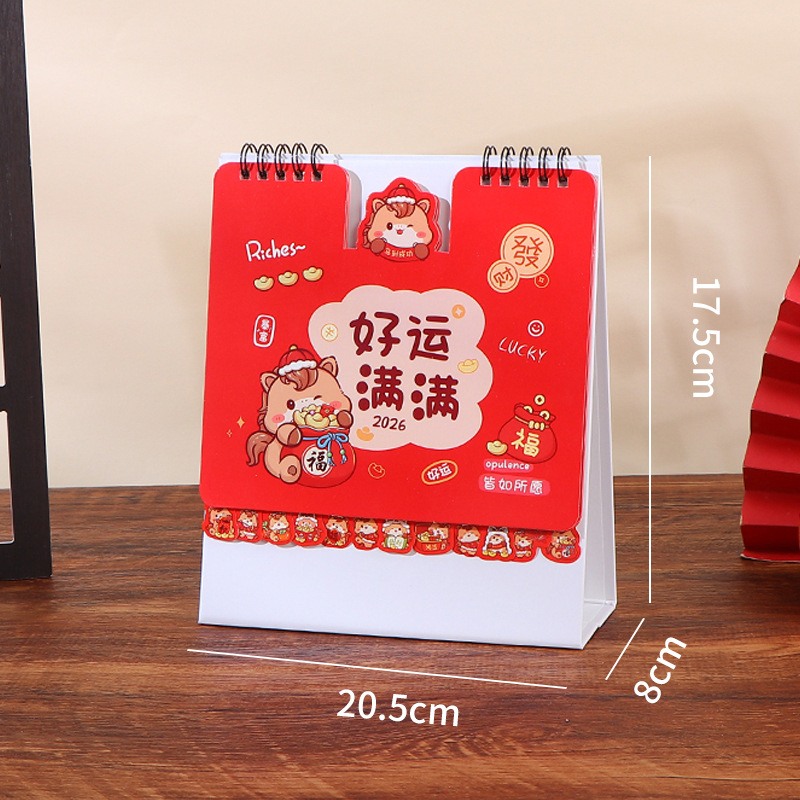 Настольный календарь на 2026 год (Год коня), с индивидуальным логотипом, креативный, нестандартный дизайн, золотое тиснение, декоративное украшение для рабочего стола, оптом