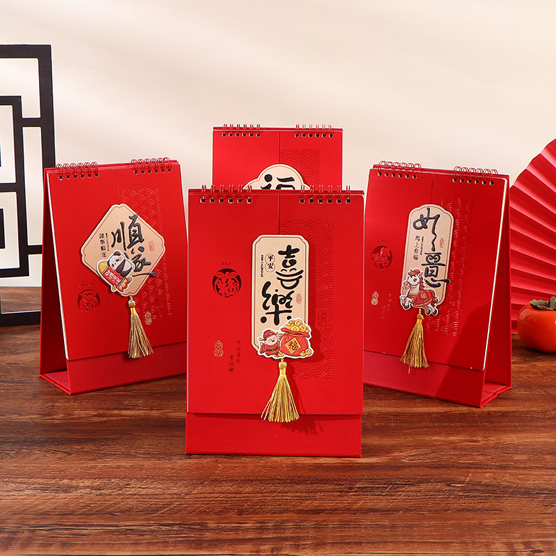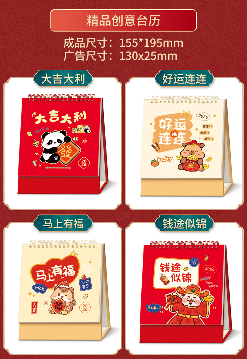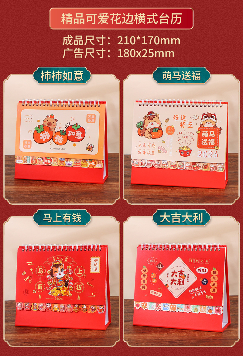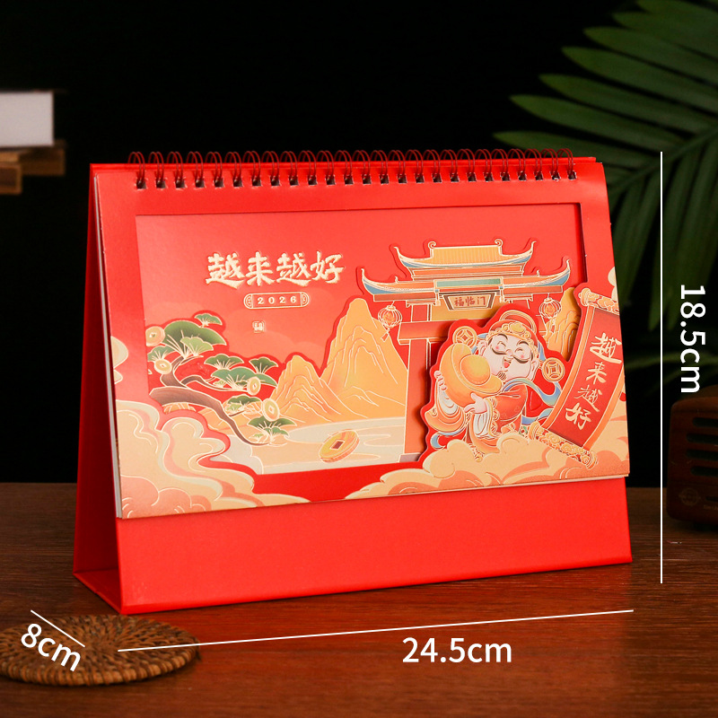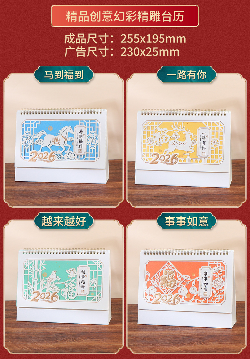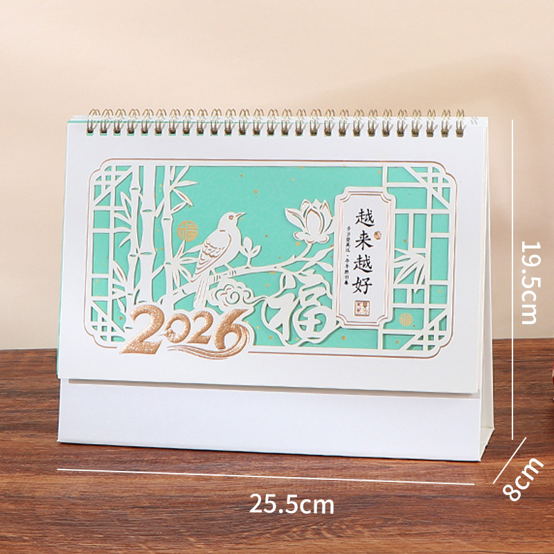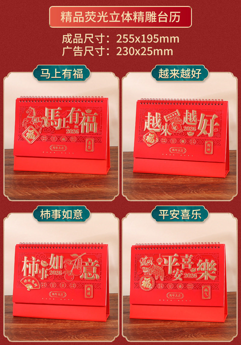 Настольный календарь на 2026 год (Год коня), с индивидуальным логотипом, креативный, нестандартный дизайн, золотое тиснение, декоративное украшение для рабочего стола, оптом