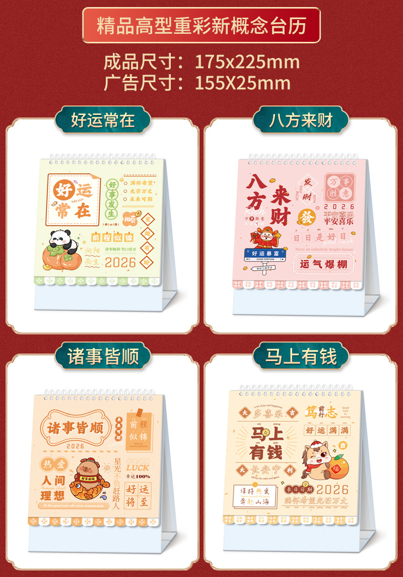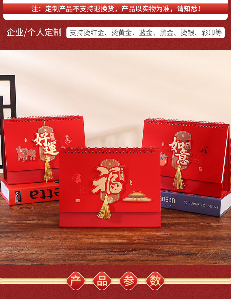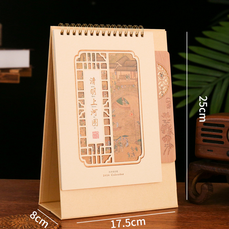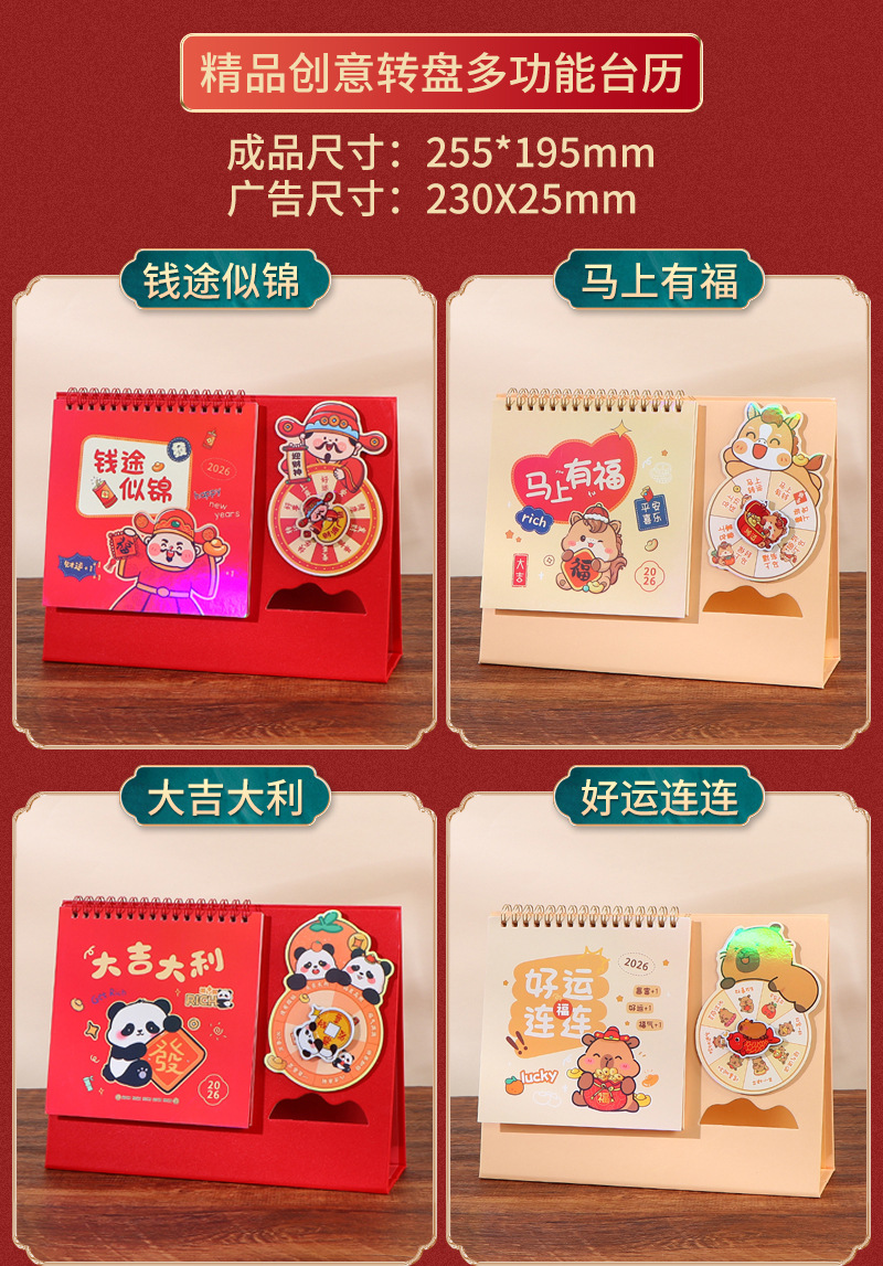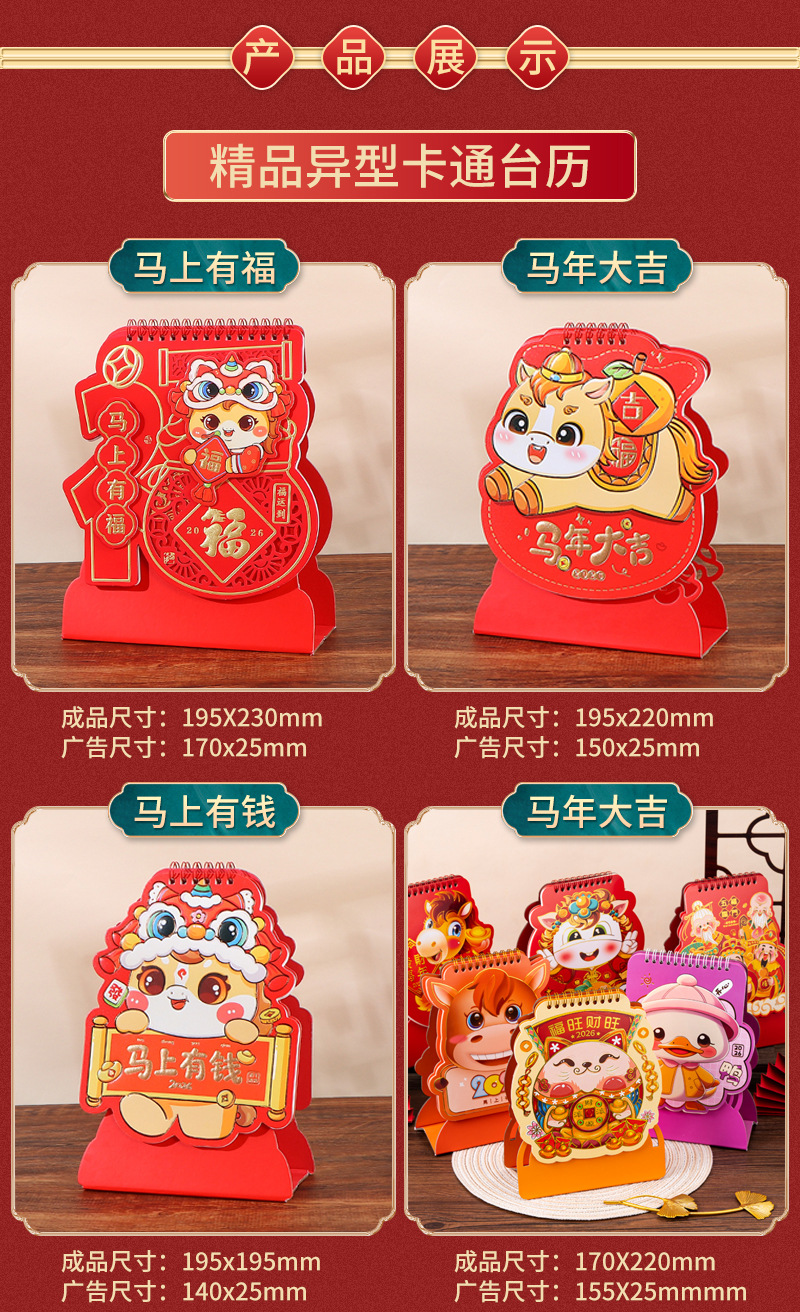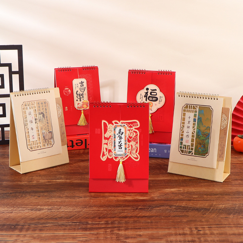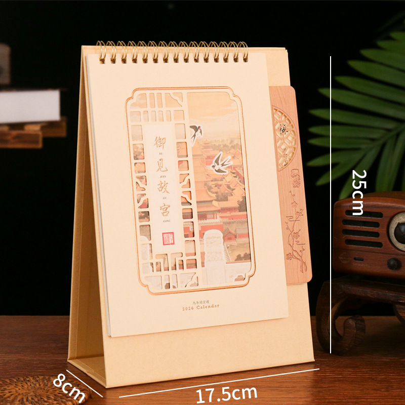 Настольный календарь на 2026 год (Год коня), с индивидуальным логотипом, креативный, нестандартный дизайн, золотое тиснение, декоративное украшение для рабочего стола, оптом