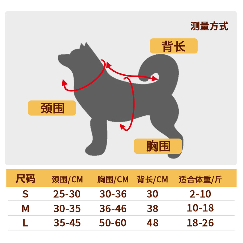 【 产品尺寸 】:S(适合2-10斤) m(适合10-18斤) L(适合18-26斤)