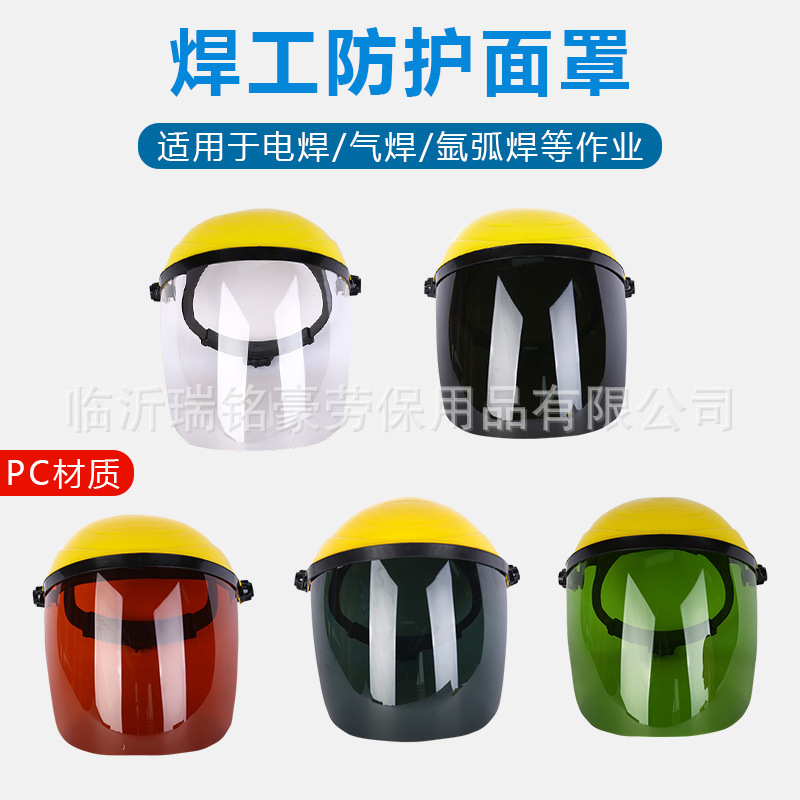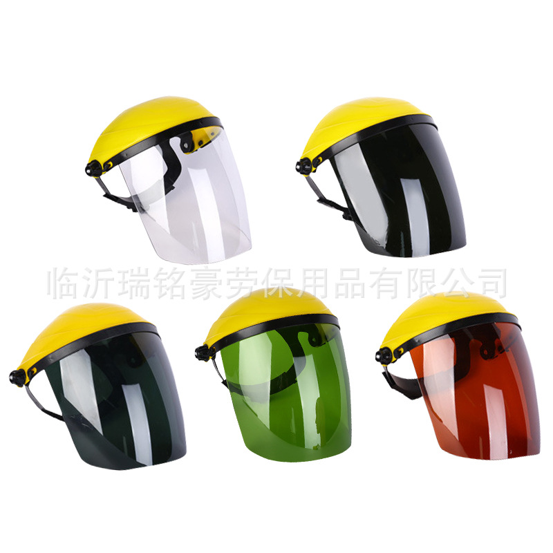 Фабрика поставляет желтую верхнюю маску для монтажа на голове из ПК, теплоизоляционную защитную маску для резки и полировки экрана с защитой от брызг