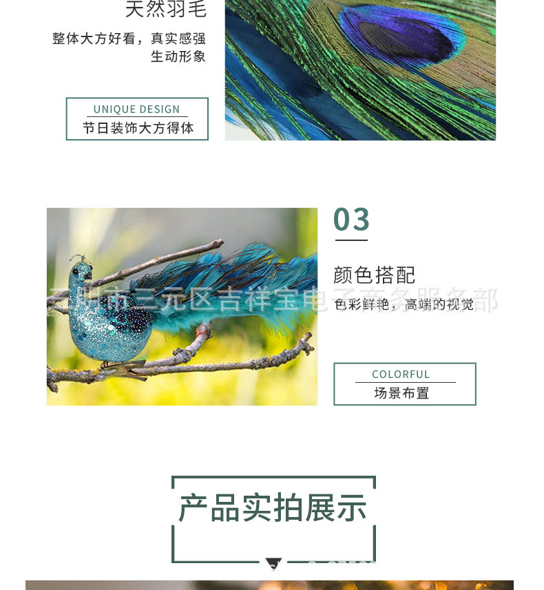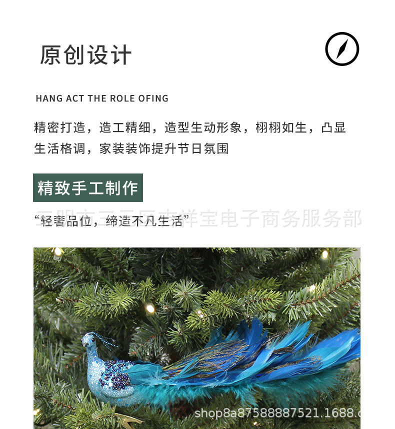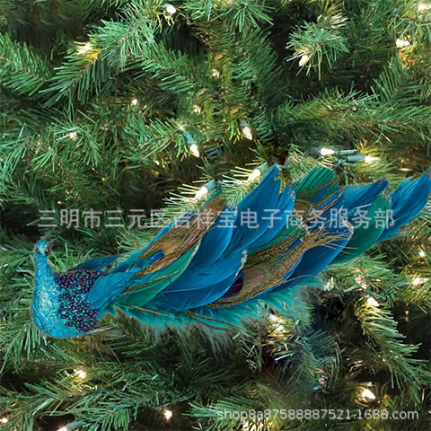 2023 Трансграничная новая рождественская елка симулятор стерео павлин подвеска ремесла натуральное перо рождественский подарок