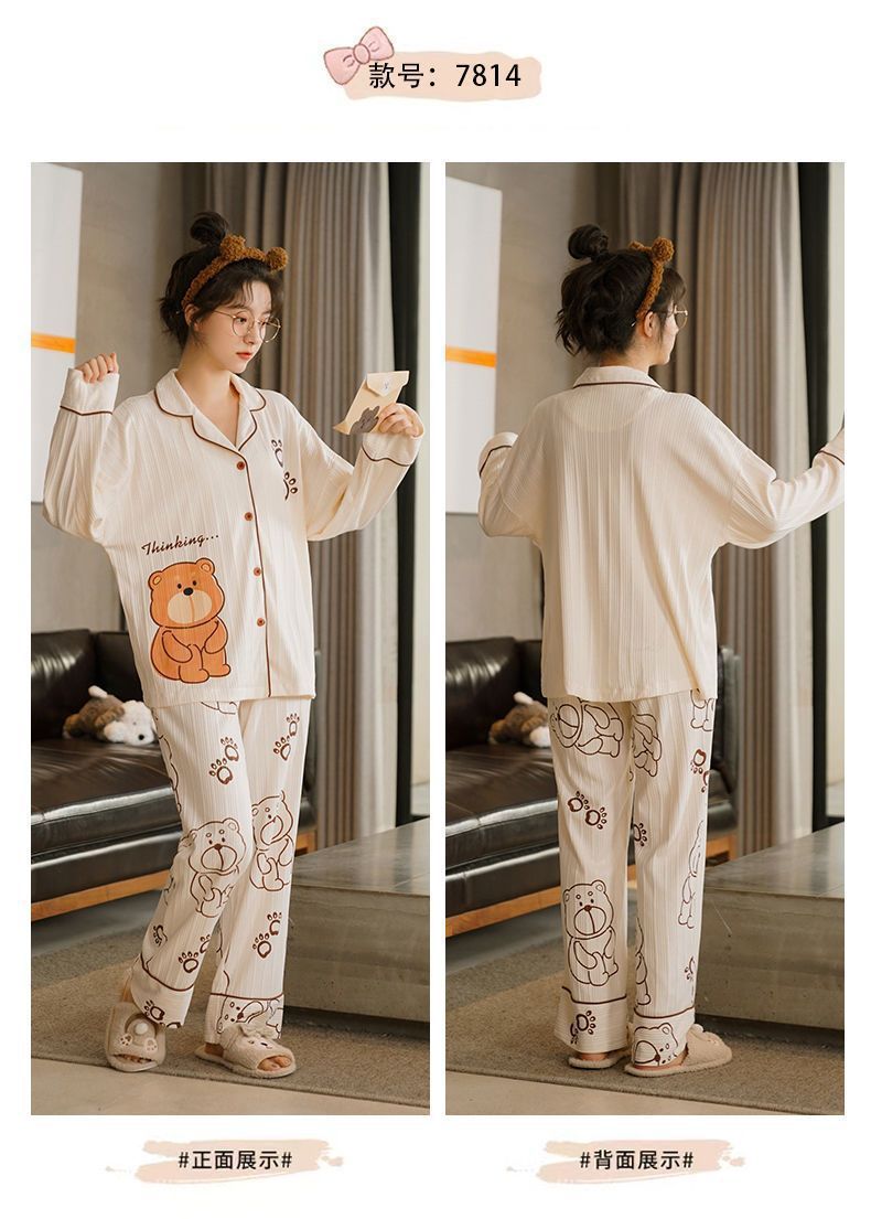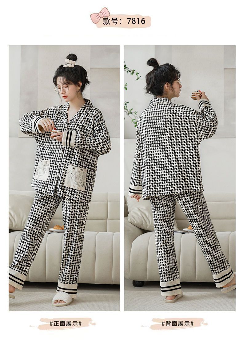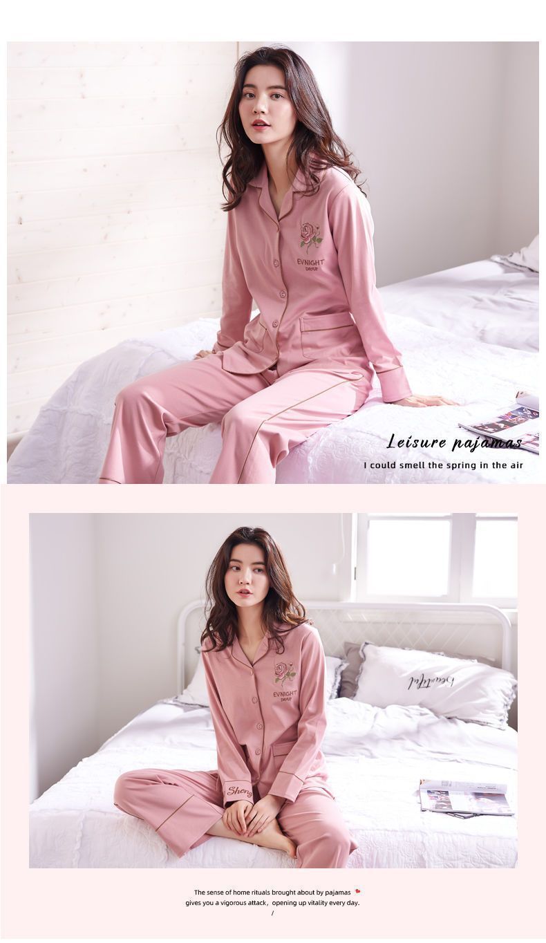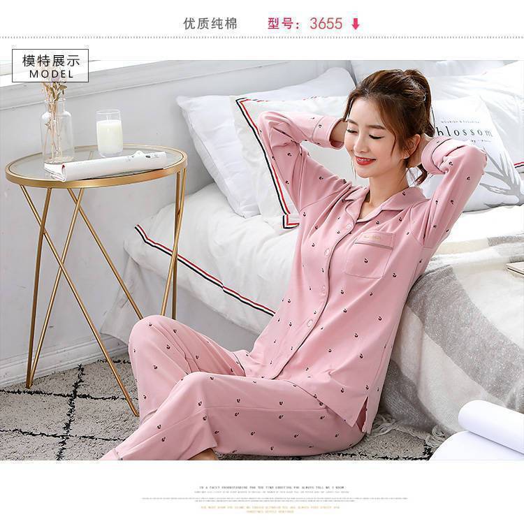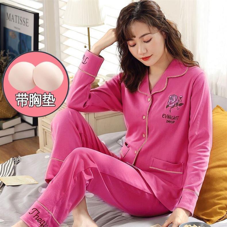 Пижама из 100% хлопка с нагрудной подкладкой, Женский весенне-осенний костюм, брюки с длинным рукавом, весна и осень, тонкая Домашняя одежда больших размеров