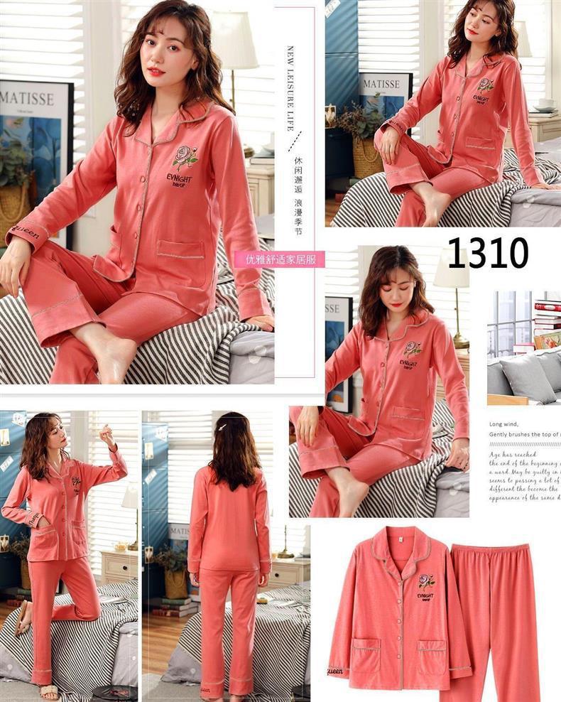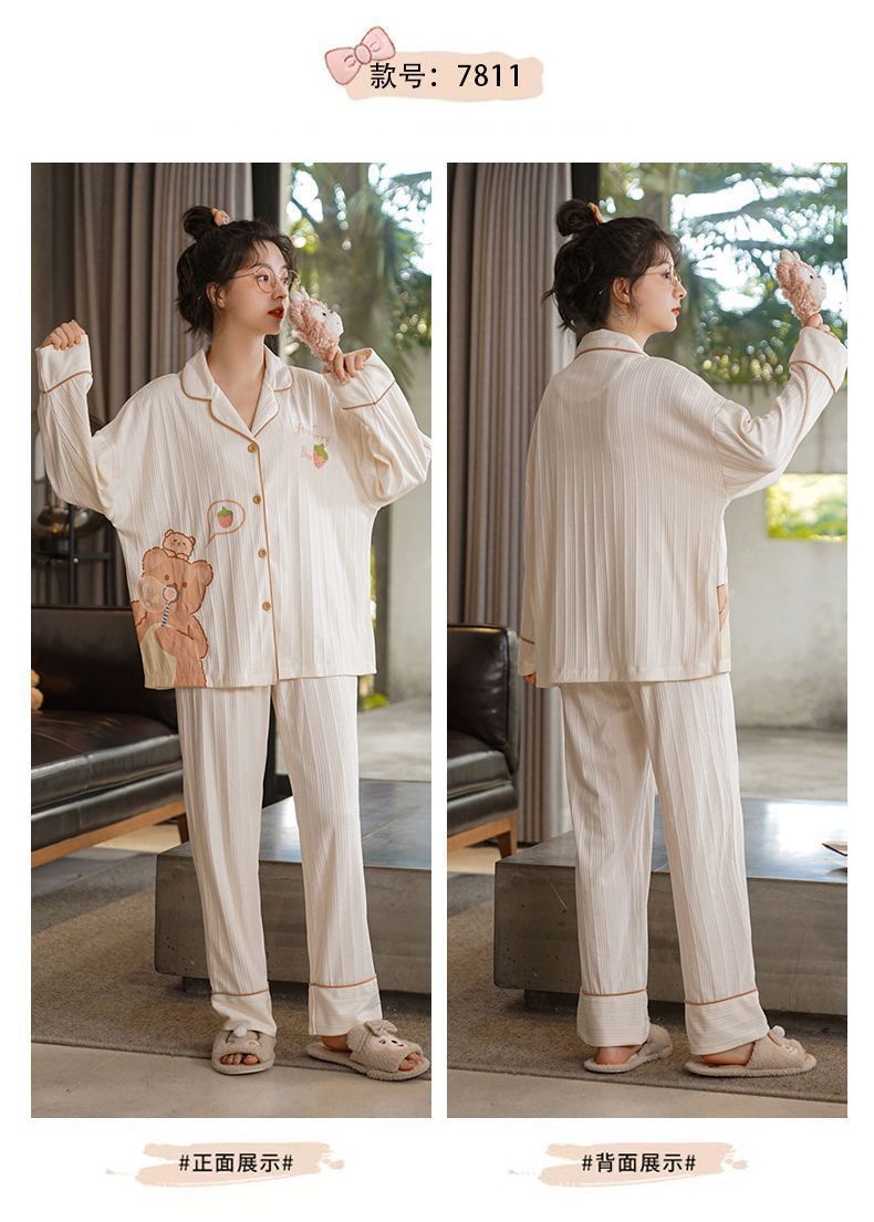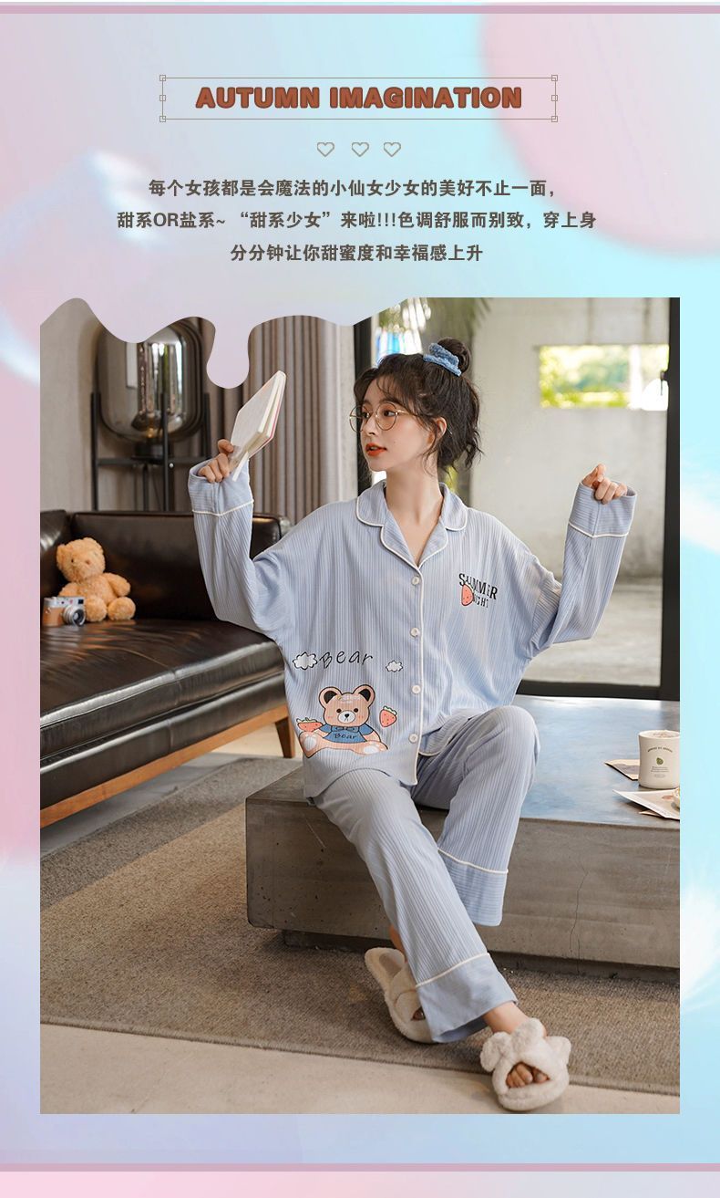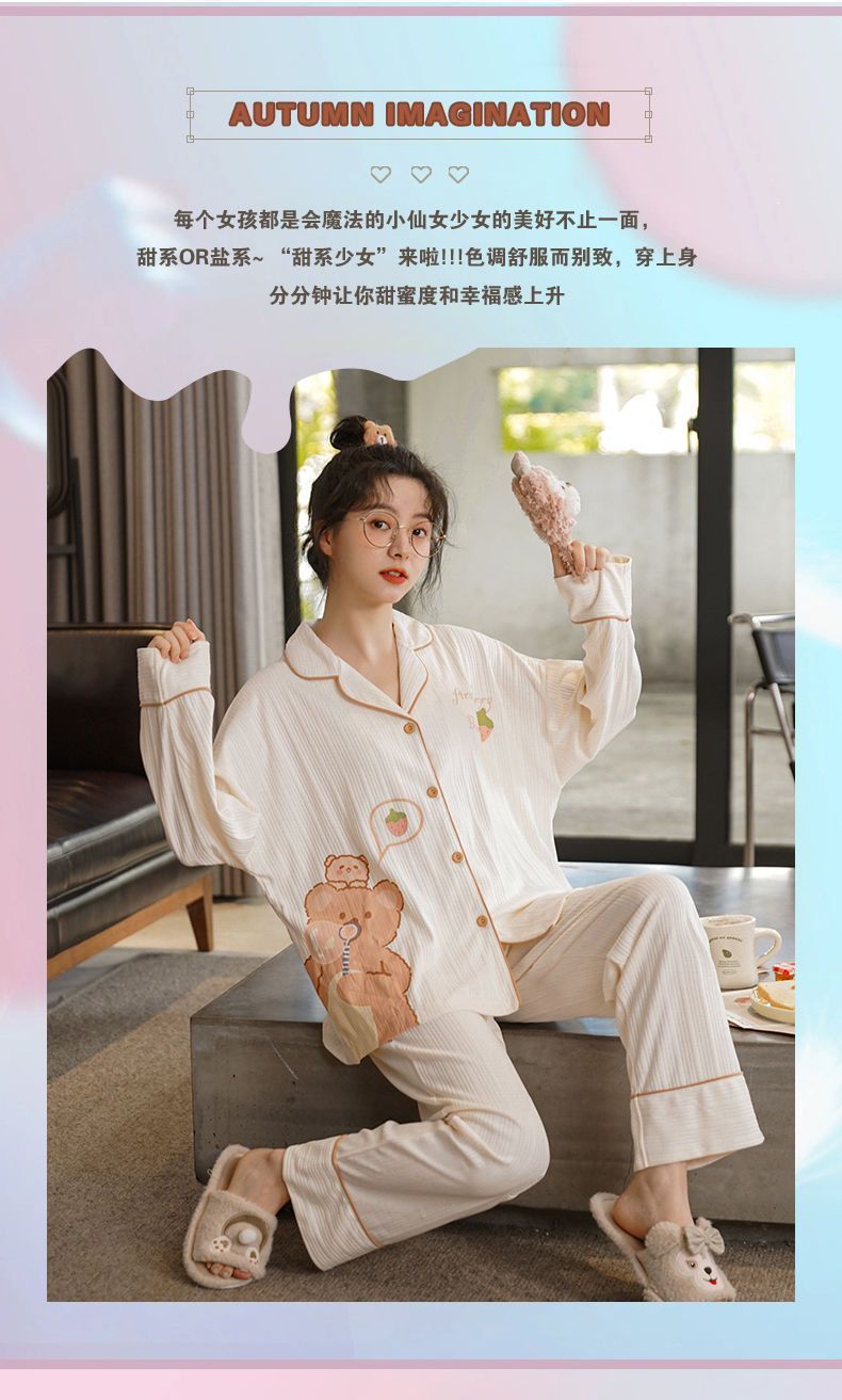 Пижама из 100% хлопка с нагрудной подкладкой, Женский весенне-осенний костюм, брюки с длинным рукавом, весна и осень, тонкая Домашняя одежда больших размеров