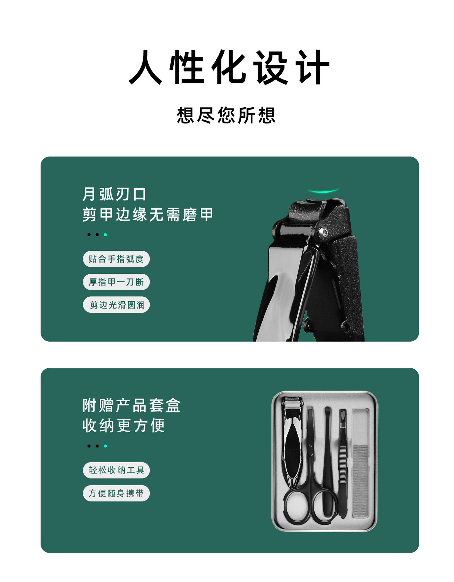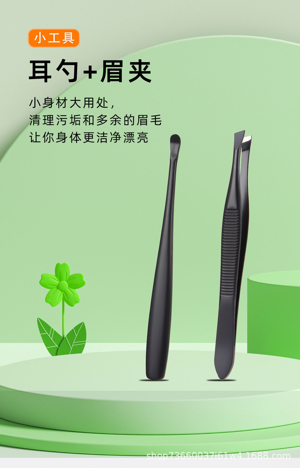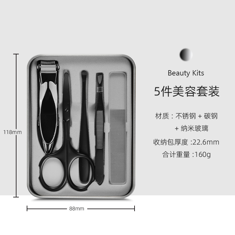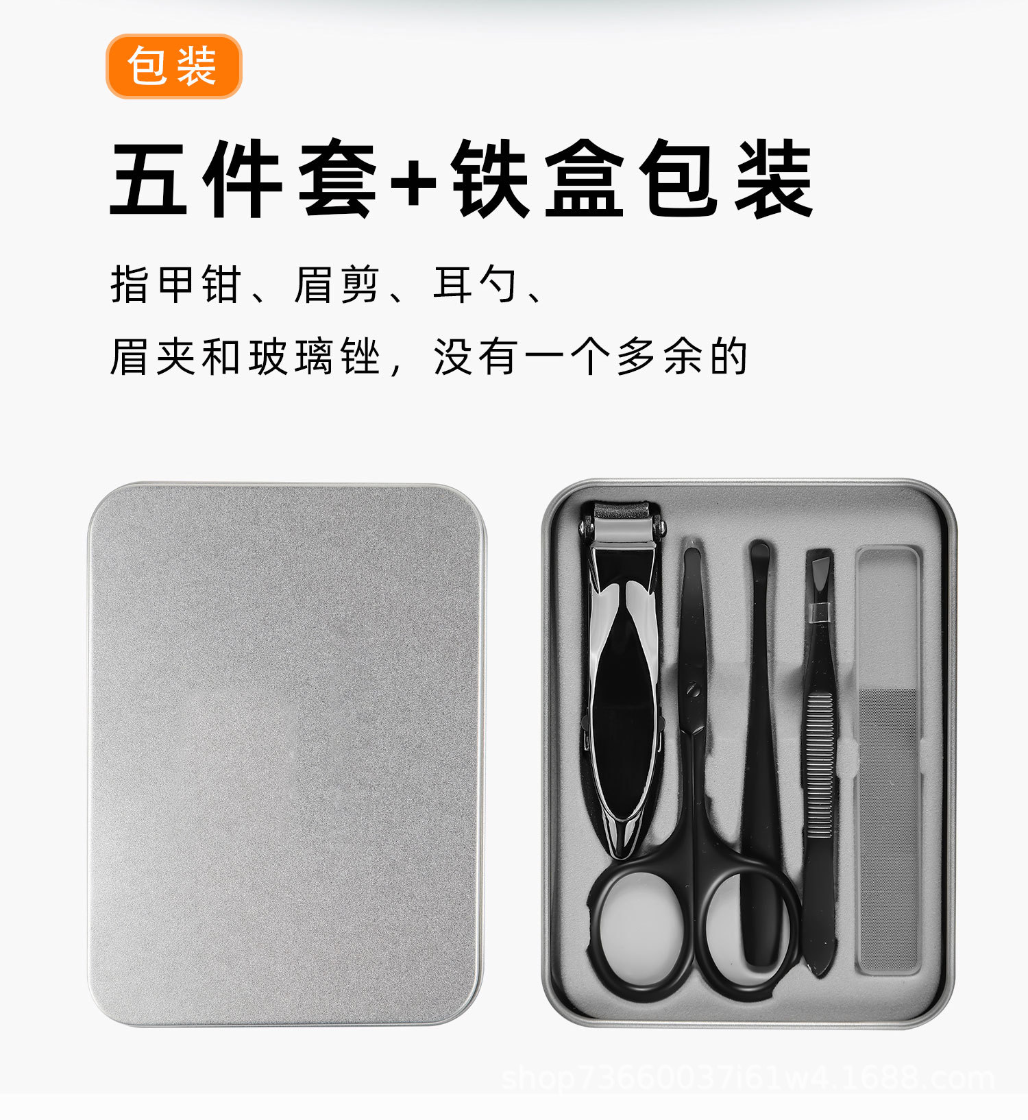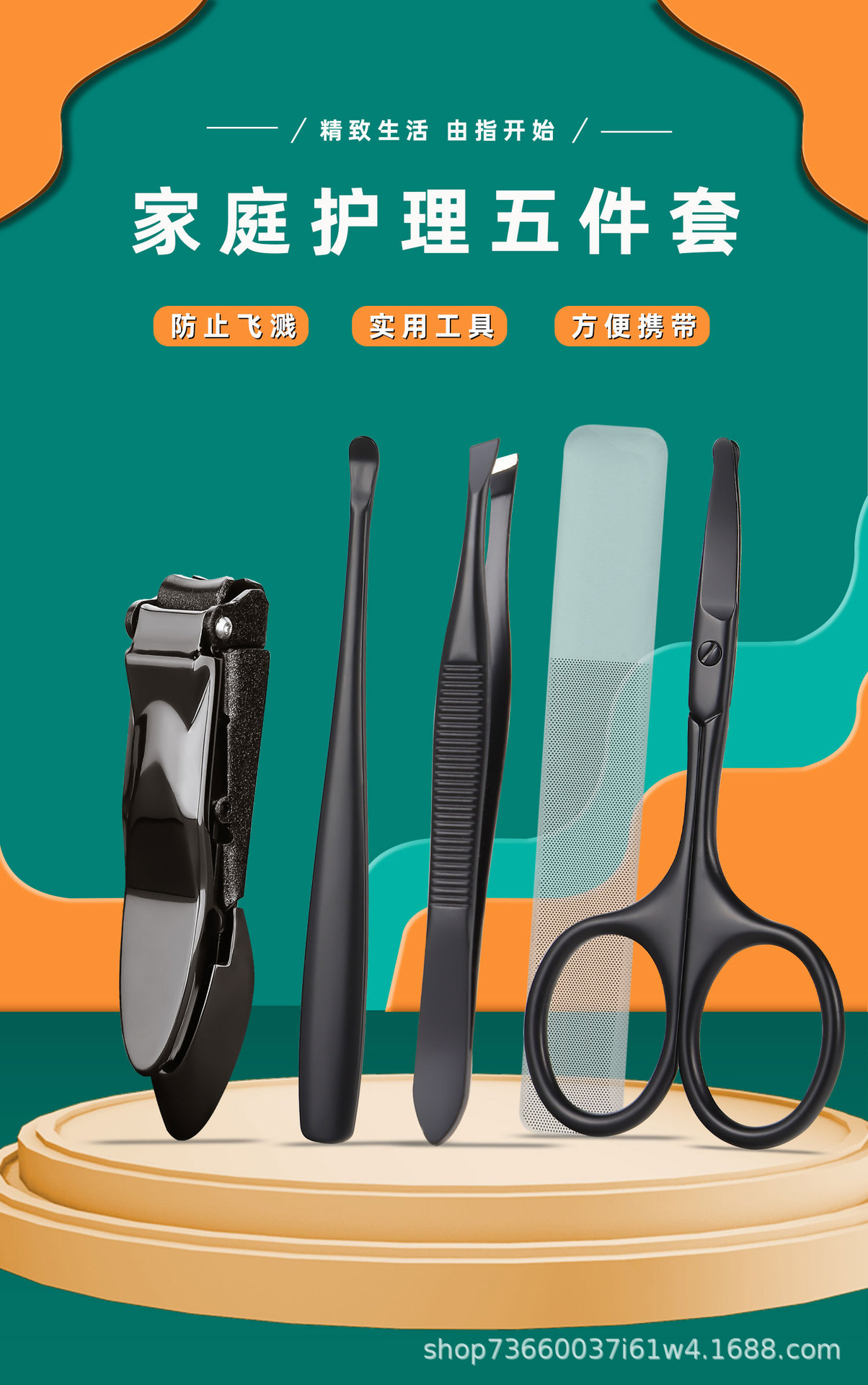 Nail Art Пять частей Anti-Splash Nail Clipper Круглая голова Нос Стрижка для волос Зажим для бровей Ложка для ушей из нержавеющей стали Домашний косметический костюм