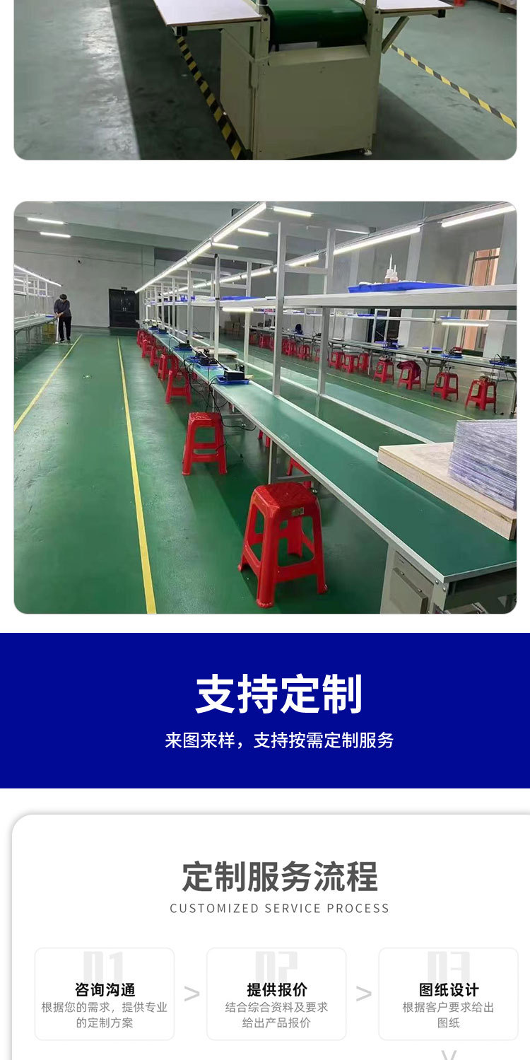 Оптимизированная конвейерная лента Верстак Сборка Антистатическая конвейерная лента Мастерская Ремень Автоматизация Персонализированная производственная линия Алюминиевый профиль Сборка Тяговая линия