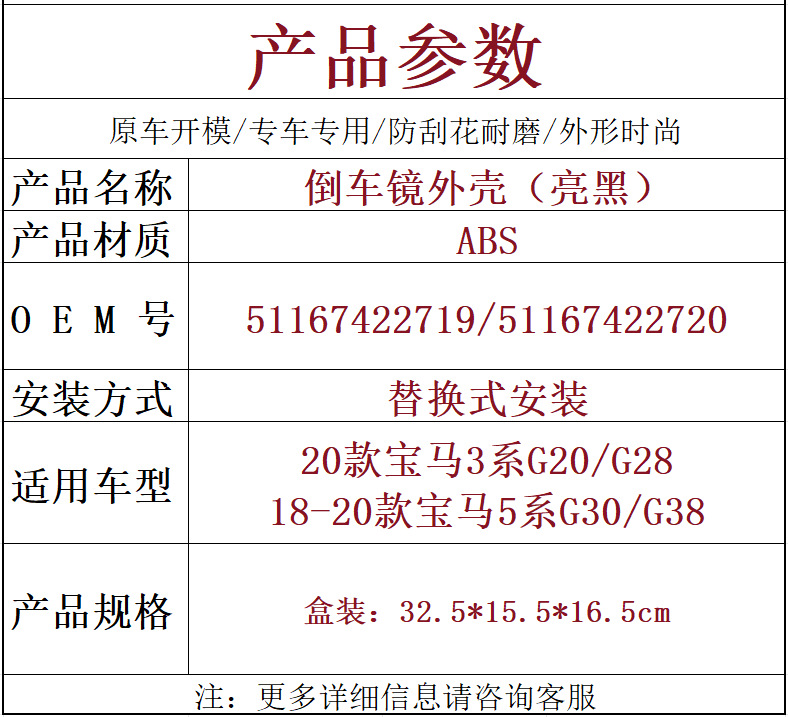Подходит для BMW 3 серии G20G28G30 Модифицированный корпус рожка зеркала заднего вида Корпус зеркала заднего вида 51167422719