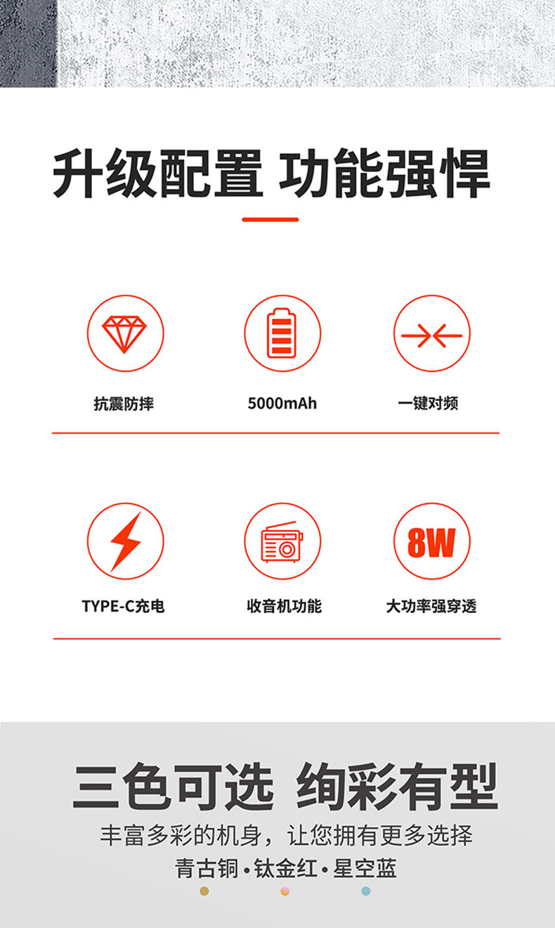 Высокая мощность открытый FM рации портативный корпус Анти-капля радио Функция 8W длинные расстояния Завод волос