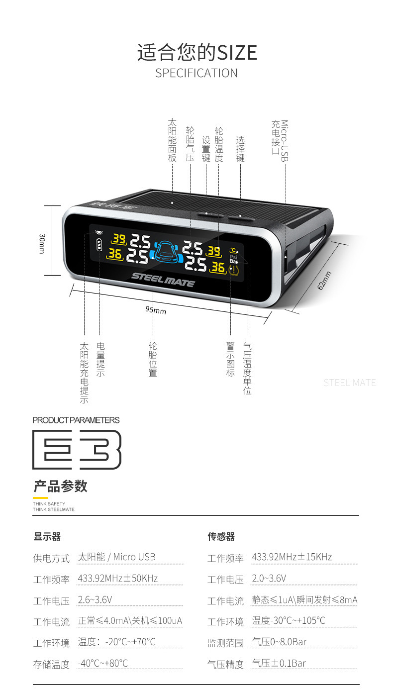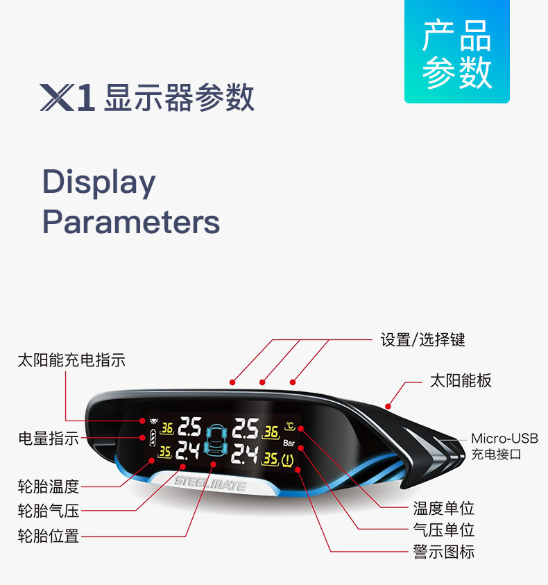 Tiejun контроль давления в шинах внешняя Встроенная беспроводная солнечная система контроля давления в шинах автомобиля E3 цветной экран X1