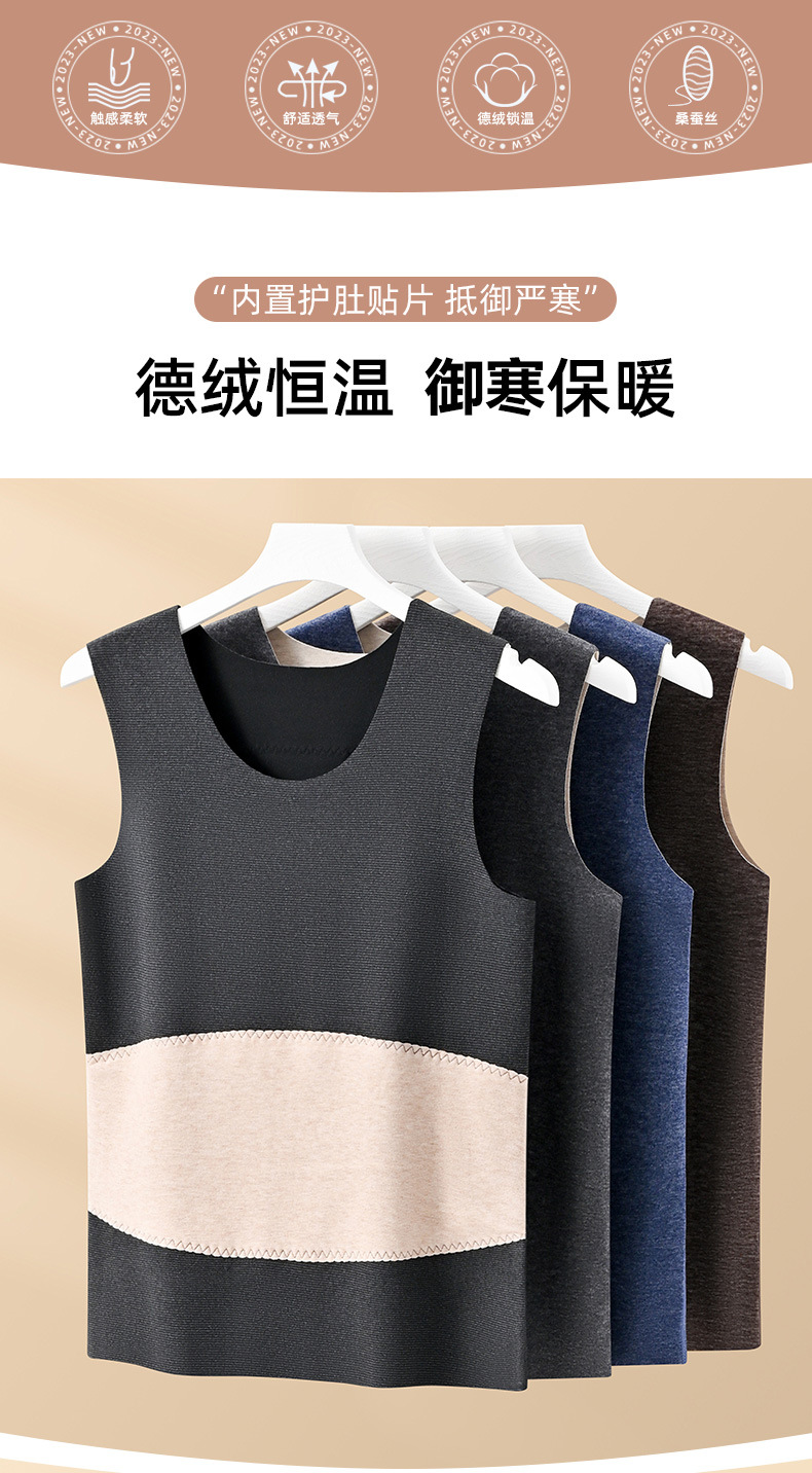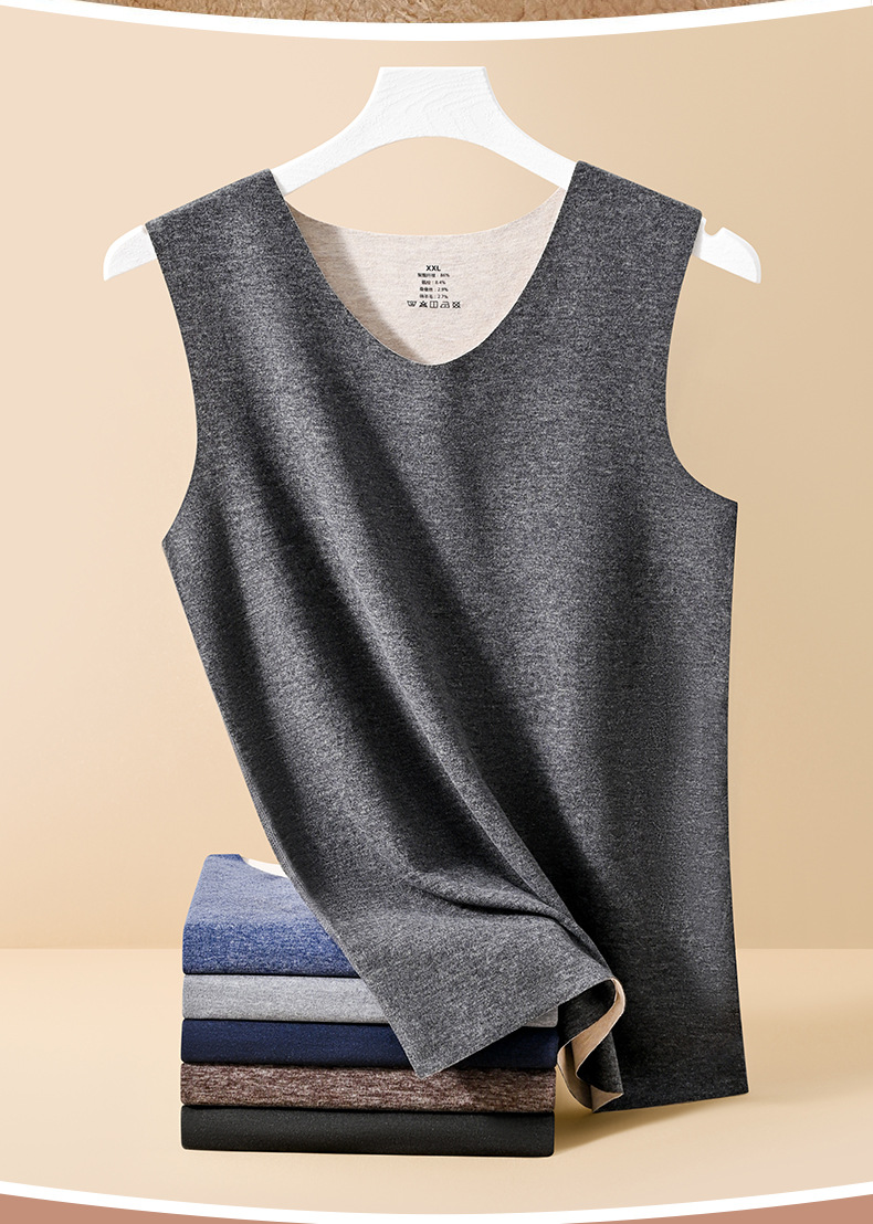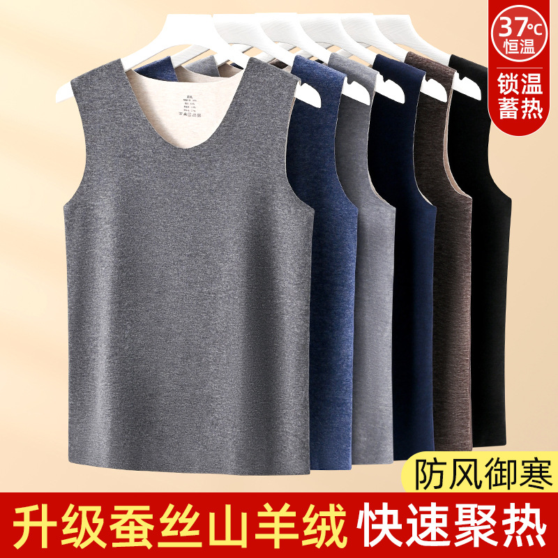 Мужской терможилет с флисовой подкладкой, утолщенным кашемиром и шелковым бархатом, термобелье без рукавов, базовый слой с постоянной температурой для осени и зимы.