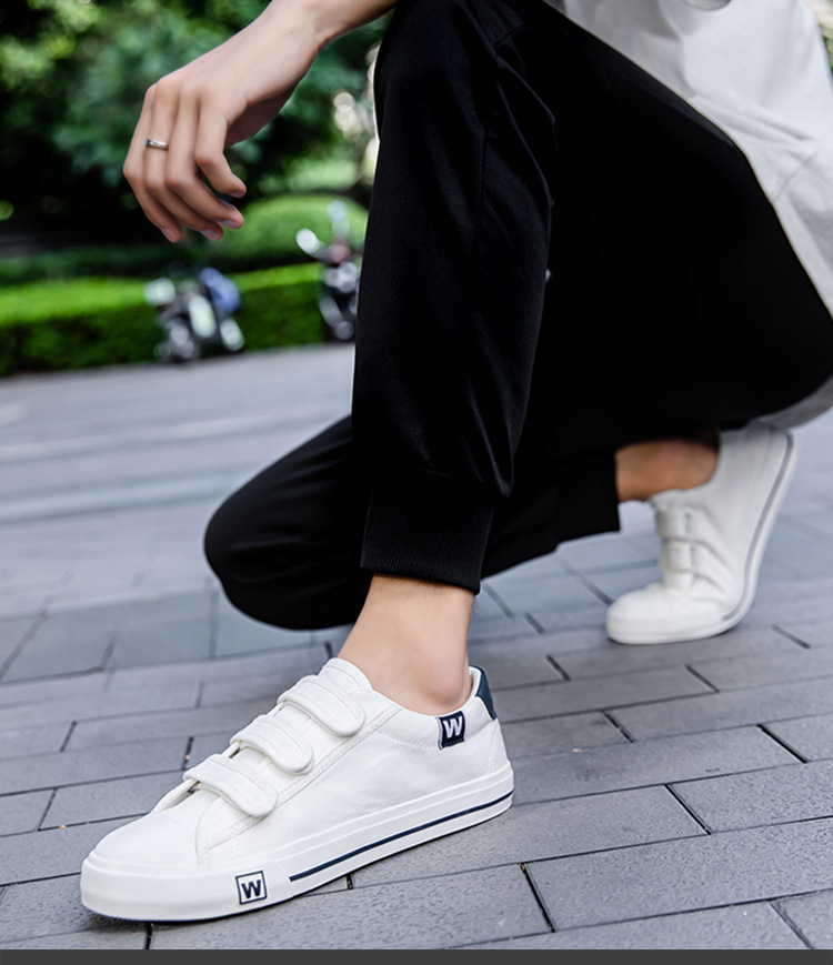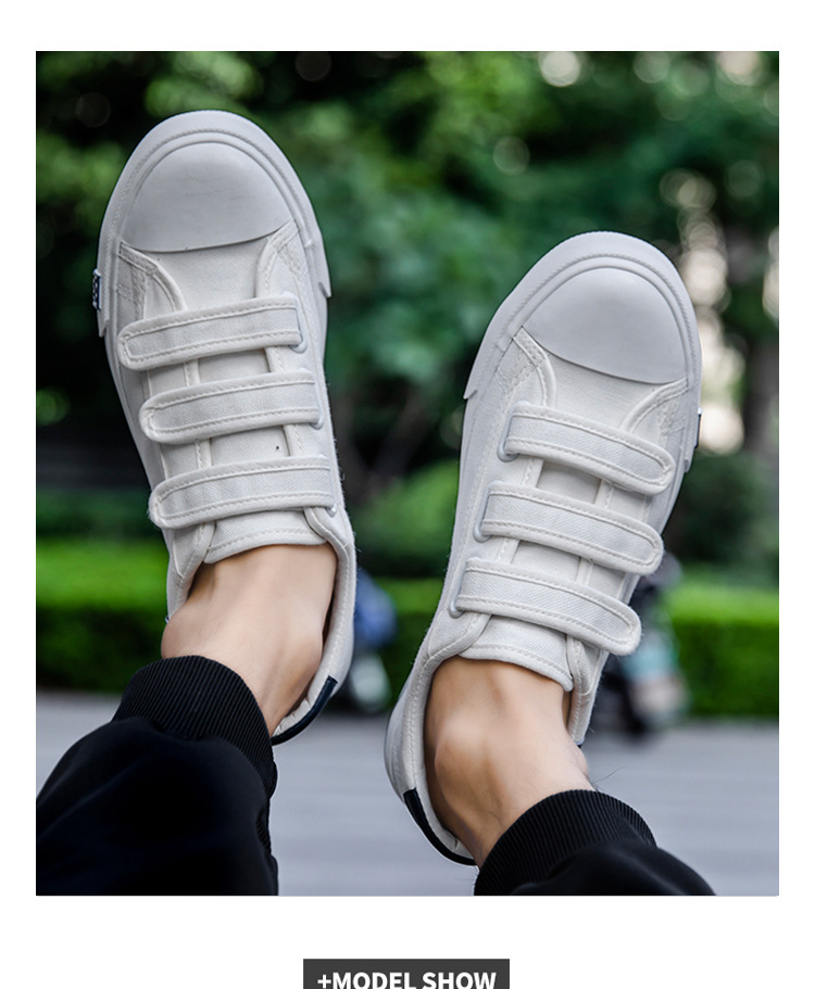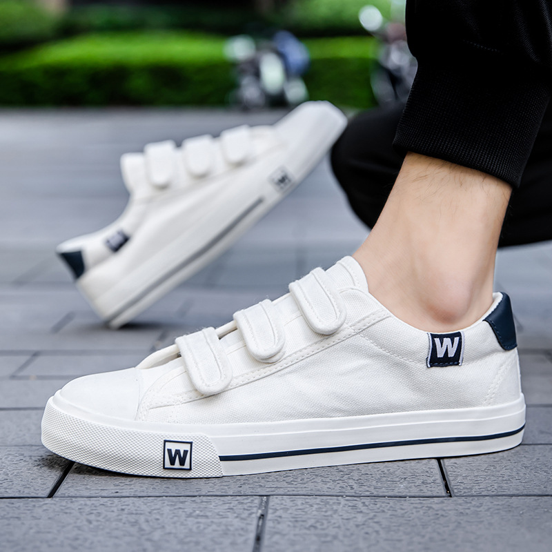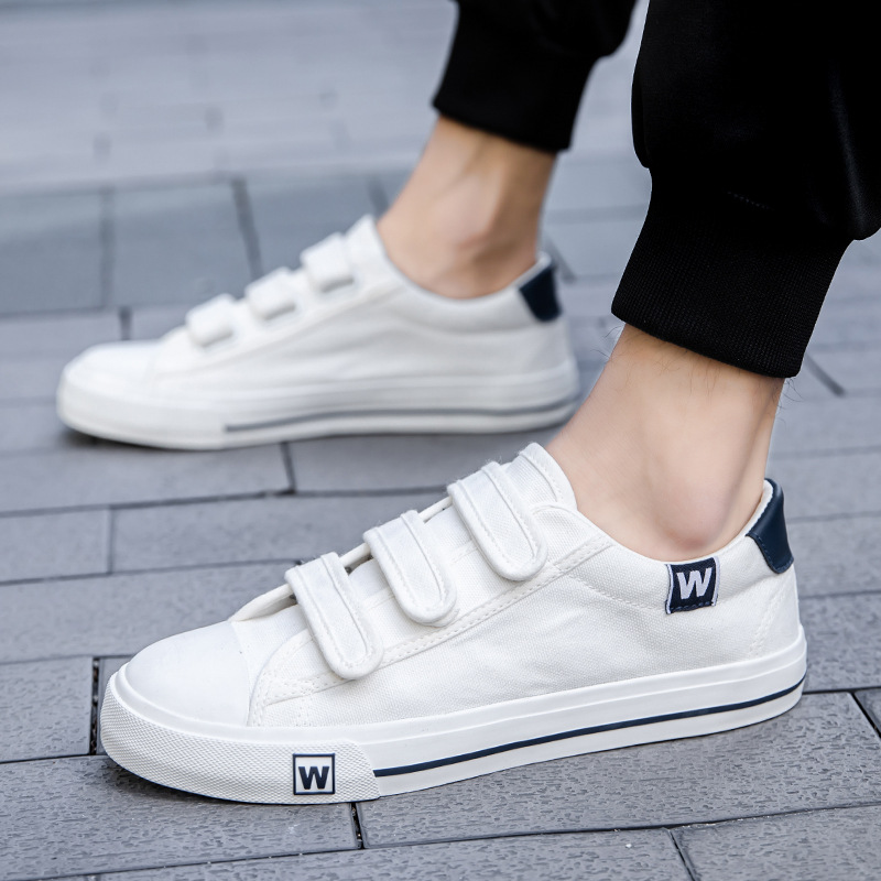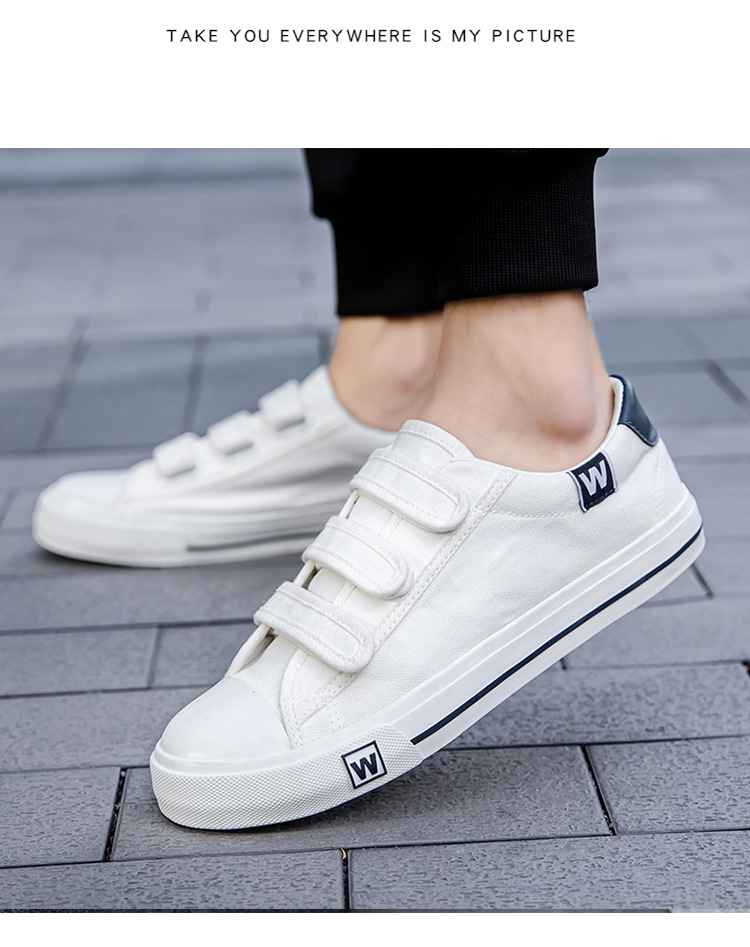 Белые парусиновые туфли, мужские модные Универсальные повседневные кроссовки в Корейском стиле для влюбленных, белые кроссовки, белые туфли на липучке