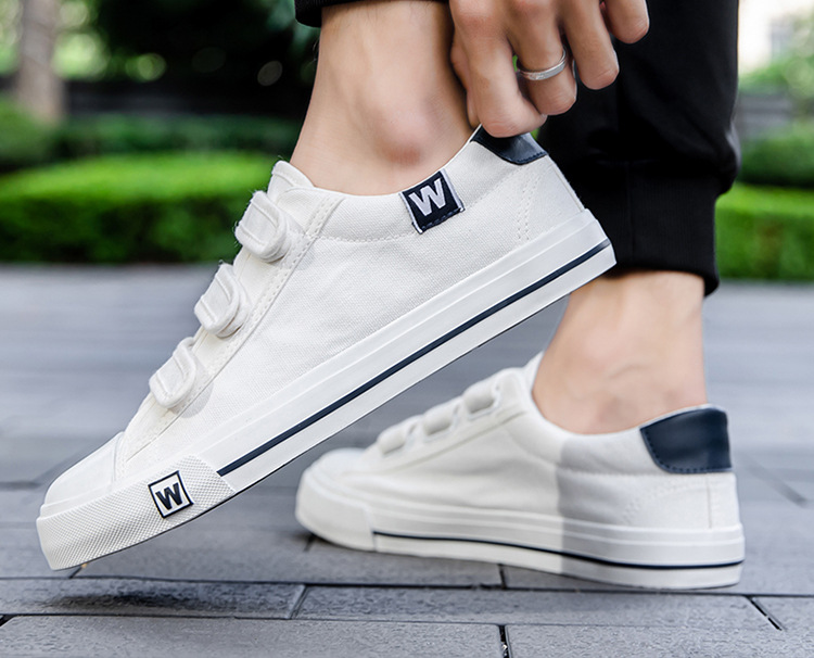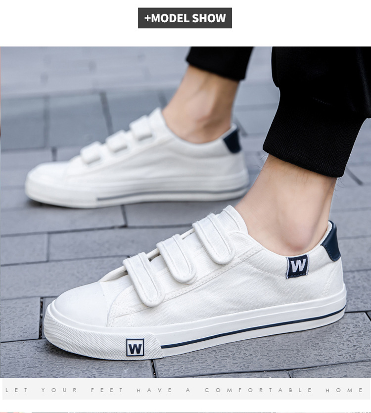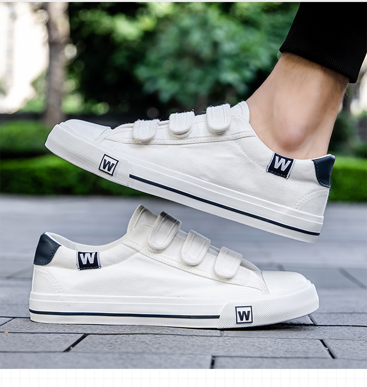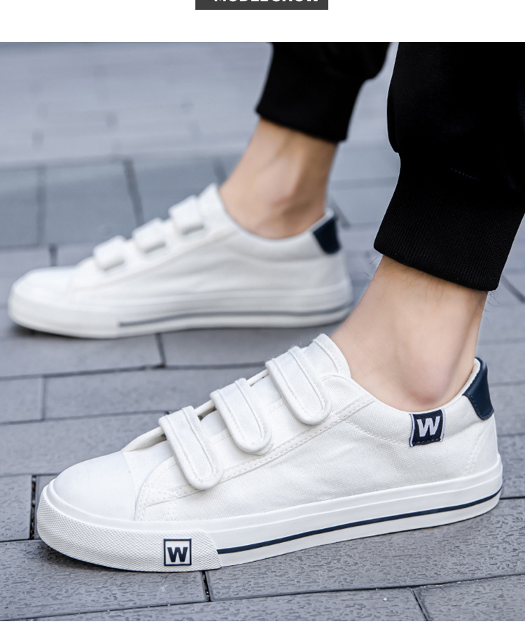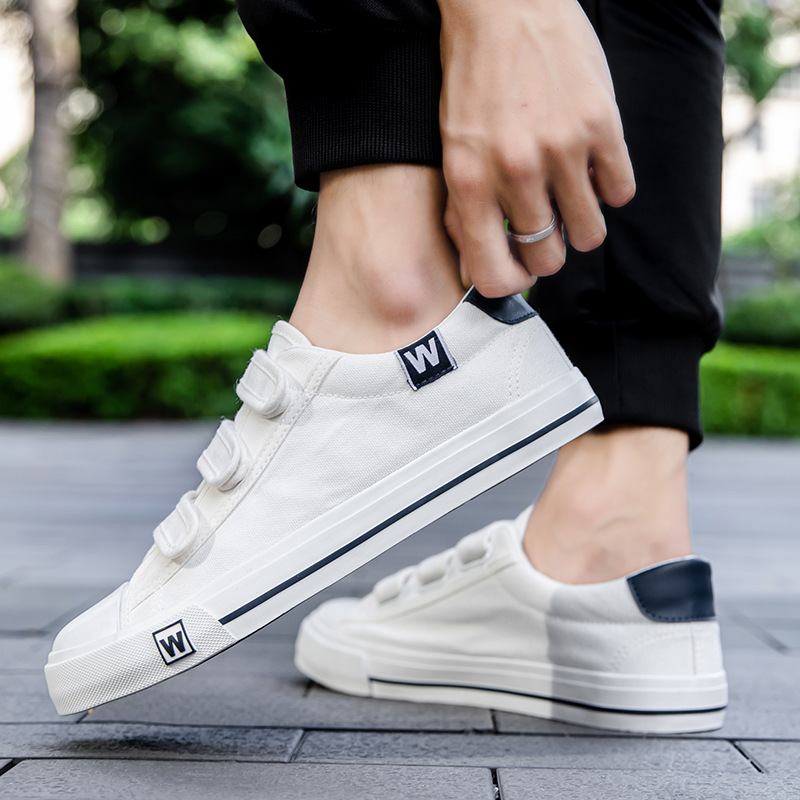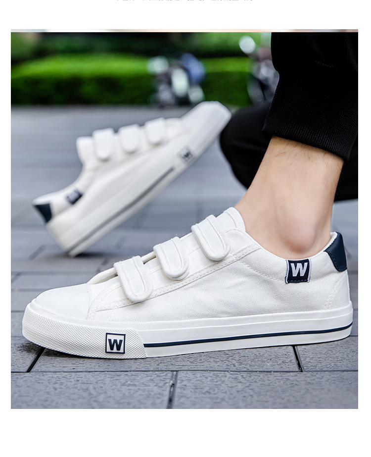 Белые парусиновые туфли, мужские модные Универсальные повседневные кроссовки в Корейском стиле для влюбленных, белые кроссовки, белые туфли на липучке