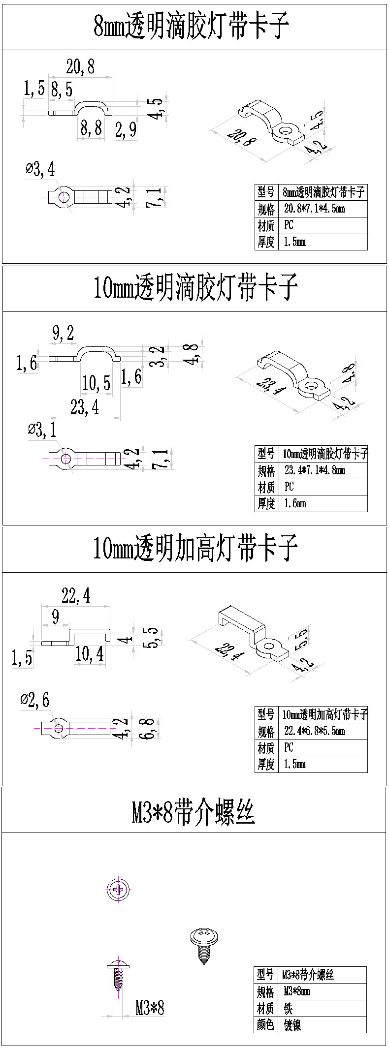 8 мм эпоксидный свет с пряжкой; 10 мм эпоксидный свет с пряжкой; Пряжка ремня повышенной освещенности 10 мм; M3 * 8 с винтами