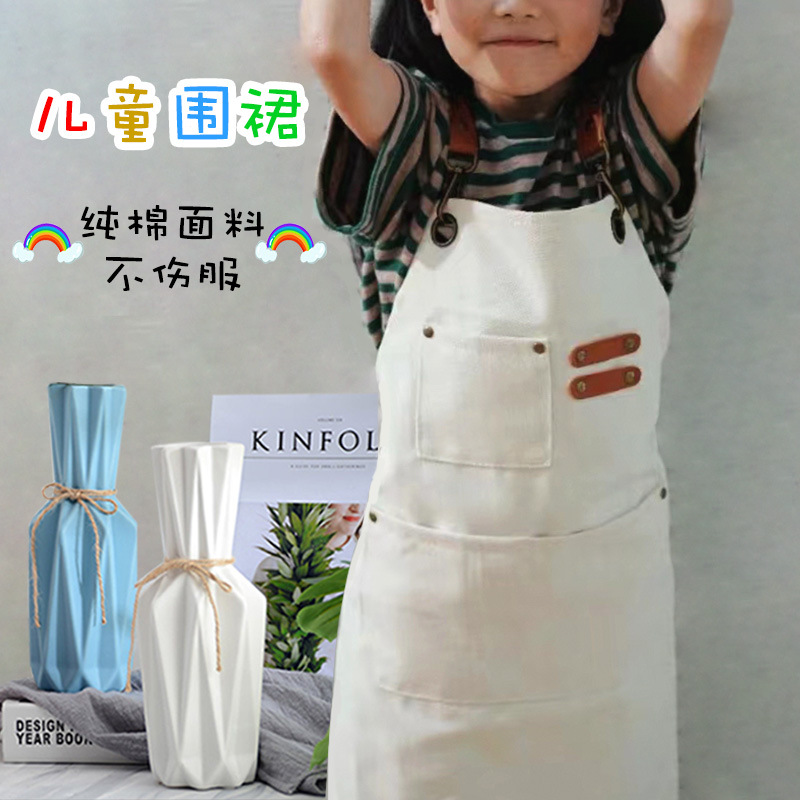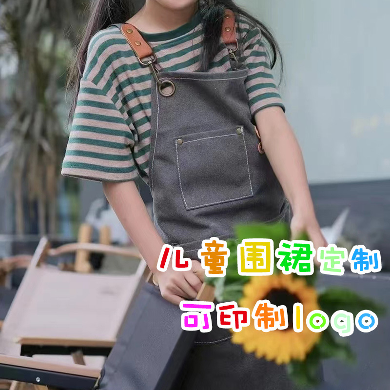 Детский холщовый фартук из чистого хлопка, Детское пальто с рисунком, износостойкая одежда для рисования, логотип с художественным принтом для девочек