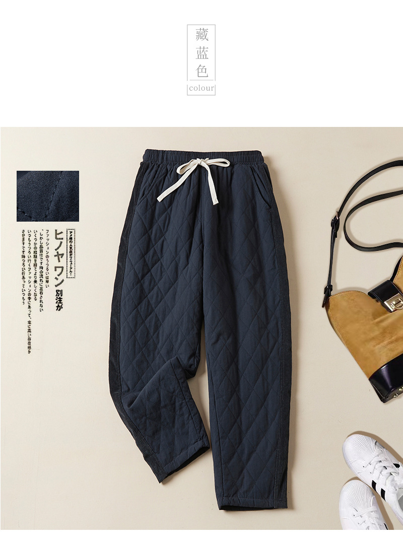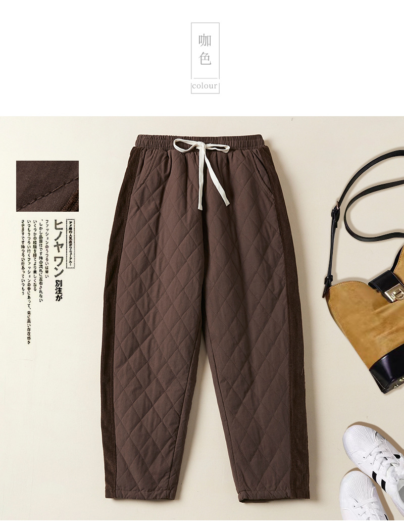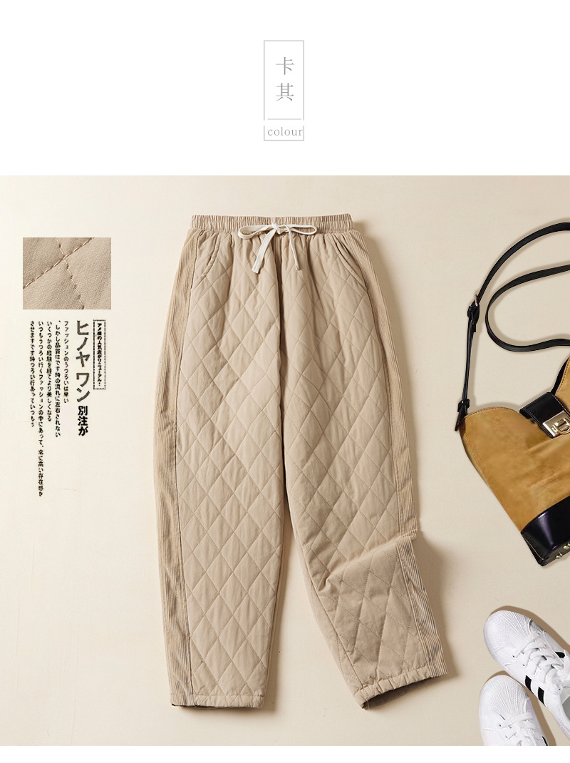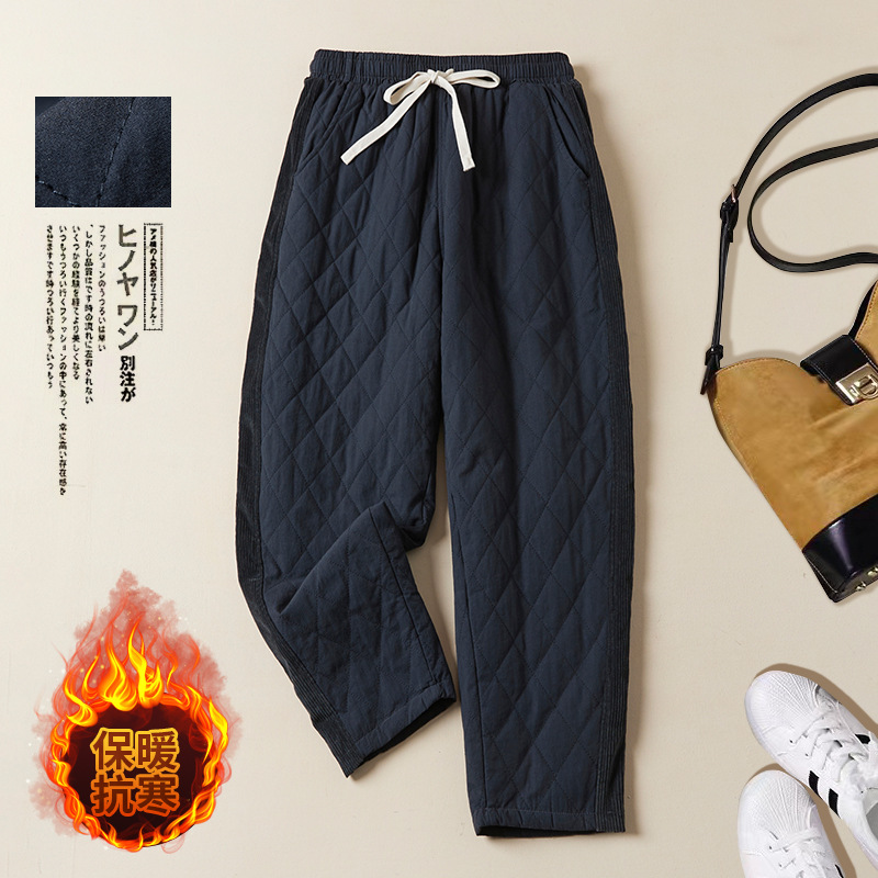 Настоящий выстрел новые винтажные Хлопковые женские брюки в клетку с бриллиантами, женские теплые шаровары с эластичной талией, повседневные хлопковые брюки с подкладкой