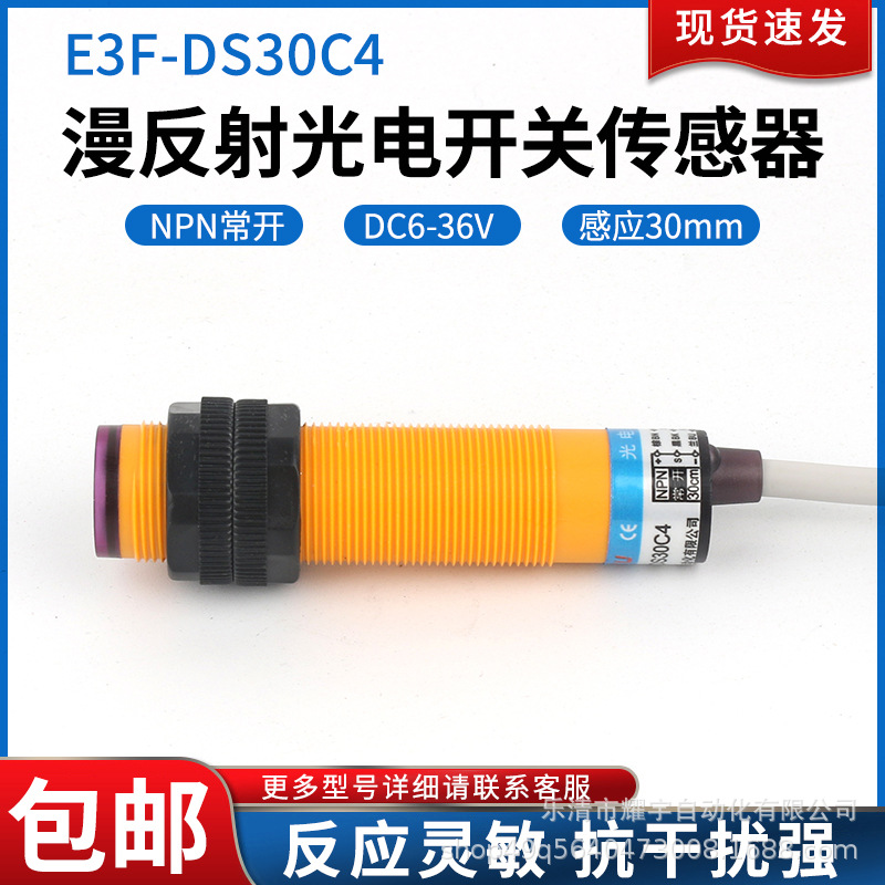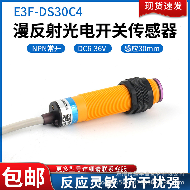 Фотоэлектрический переключатель E3F-DS30C4 трехпроводной DC NPN нормально открытый датчик индукции диффузного отражения 30 см 12V24V