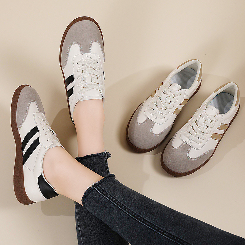 Корейские белые кроссовки для женщин, весна 2025, новые немецкие тренировочные кроссовки, ретро-кроссовки на плоской подошве, универсальные спортивные повседневные кроссовки в наличии