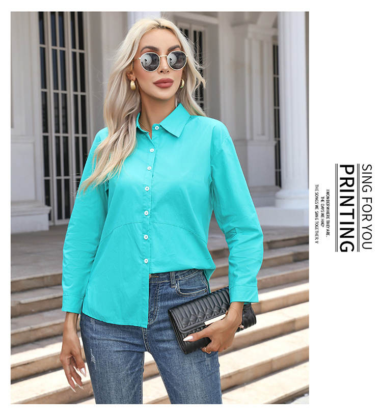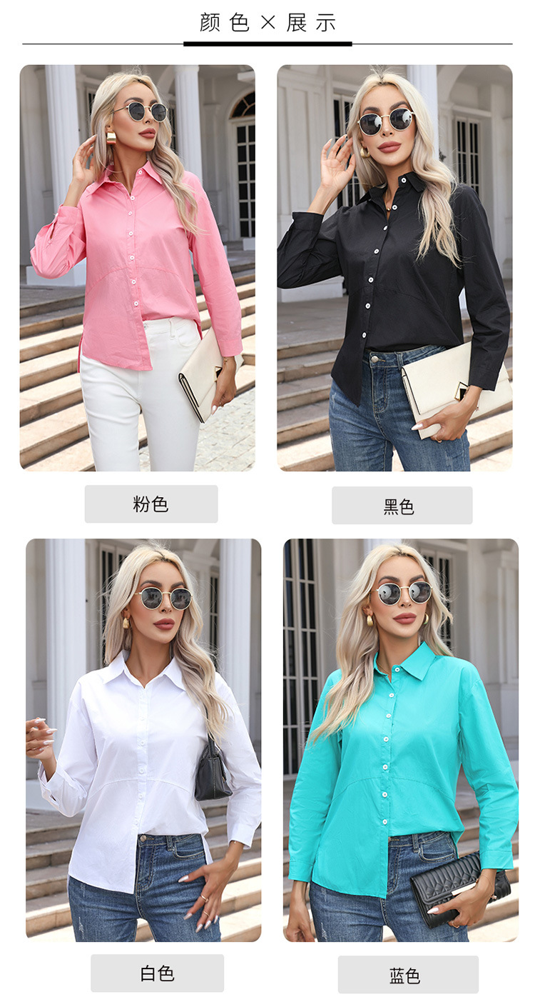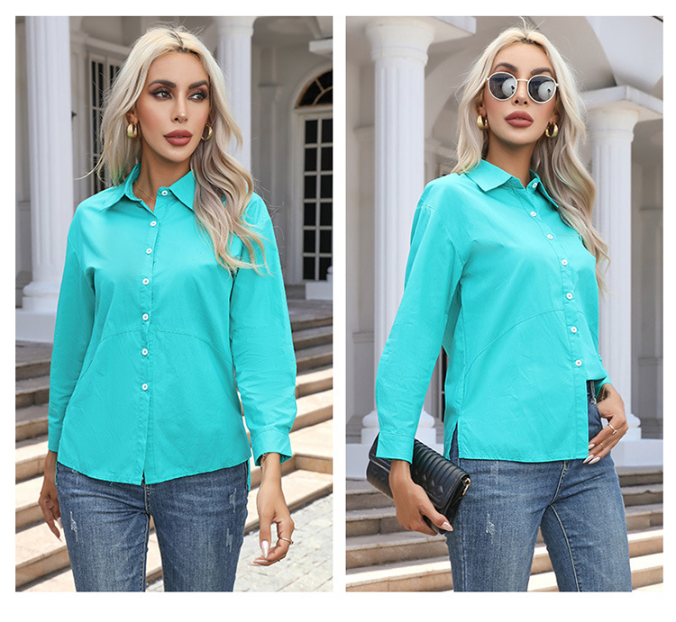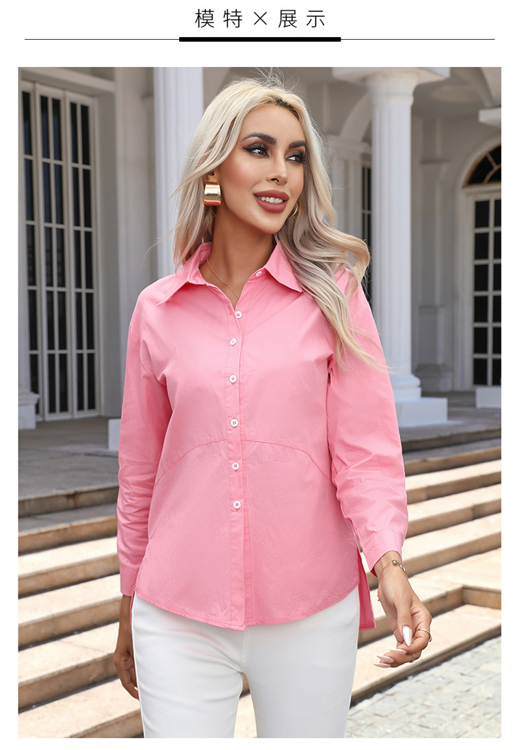 Обработка индивидуальной женской одежды для европейской и американской внешней торговли 2023 Весна и осень Новая Женская хлопковая рубашка с длинным рукавом Amazon