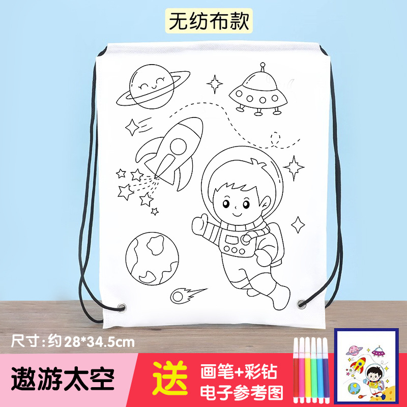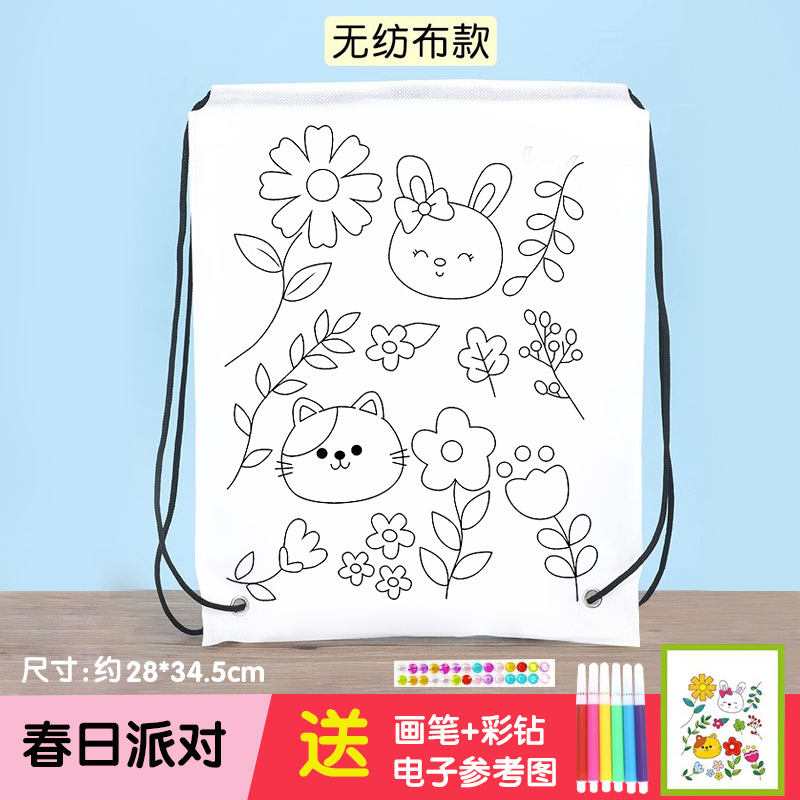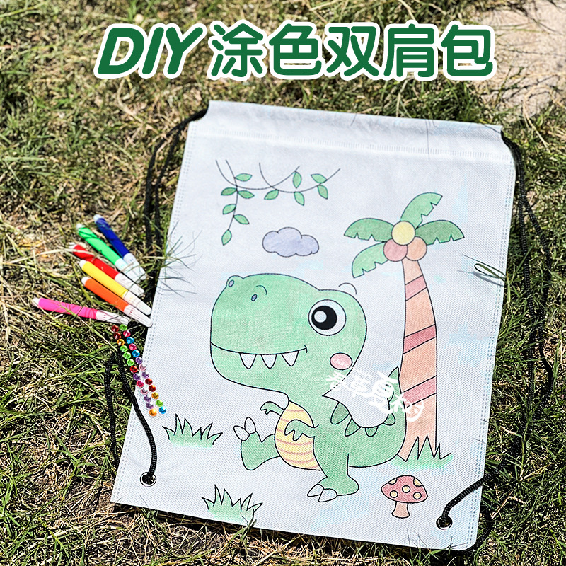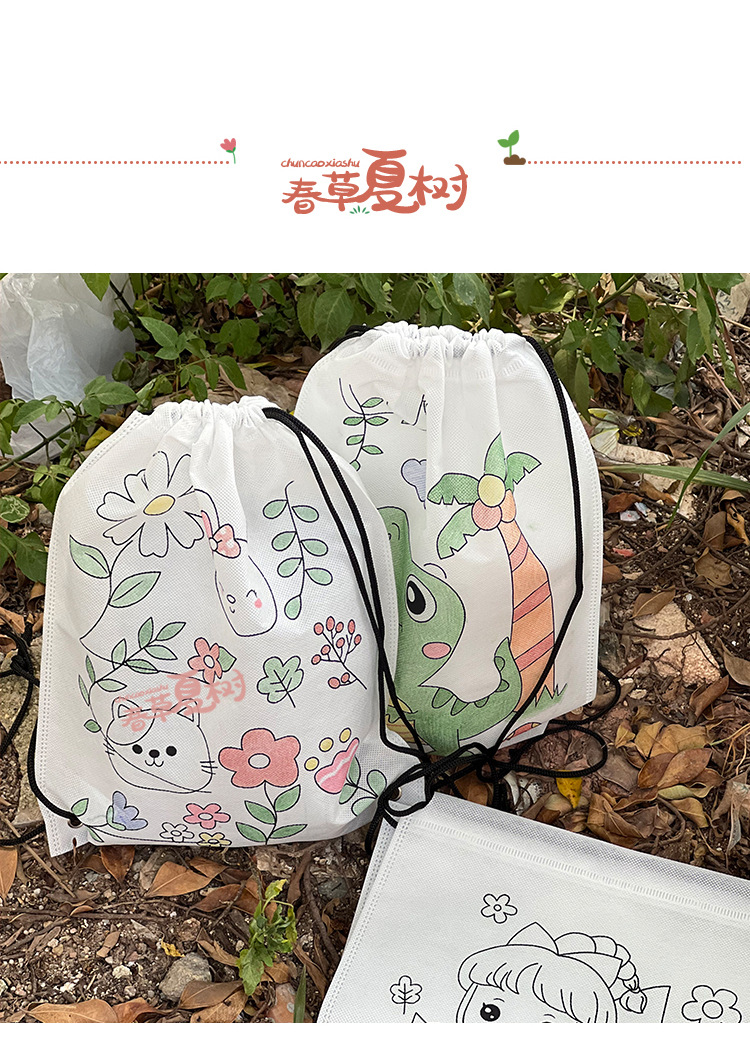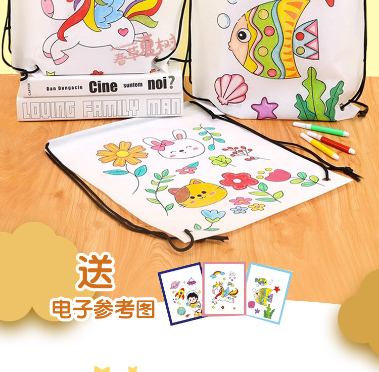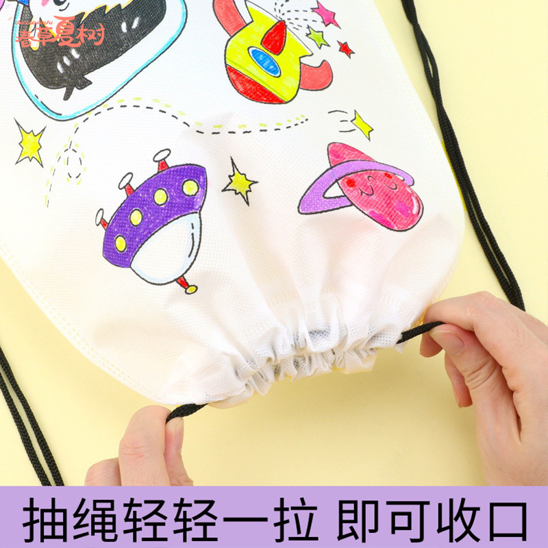 Рюкзак из нетканого материала с граффити Детский рюкзак ручной работы из эко-сумки Цветной художественный Рисунок Карман в комплекте