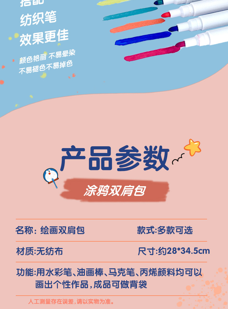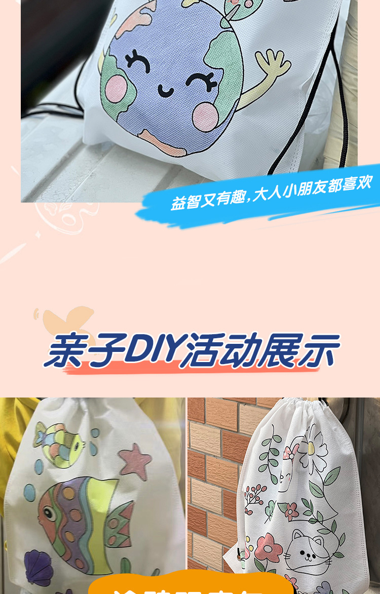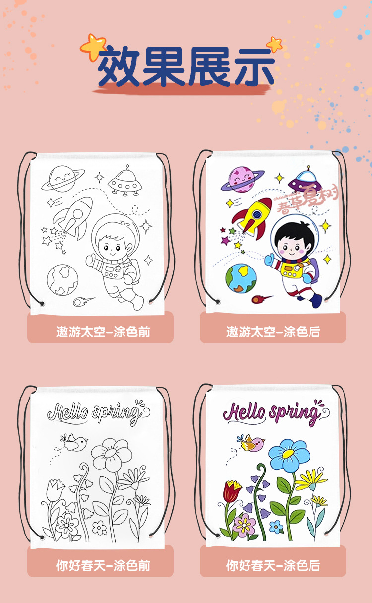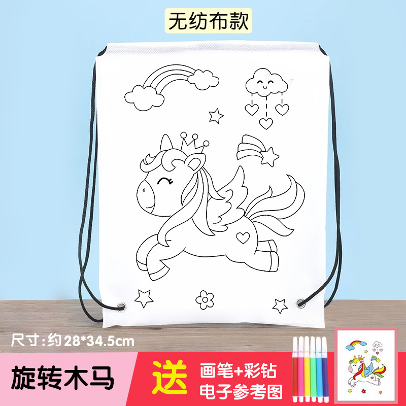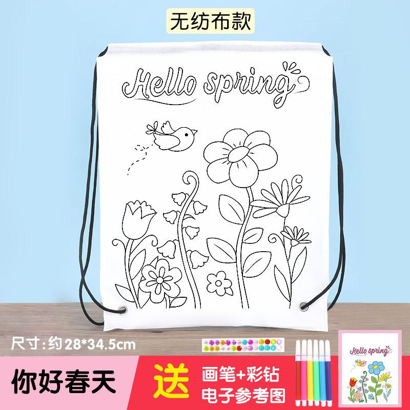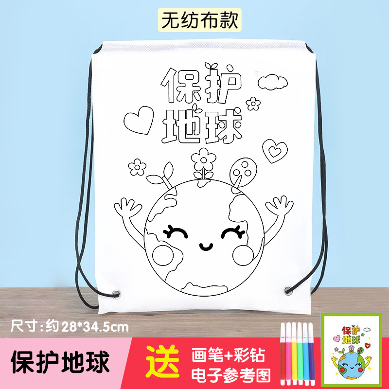Рюкзак из нетканого материала с граффити Детский рюкзак ручной работы из эко-сумки Цветной художественный Рисунок Карман в комплекте