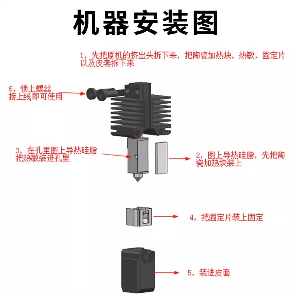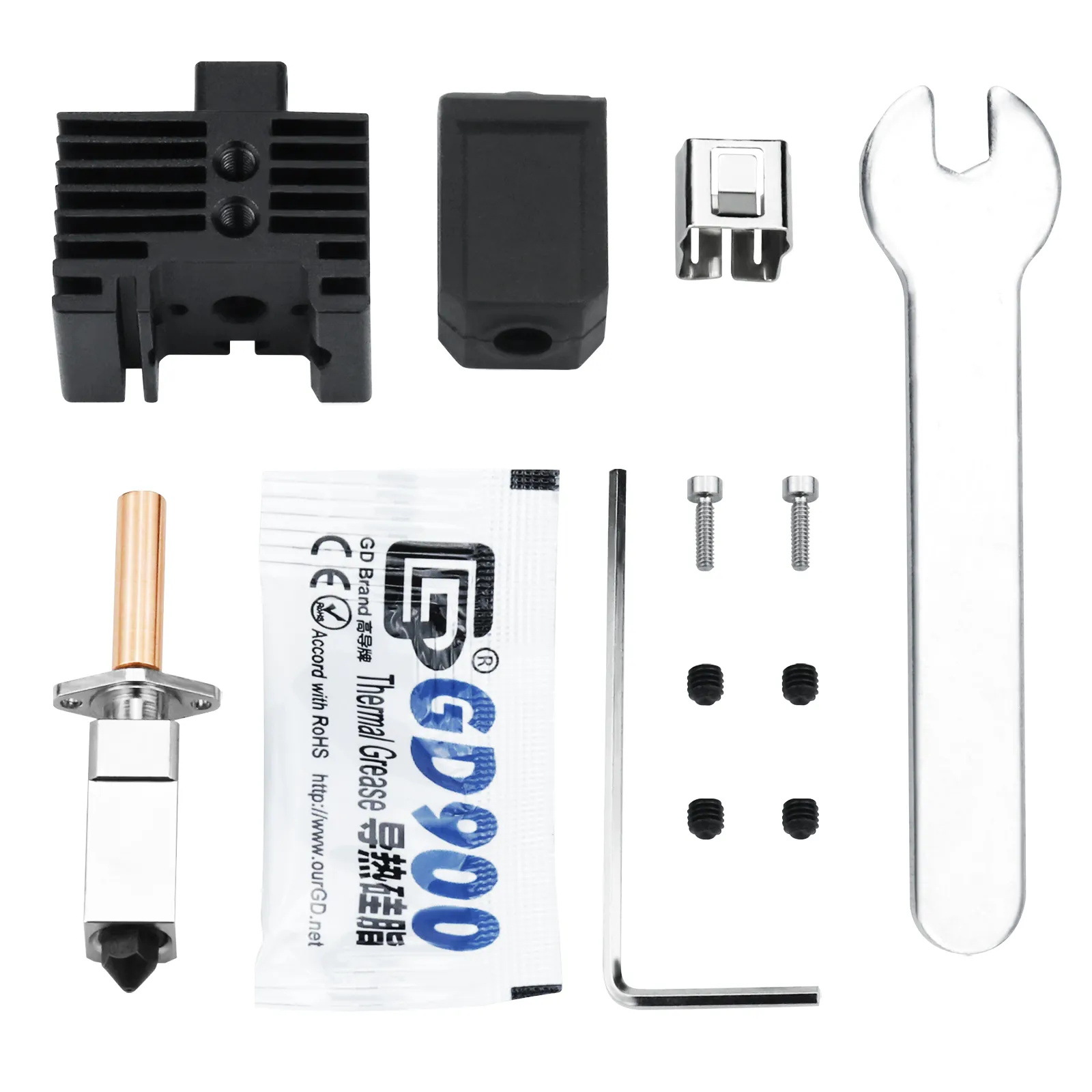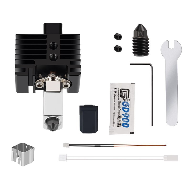 Стандартный пакет; Комплект 1 (горячий конец + термоблок серии X1 + нагревательная пластина); Комплект 2 (горячий конец + компоненты термического нагрева серии P1); Силиконовый чехол для экструзионной головки; Термистор (клемма GH1.25, длина провода: 100 мм); Керамический нагревательный элемент (клемма XH-2,54, длина провода: 120 мм, 24 В, 48 Вт); Термистор P1P/P1S + керамический нагревательный элемент; зажим для хотэнда; Сопло из закаленной стали 1,75/0,4 мм.; Сопло из закаленной стали 1,75/0,6 мм.