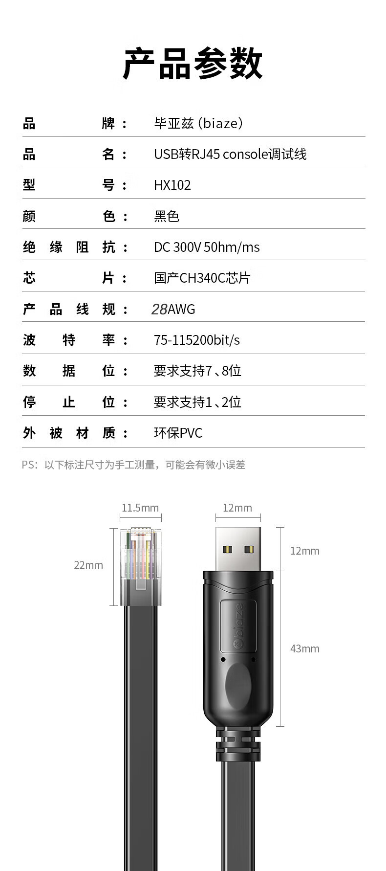 Кабель для отладки консоли Biaz Сетевой порт USB к сетевому порту RJ45, применимый кабель для преобразования маршрутизатора для передачи данных