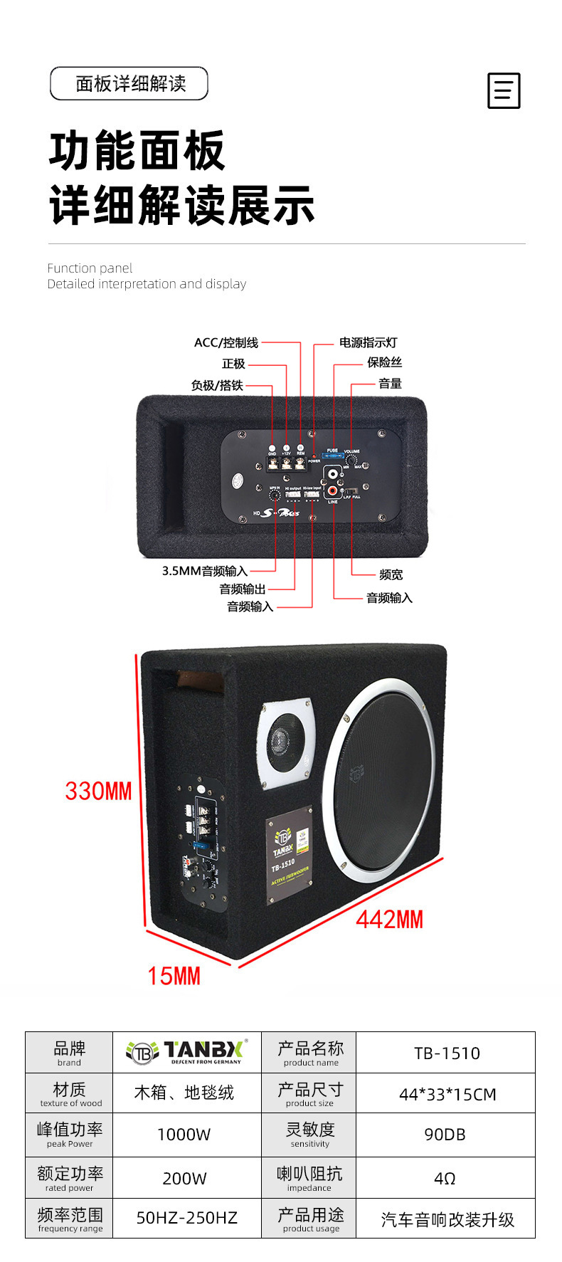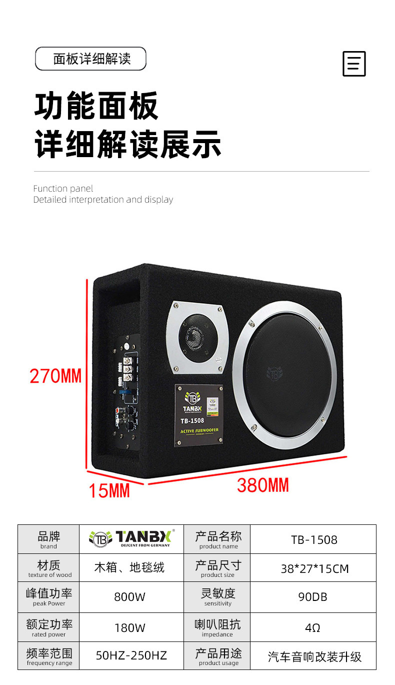 Автомобильный сабвуфер, ультратонкий сабвуфер, модифицированный мощный динамик 6/8/10 дюймов, автомобильная аудиосистема TB-1510