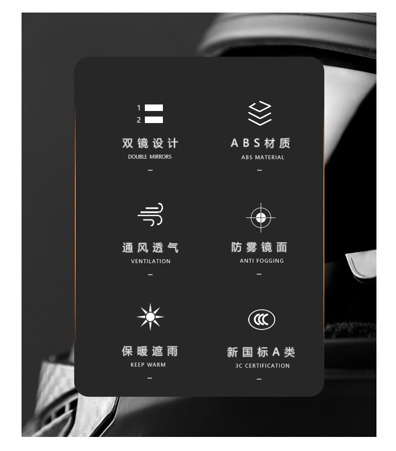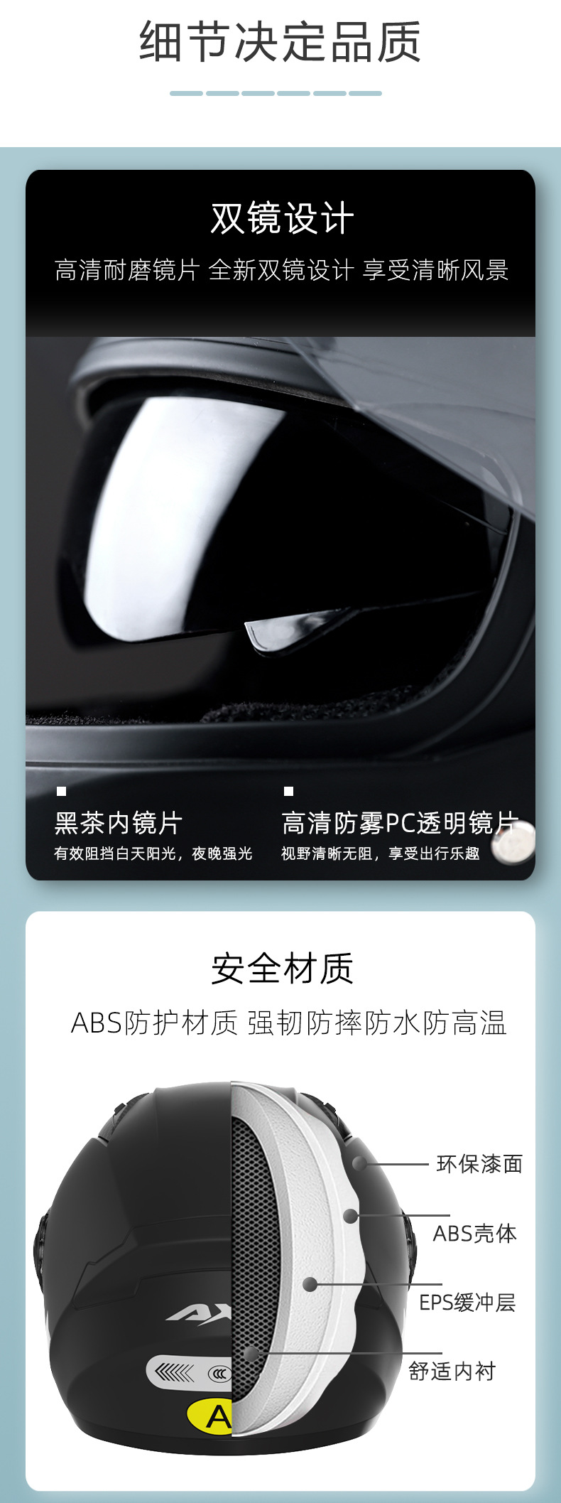 3.镜片:单镜片,双镜片,外镜PC透明,内镜防晒。