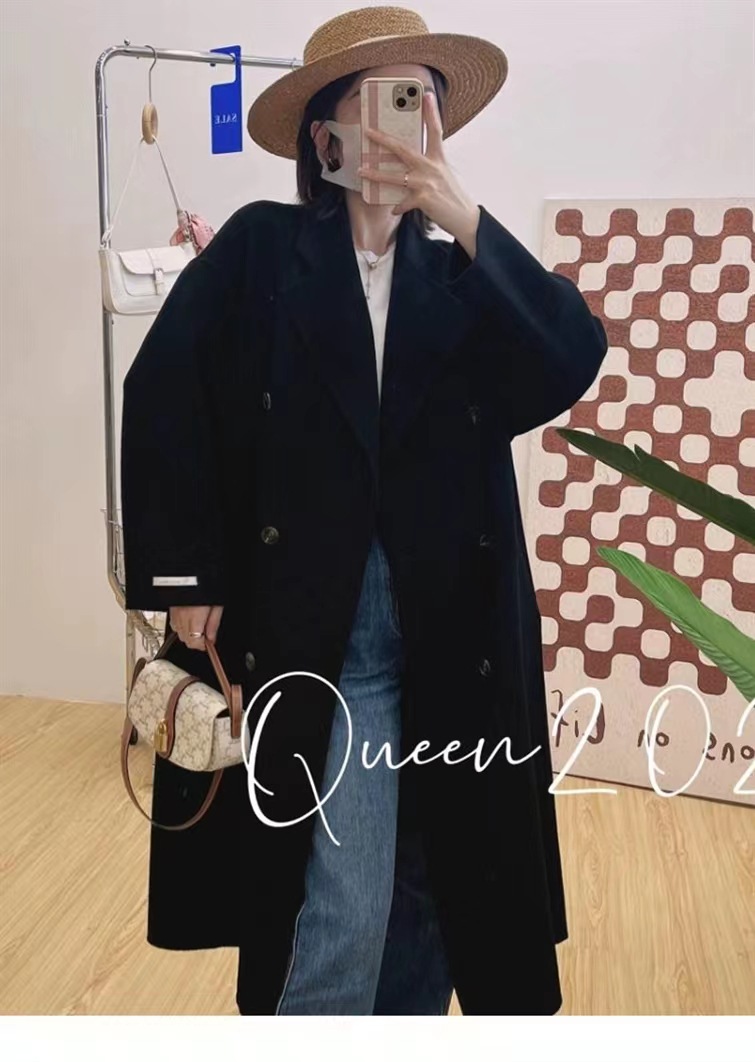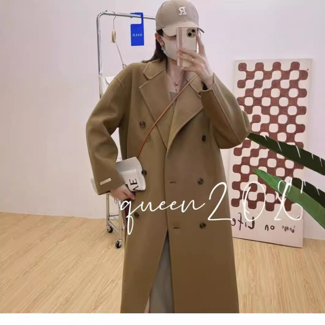 2023 осенне-зимнее Новое двустороннее шерстяное пальто, Длинное свободное повседневное пальто в Корейском стиле в наличии