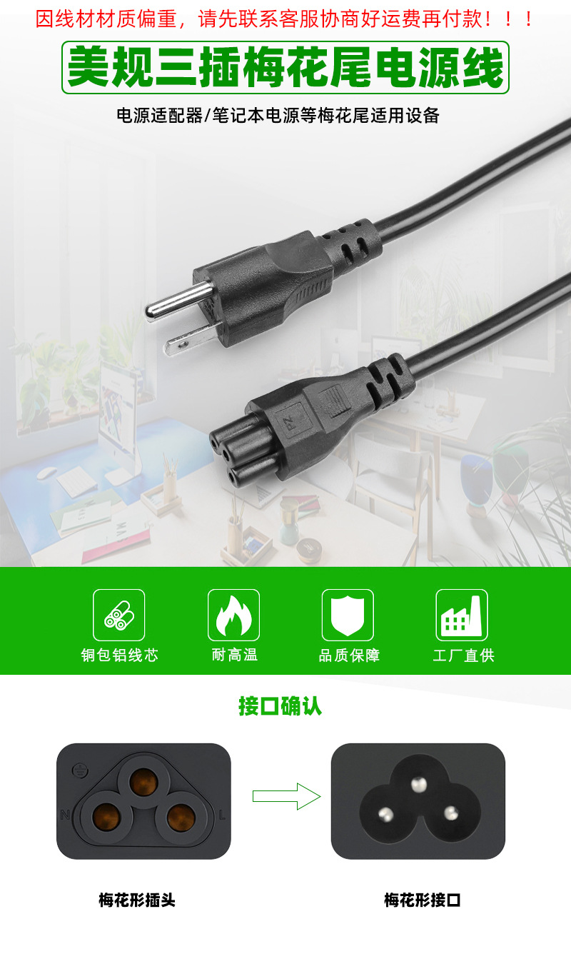 1,2 м американский стандарт сливовый хвост шнур питания с тремя отверстиями, подходящий для зарядной вилки адаптера ноутбука Lenovo HP