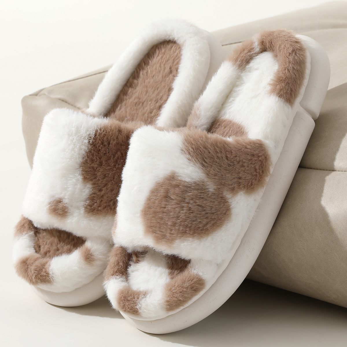 Пушистые тапочки с толстой подошвой в сказочном стиле, женская верхняя одежда, осень 2022, новый стиль, плюшевые домашние хлопковые тапочки