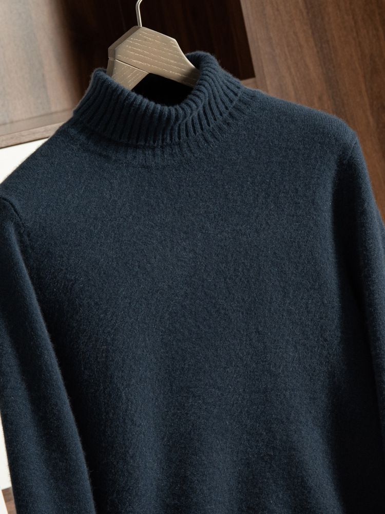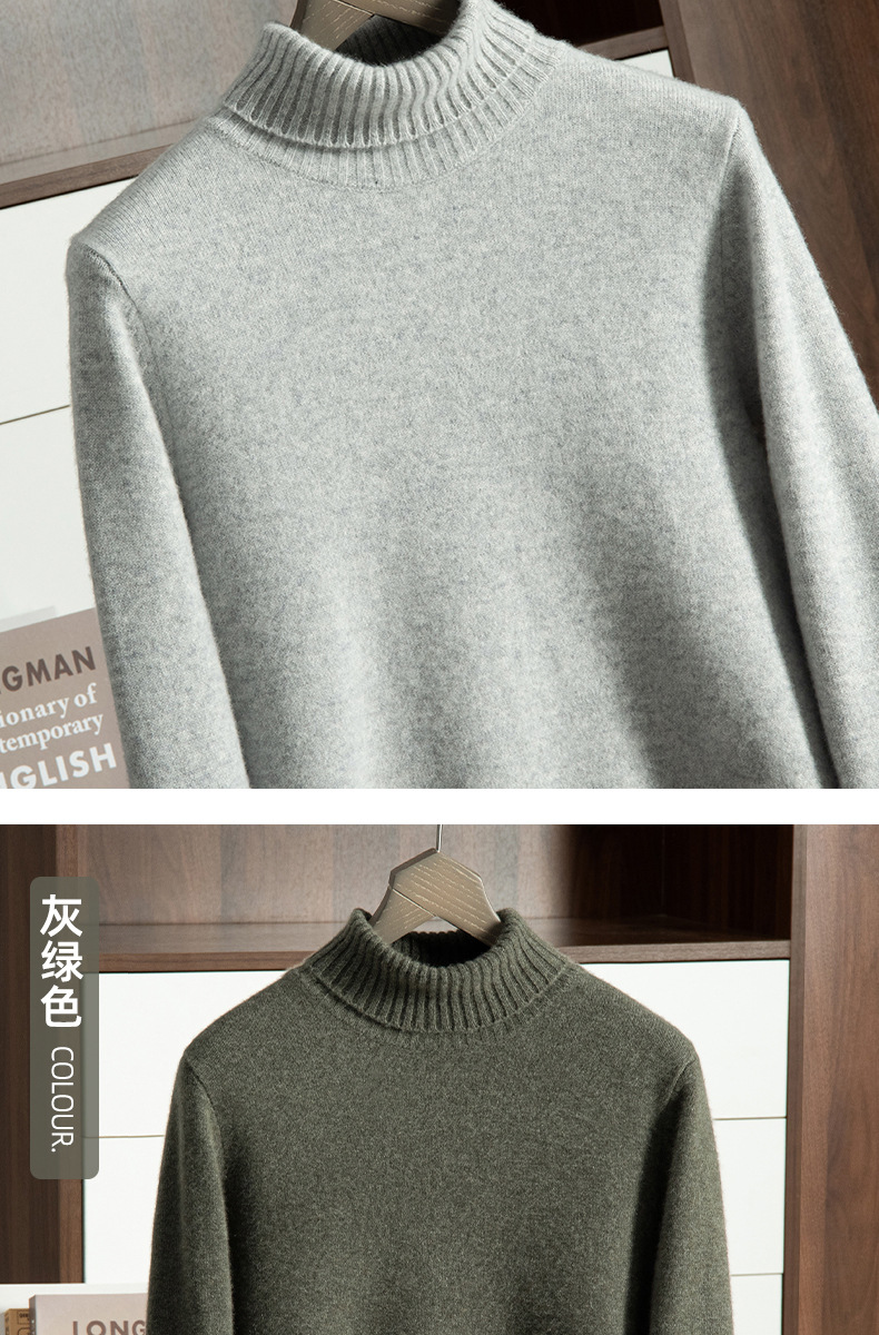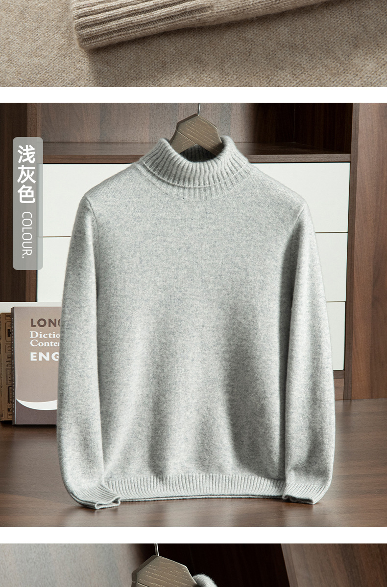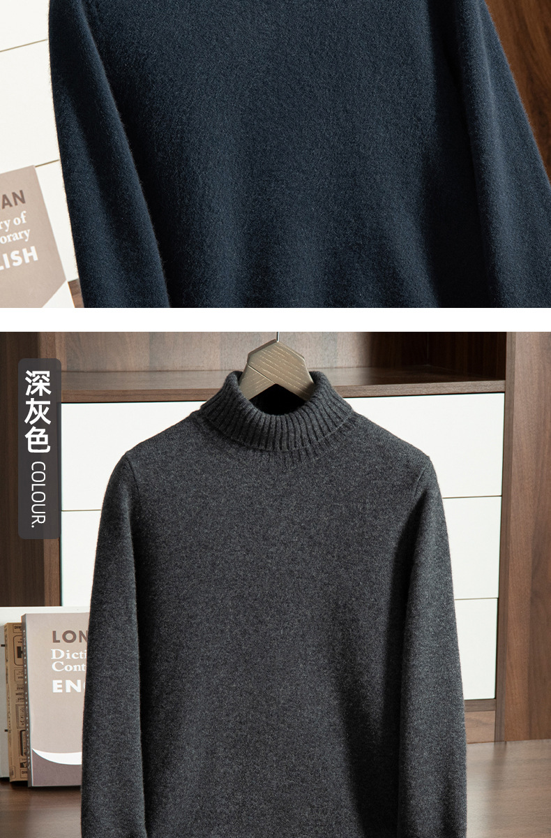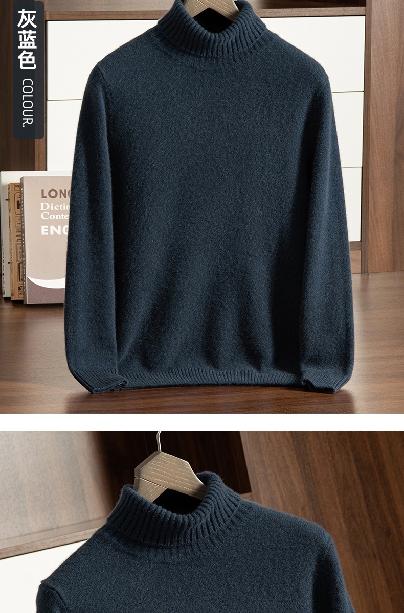 Трансграничный осенне-зимний новый однотонный вязаный осенне-зимний пуловер с высоким воротником, теплый мужской базовый свитер, кашемировый свитер