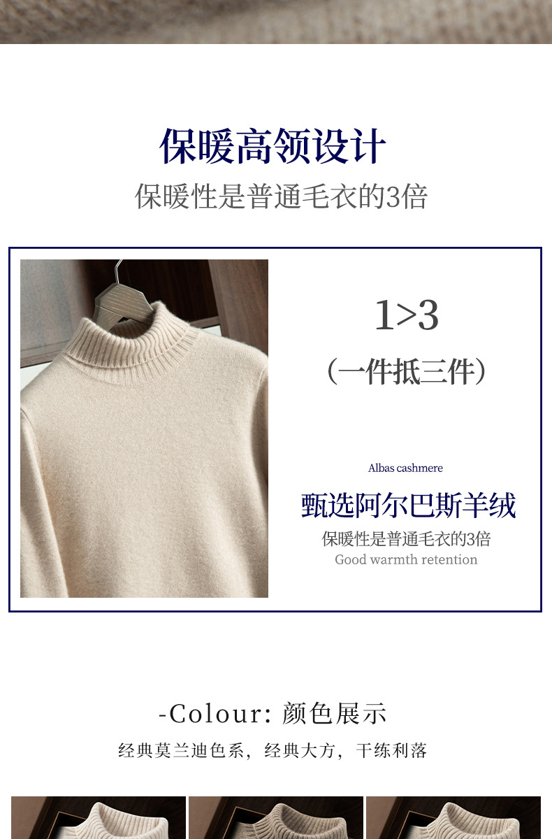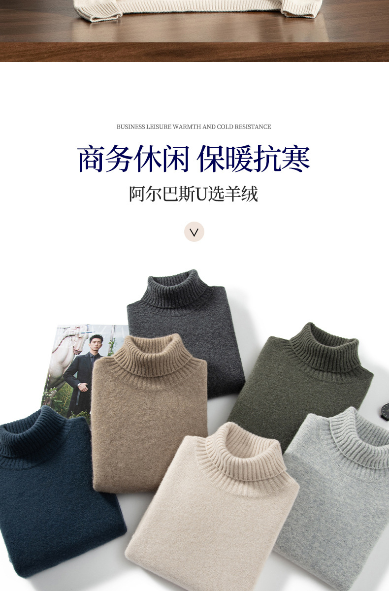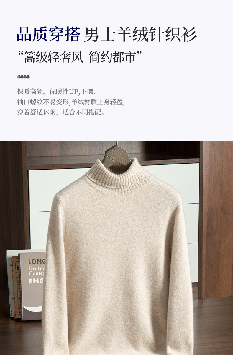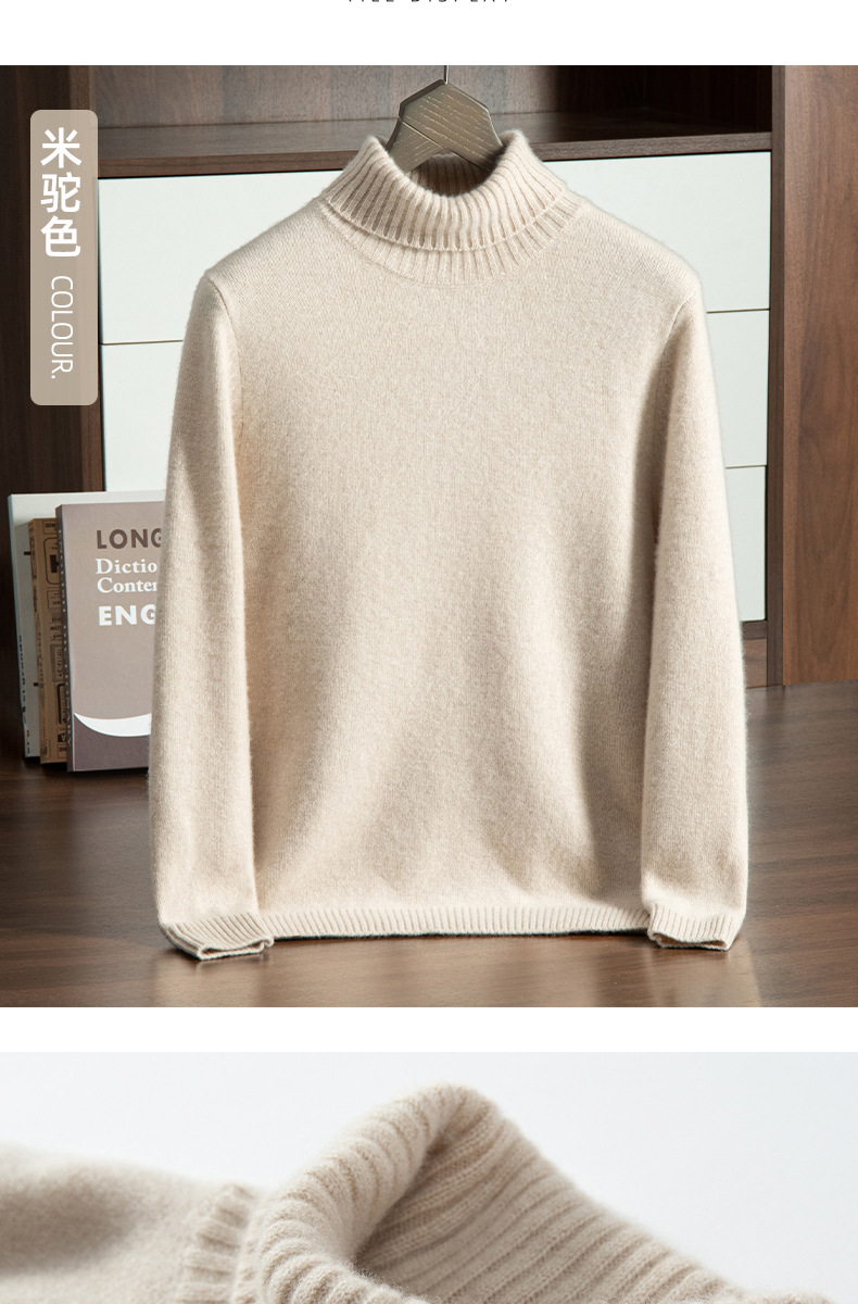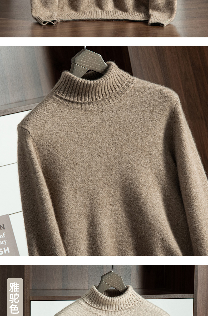 Трансграничный осенне-зимний новый однотонный вязаный осенне-зимний пуловер с высоким воротником, теплый мужской базовый свитер, кашемировый свитер