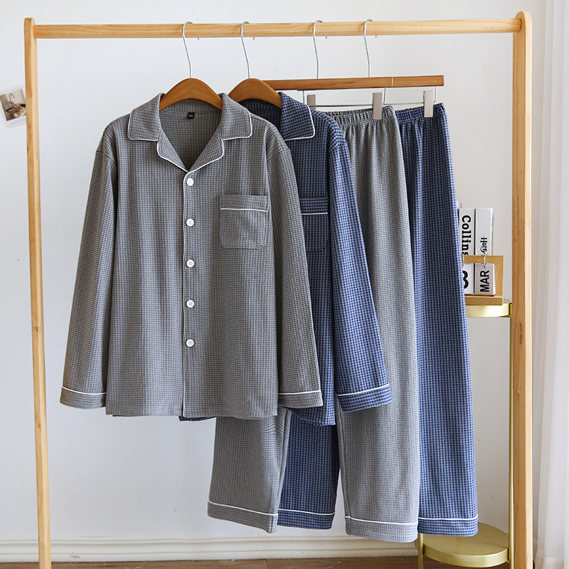 Осенне-зимняя мужская теплая бархатная Пижама, кардиган с начесом и лацканами, тонкая бархатная Домашняя одежда, костюм Повседневный больших размеров в японском стиле