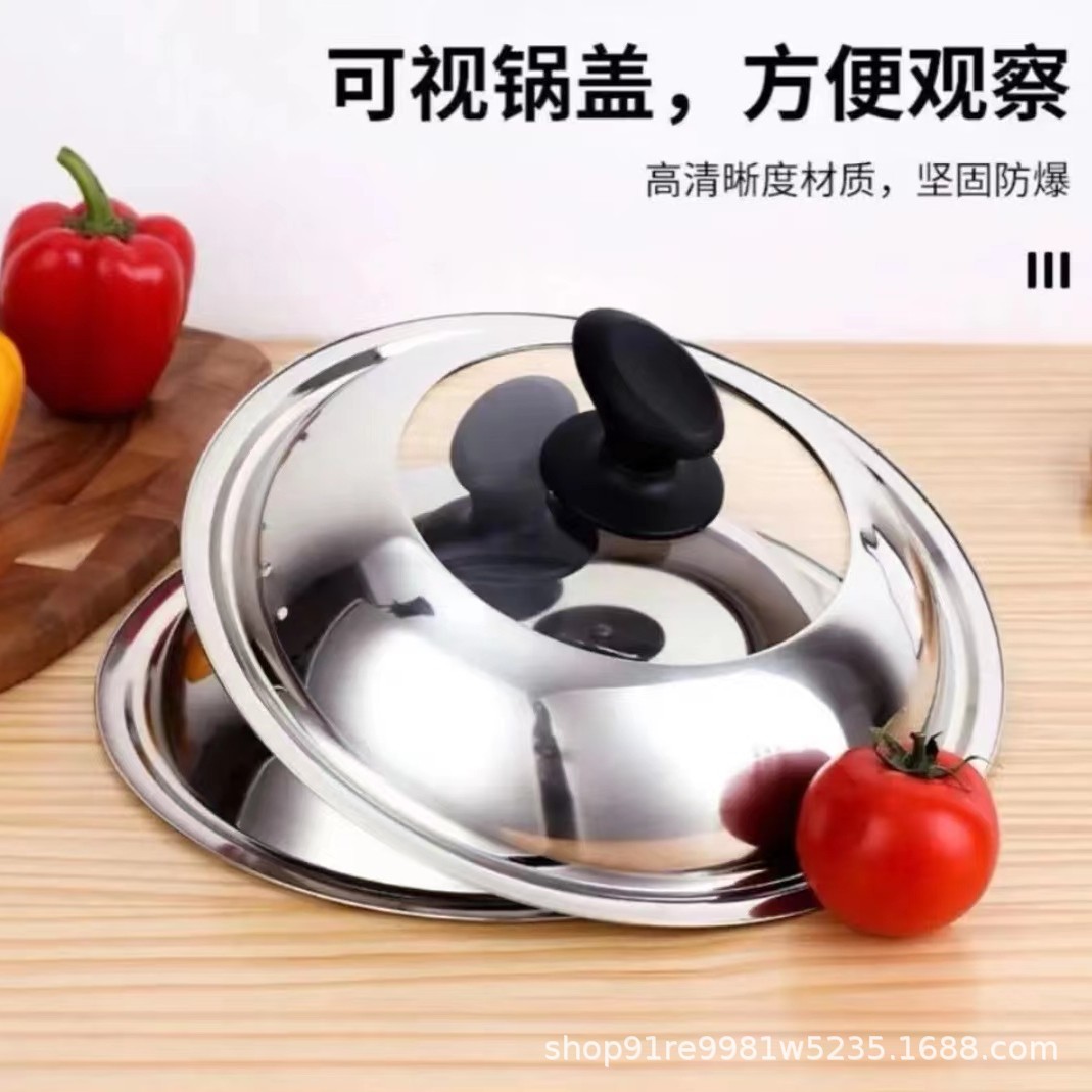 Оптовая продажа, крышка кастрюли из нержавеющей стали, бытовая крышка кастрюли из закаленного стекла, универсальная визуальная, устойчивая к высоким температурам, крышка кастрюли 36 см