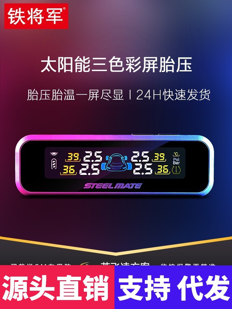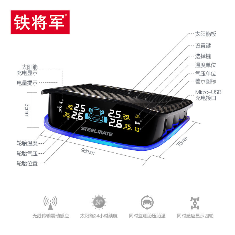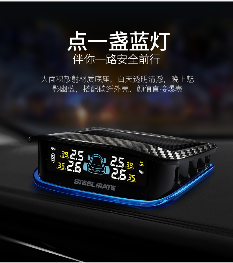 Iron General X2X1E3 автомобильный монитор давления в шинах Солнечный беспроводной детектор встроенный кольцевой атмосферный свет с углеродным волокном