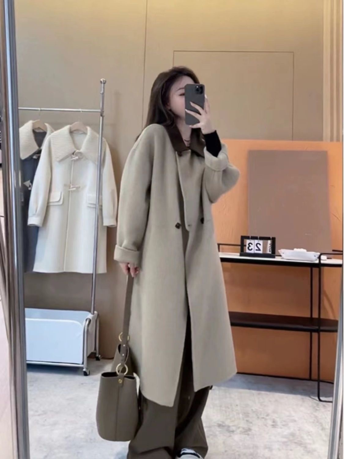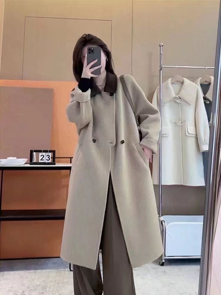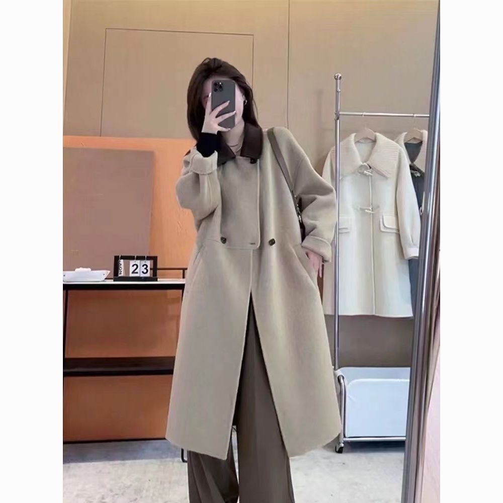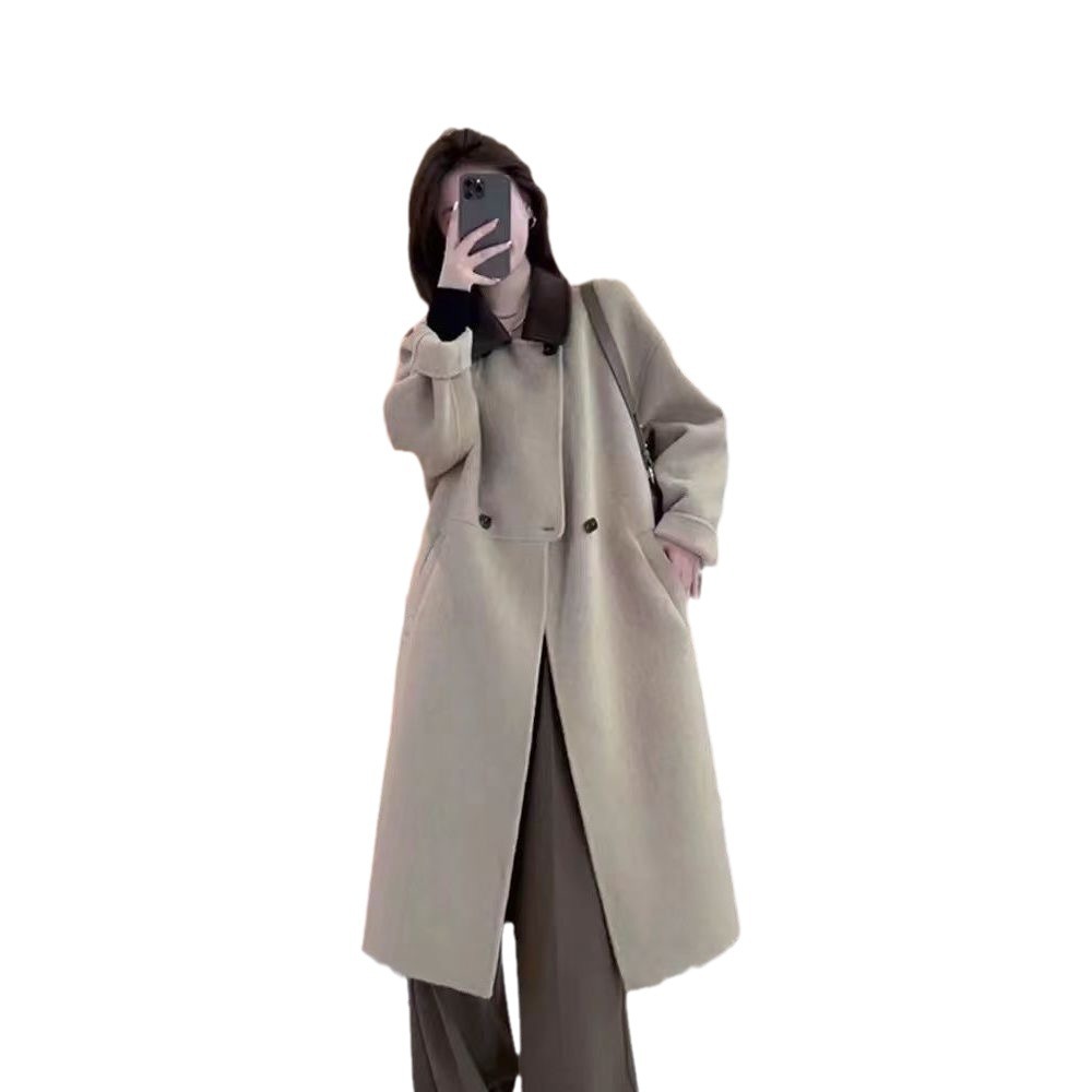 Двустороннее шерстяное пальто 2023 осень-зима, новое свободное модное пальто в Корейском стиле с цветными блоками, длинное шерстяное пальто