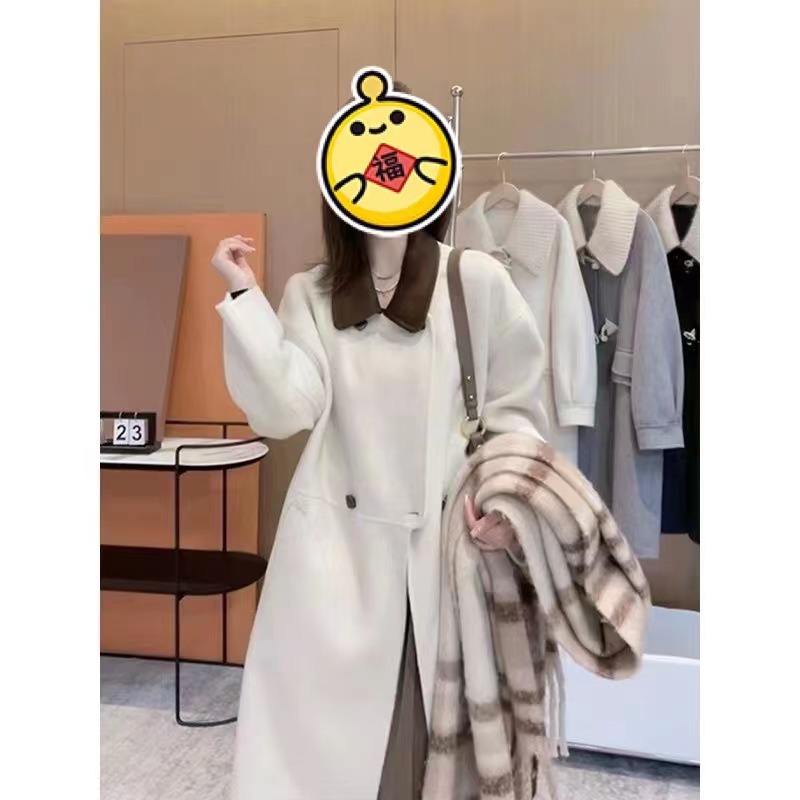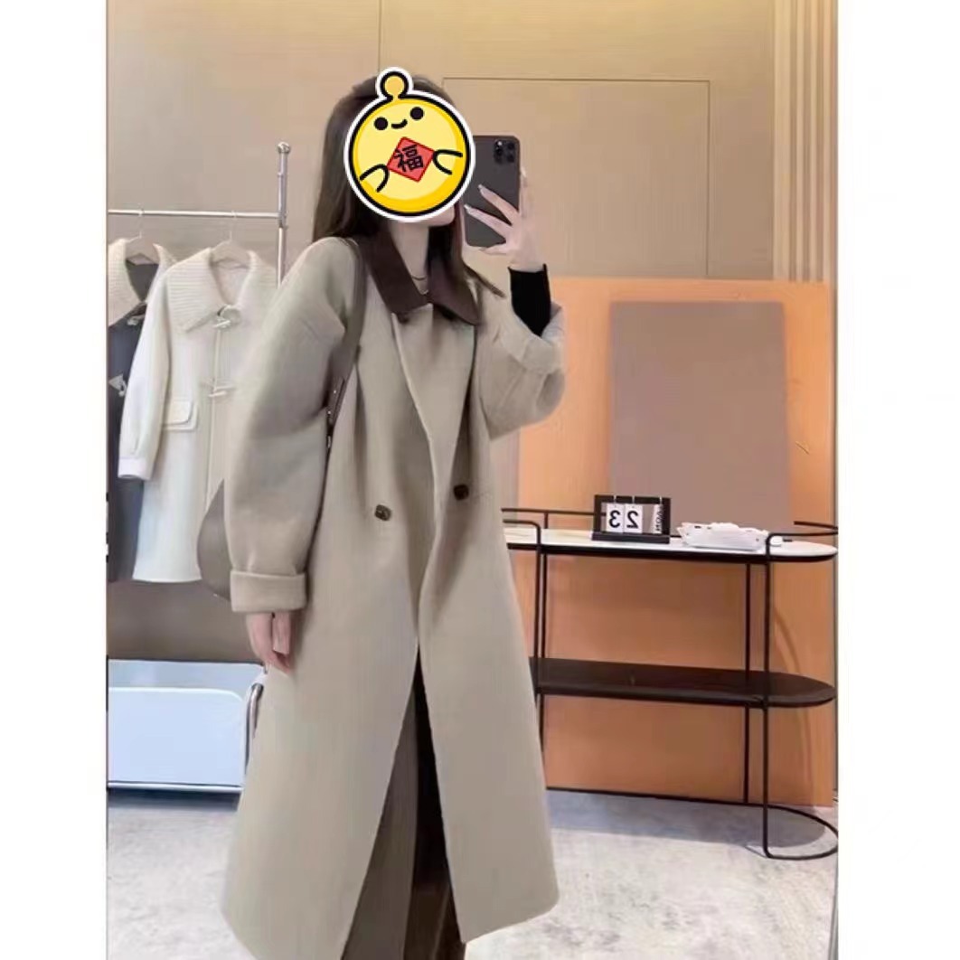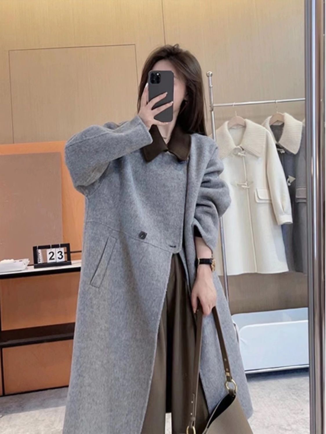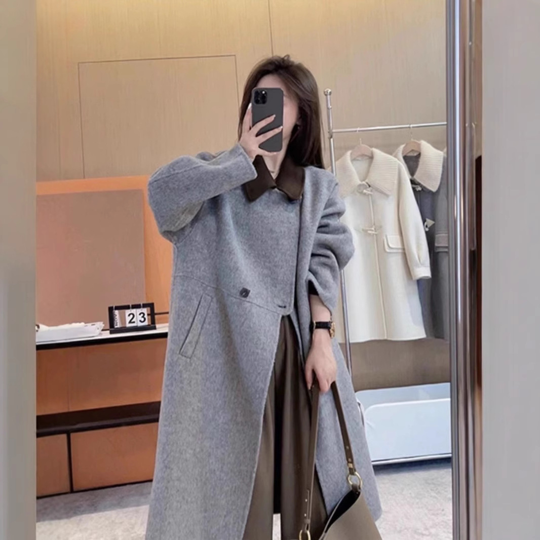 Двустороннее шерстяное пальто 2023 осень-зима, новое свободное модное пальто в Корейском стиле с цветными блоками, длинное шерстяное пальто