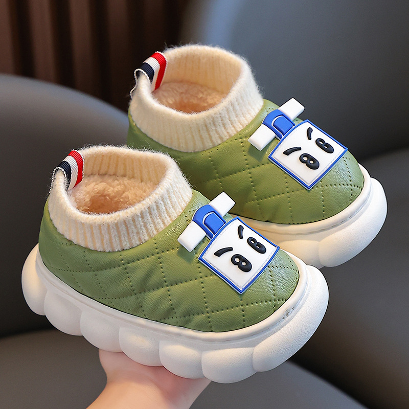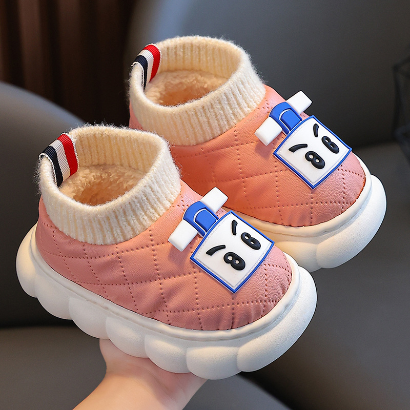 Детские хлопковые тапочки, зимняя непромокаемая сумка для мальчика, милая девочка, теплая Домашняя Нескользящая шерстяная хлопковая обувь на флисовой подкладке