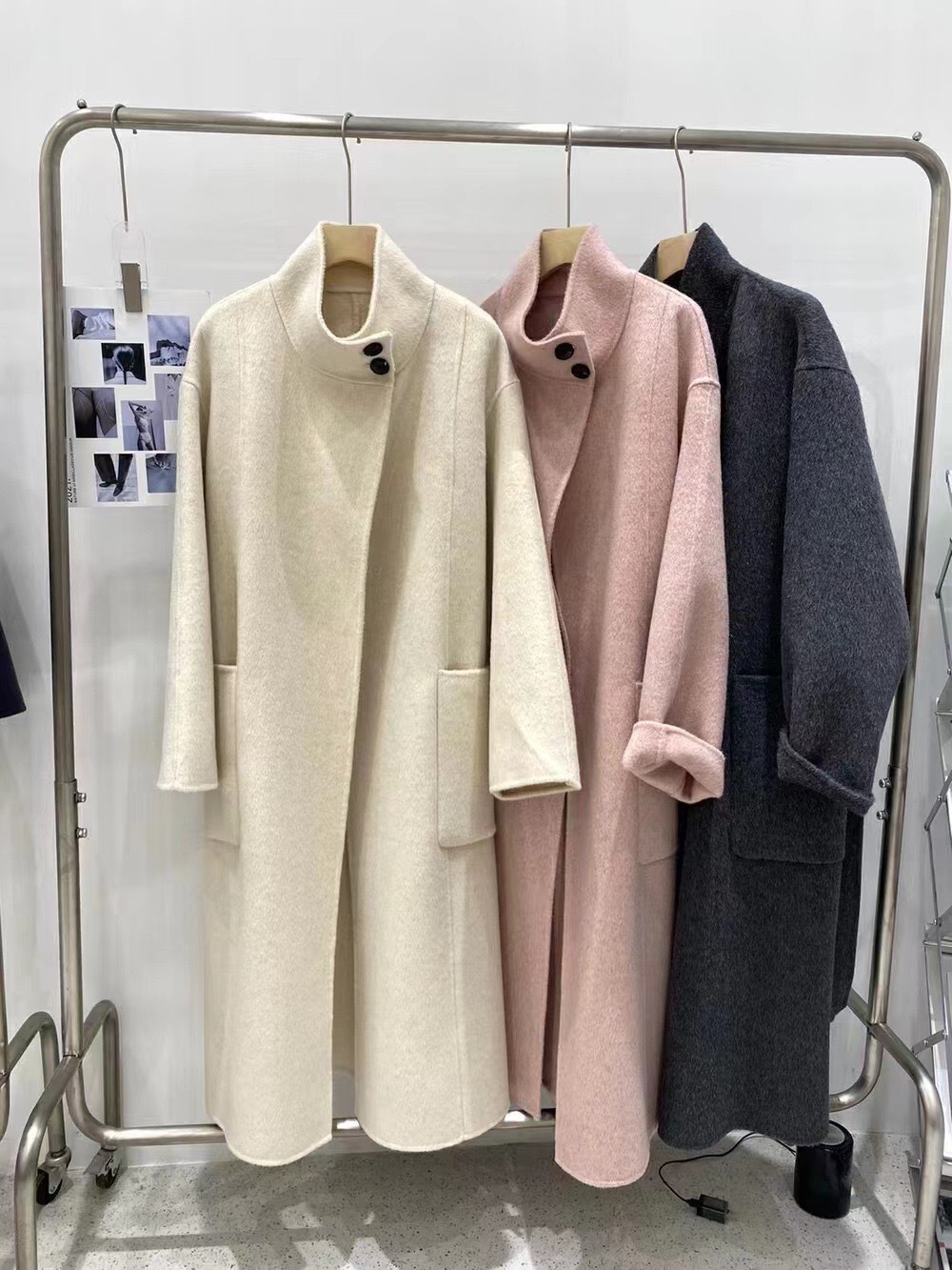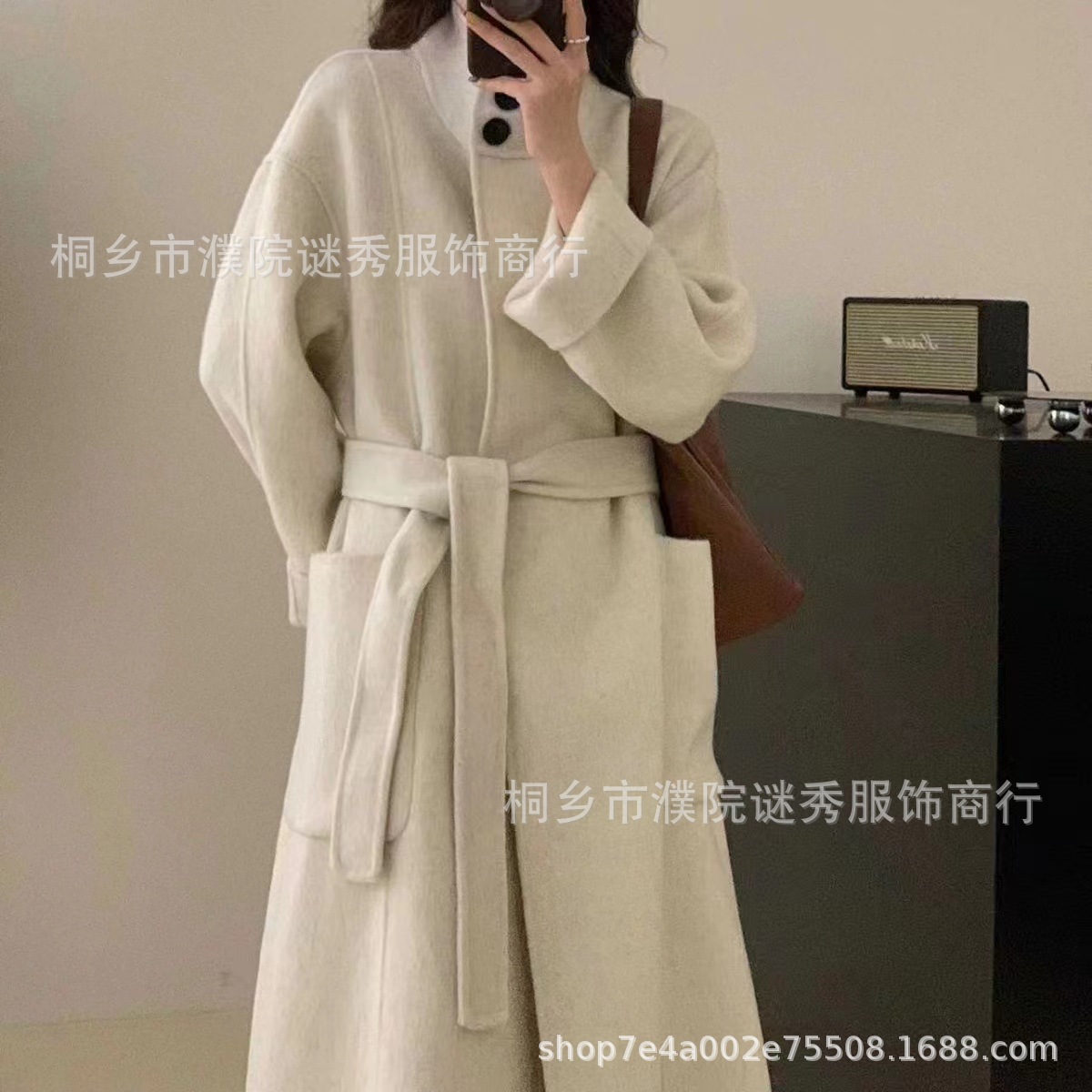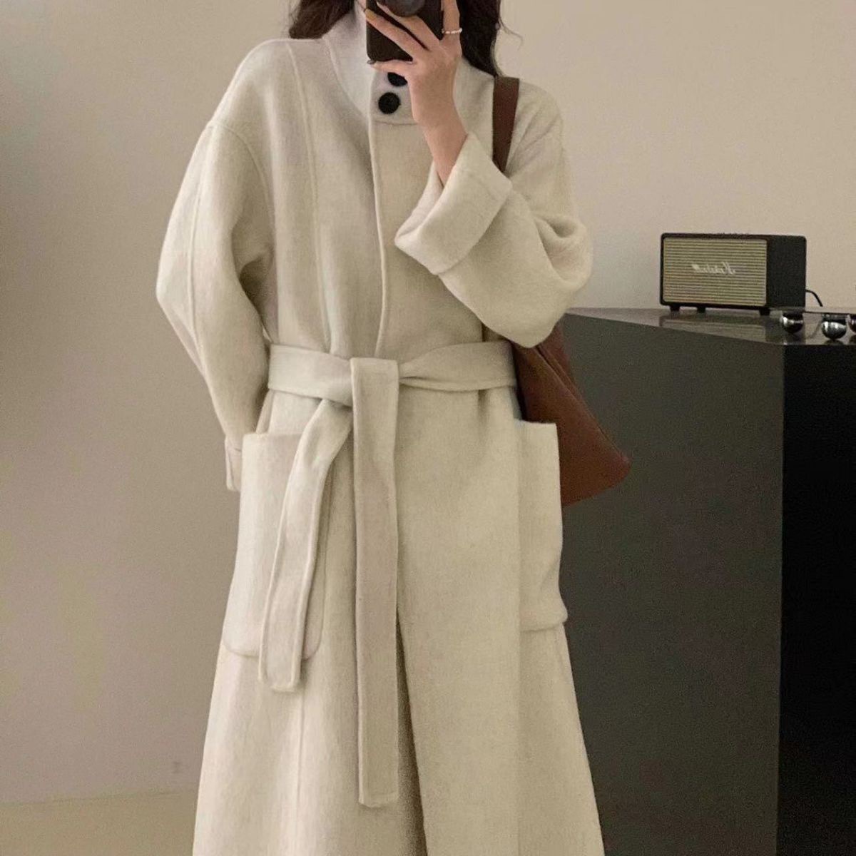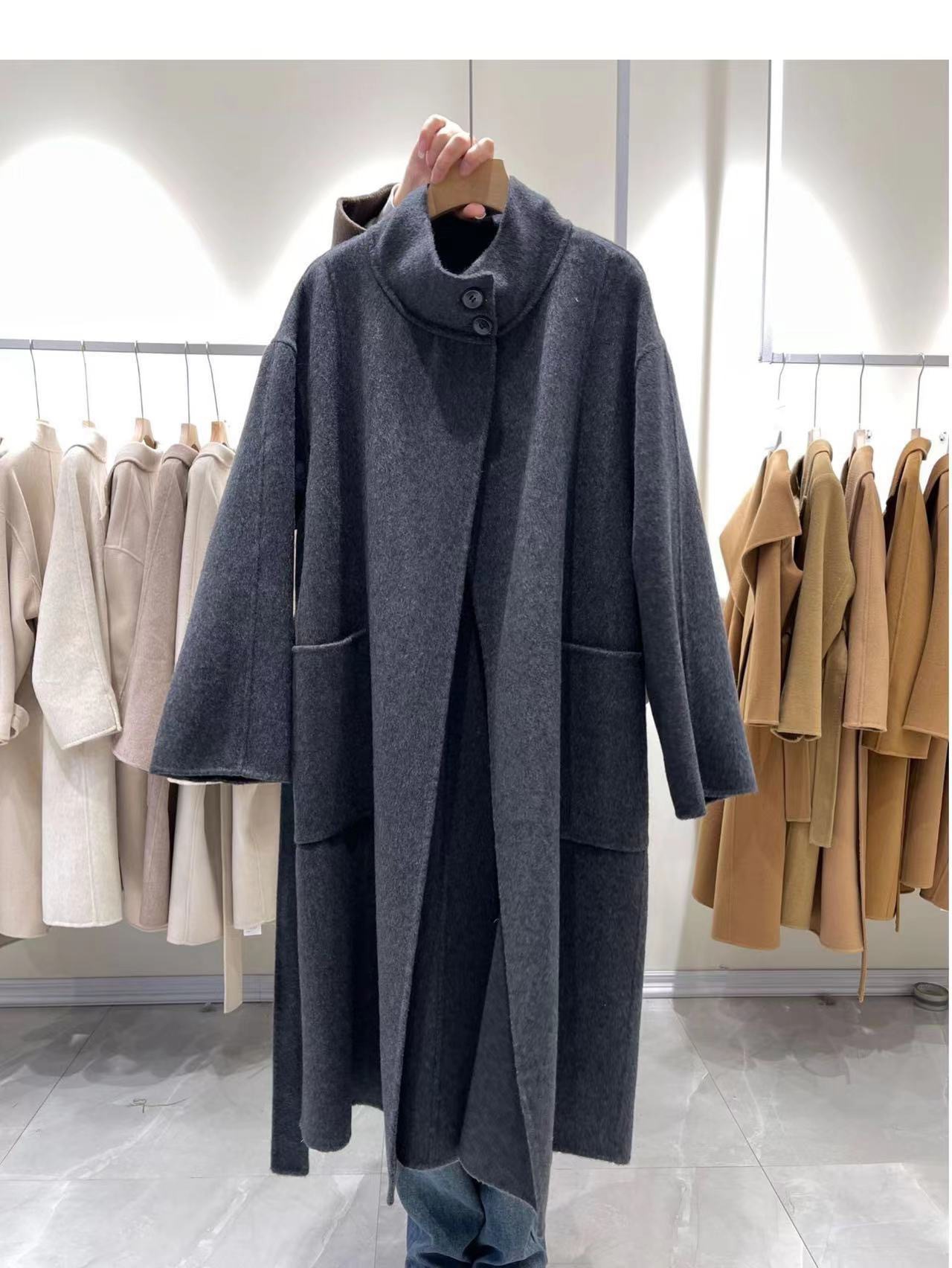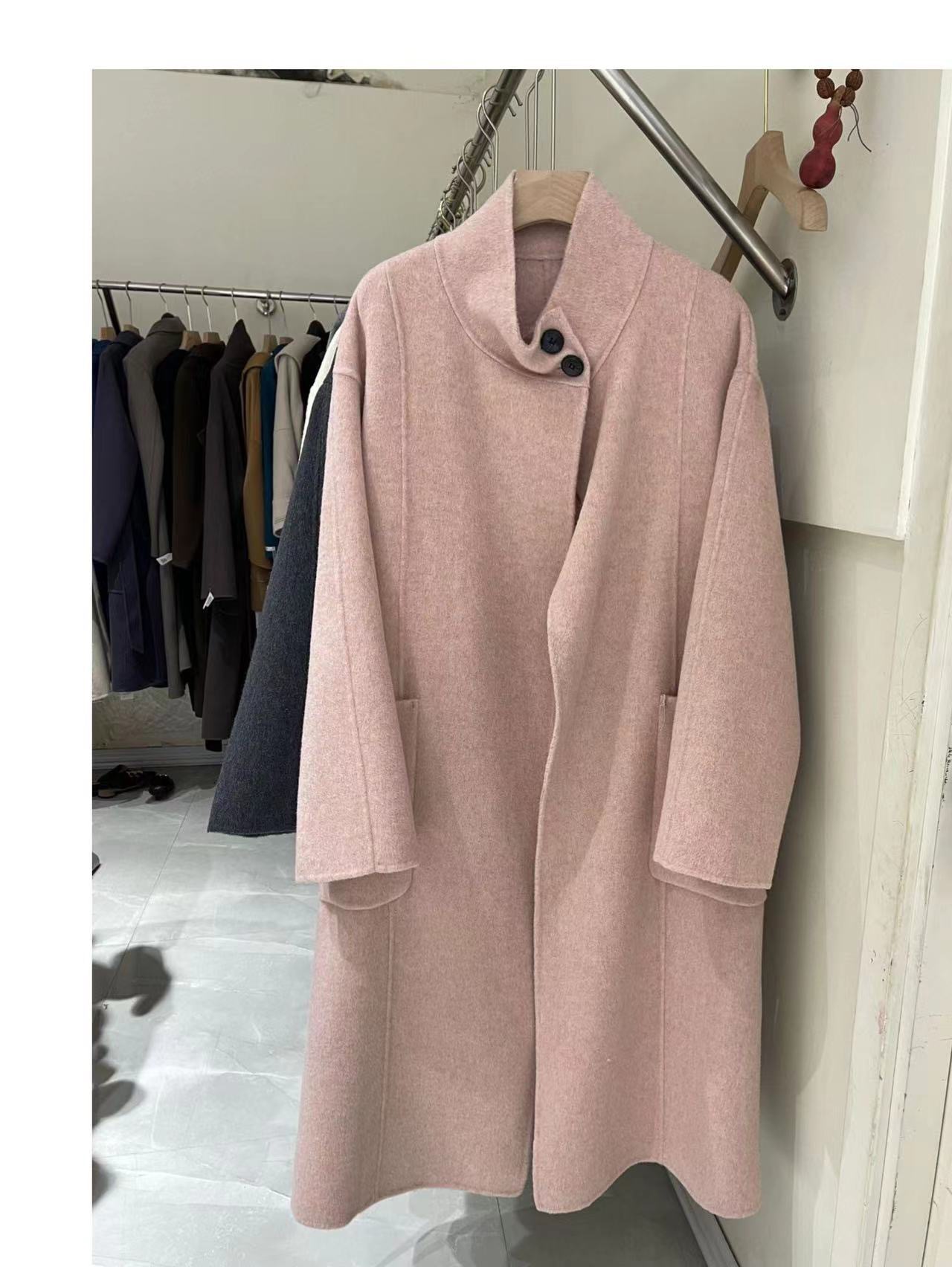 Двустороннее кашемировое пальто для женщин, средней длины, с воротником-стойкой, в стиле Хепберн, свободного кроя, миниатюрное шерстяное пальто, элегантный стиль.