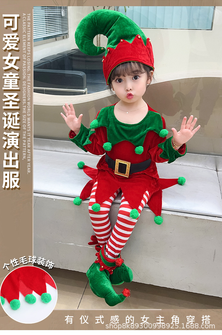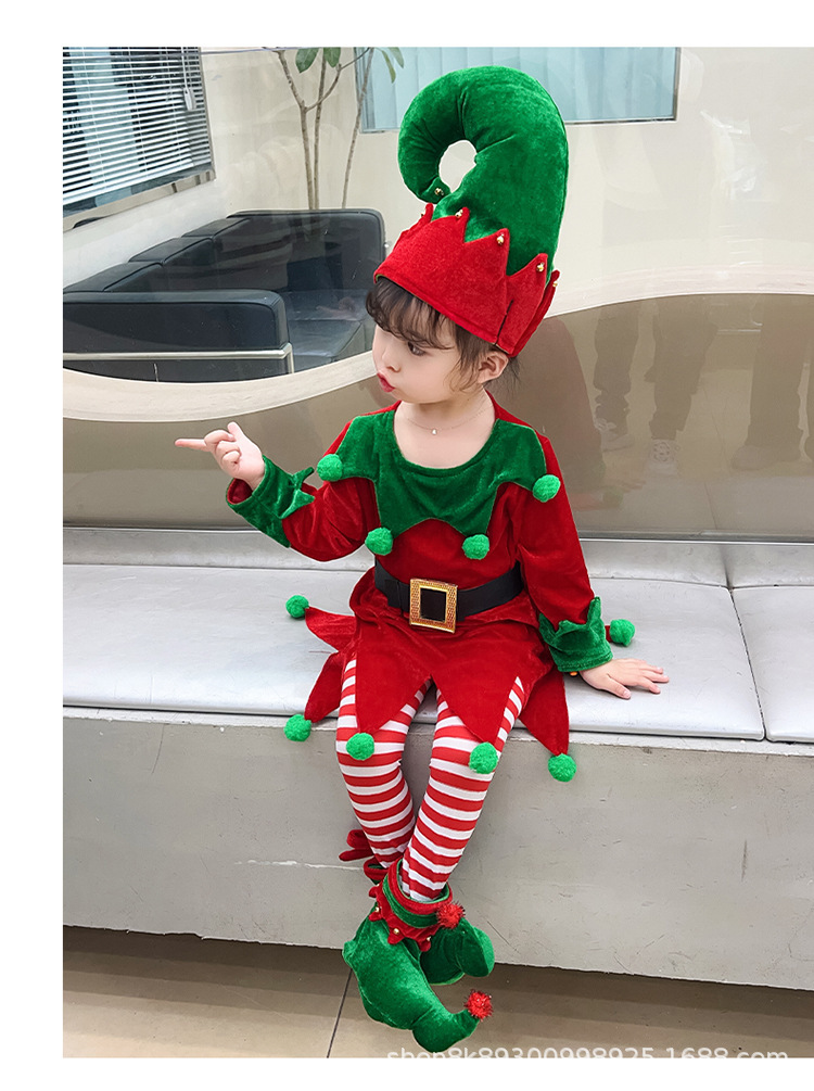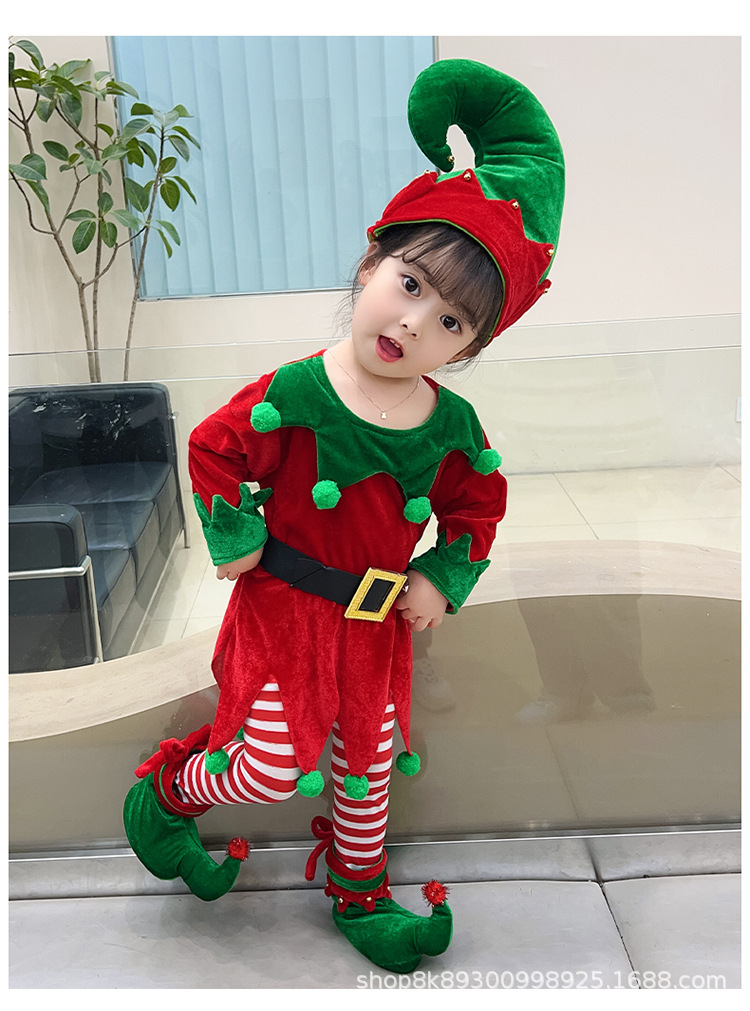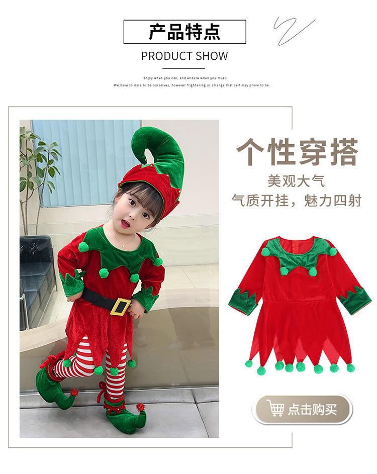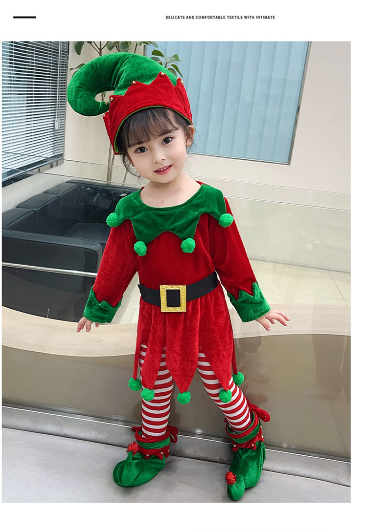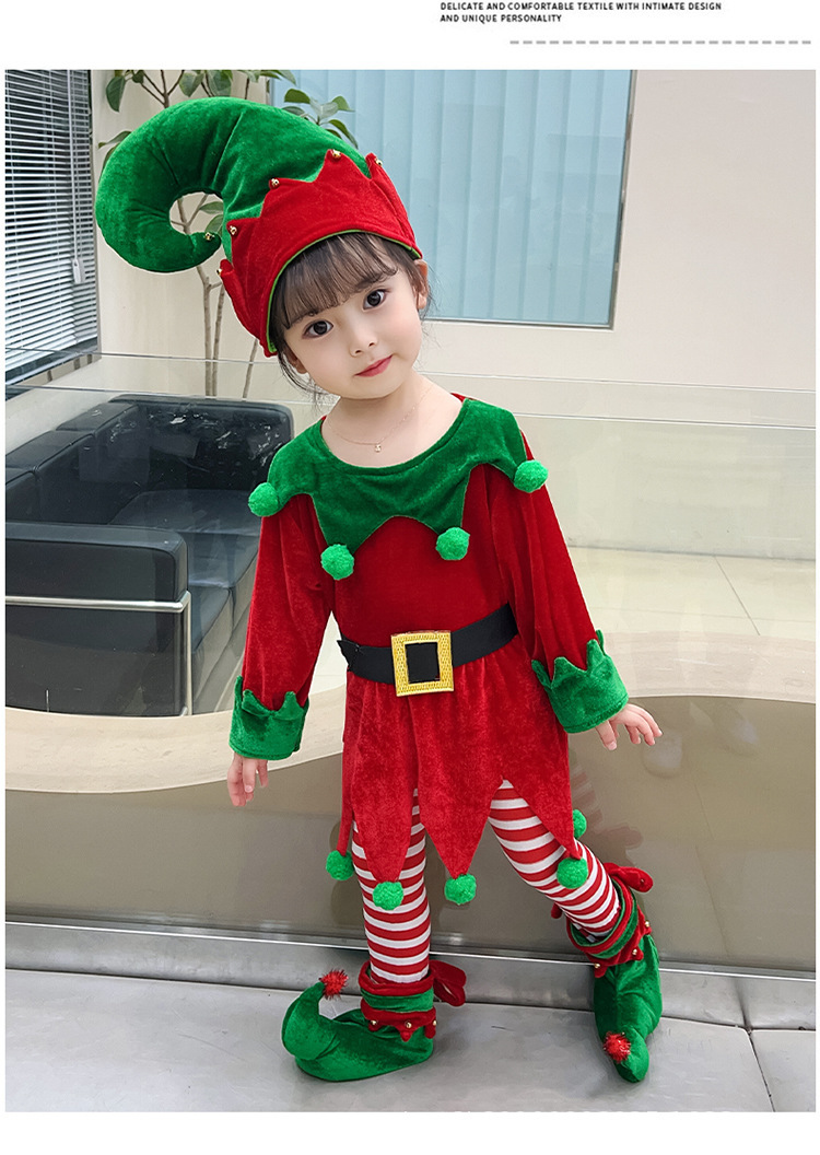 Рождественский Детский костюм L Зеленый Красный Эльф платье для девочек костюм рождественское платье костюм одежда