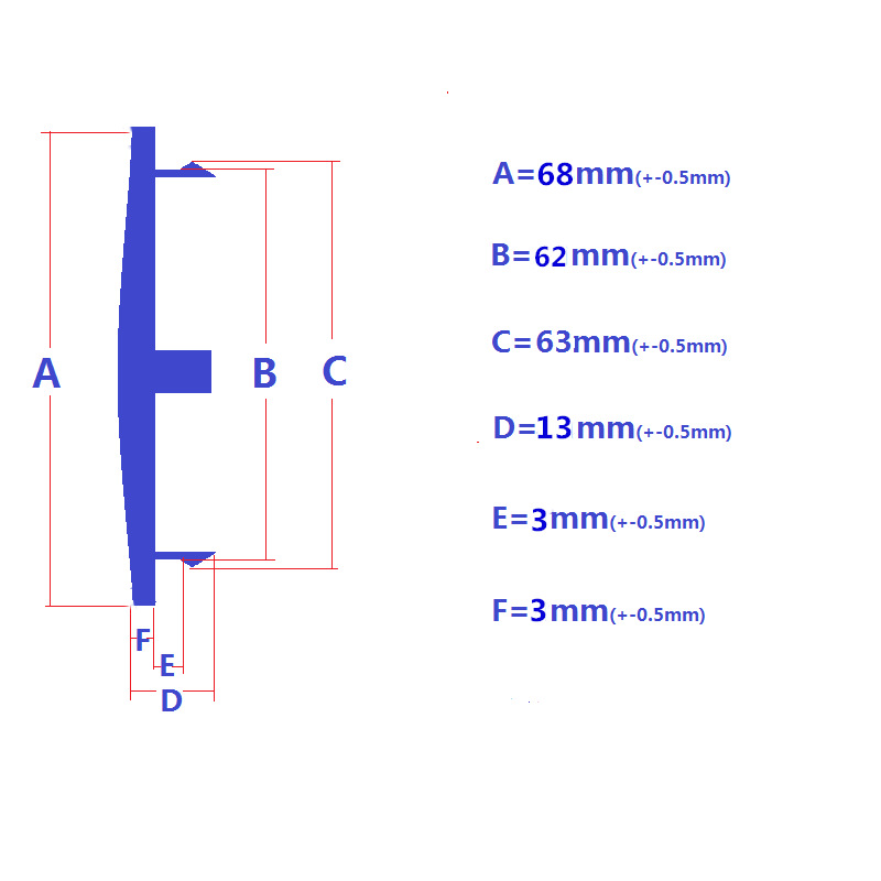 外径68MM,弧面也可以加粘贴 68MM的标志。
