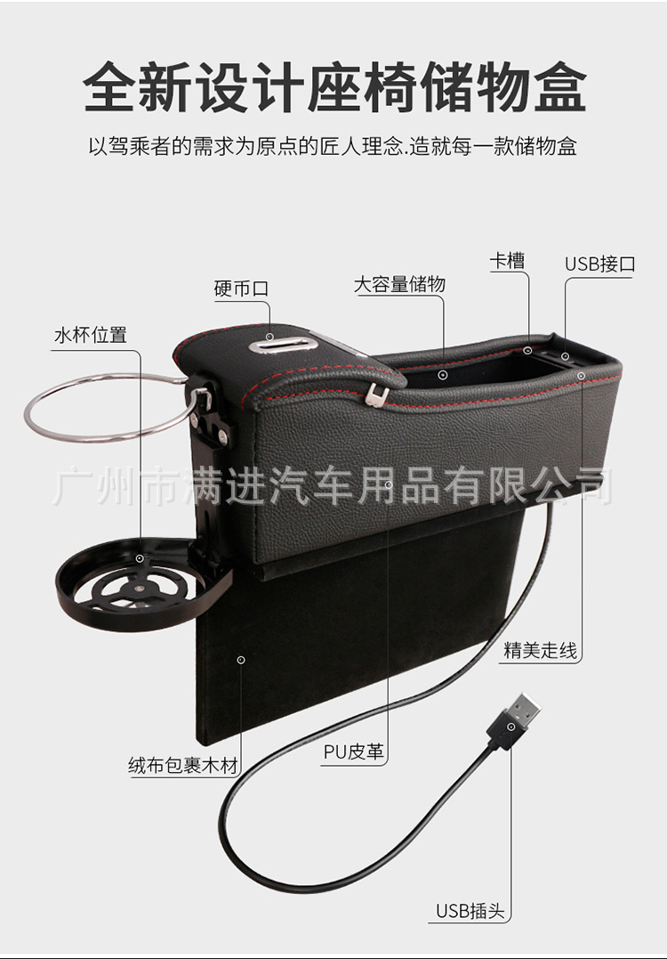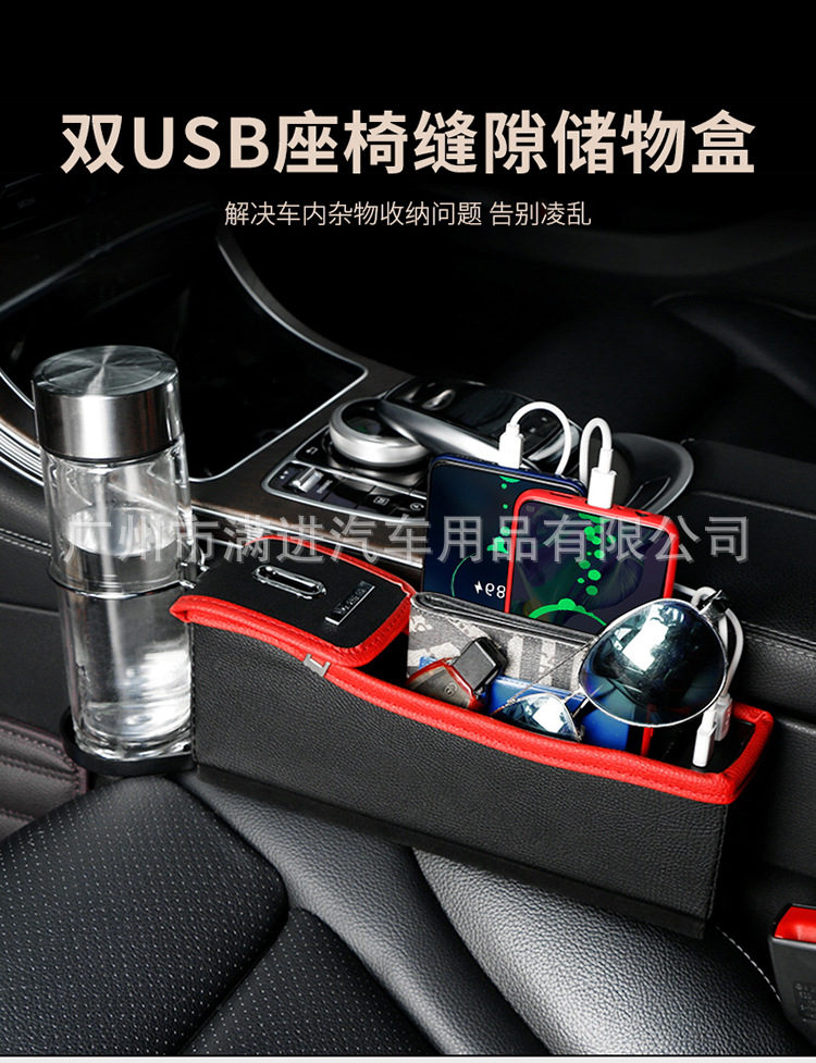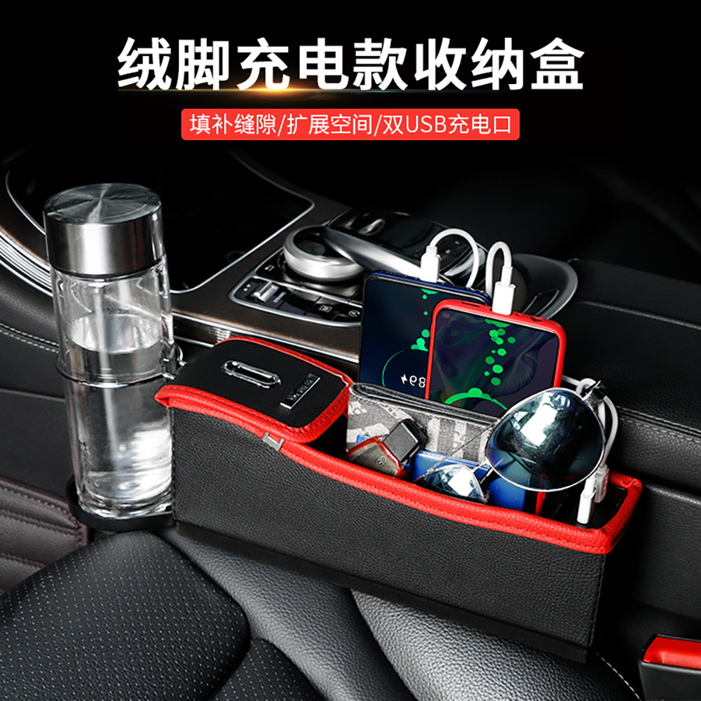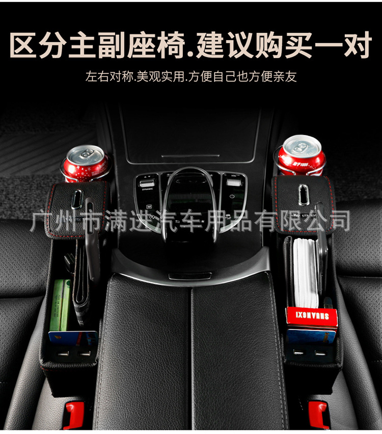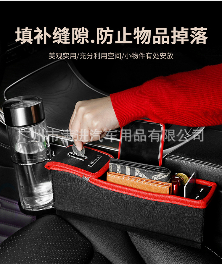 Автокресло Ящик для хранения зазора Подстаканник для воды Автомобильная USB-зарядка Кожаный ящик для хранения Разъем для хранения