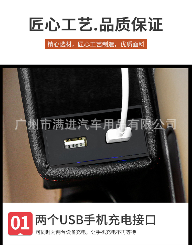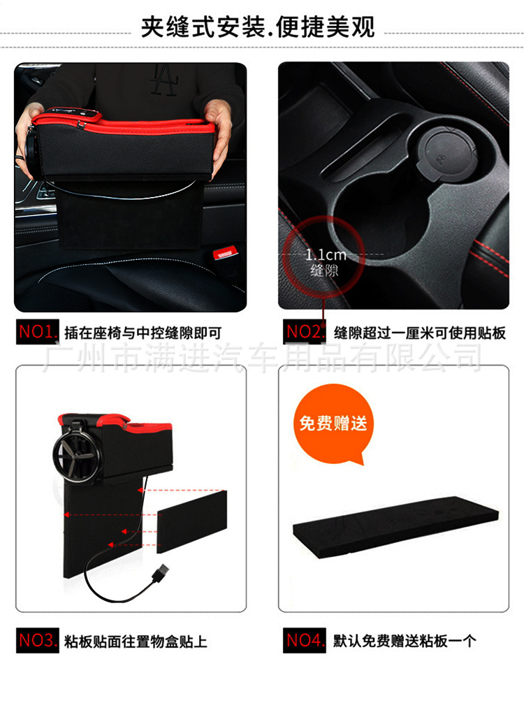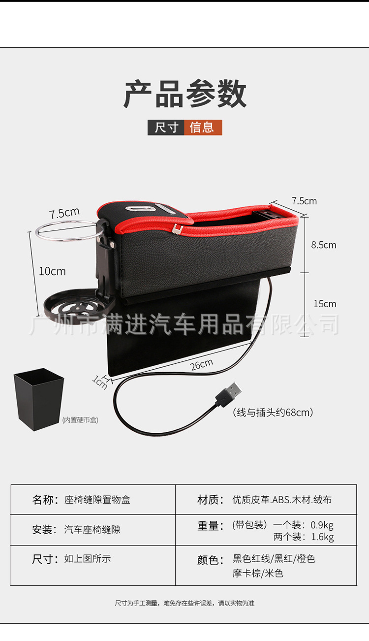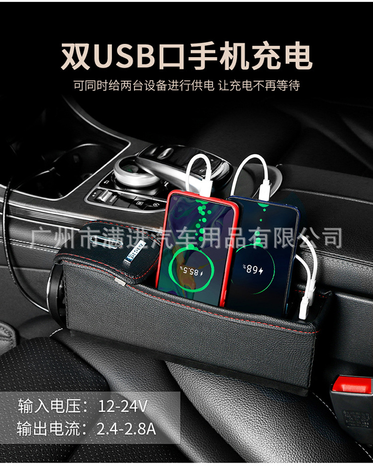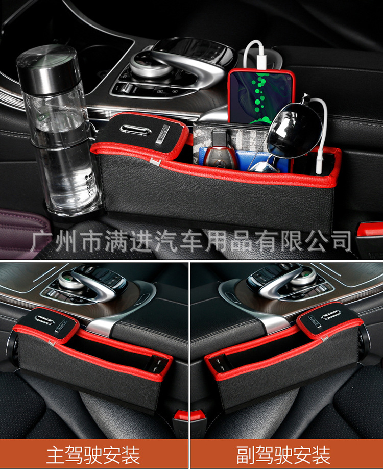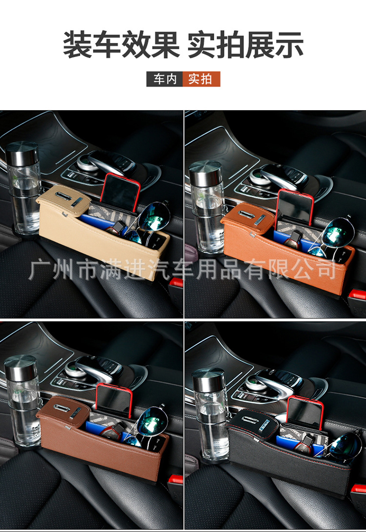 Автокресло Ящик для хранения зазора Подстаканник для воды Автомобильная USB-зарядка Кожаный ящик для хранения Разъем для хранения