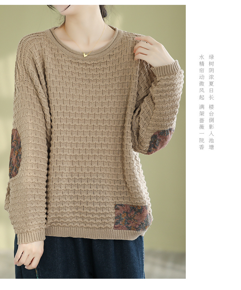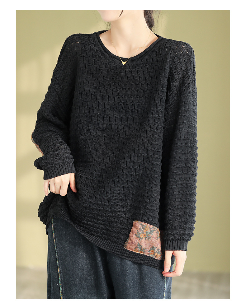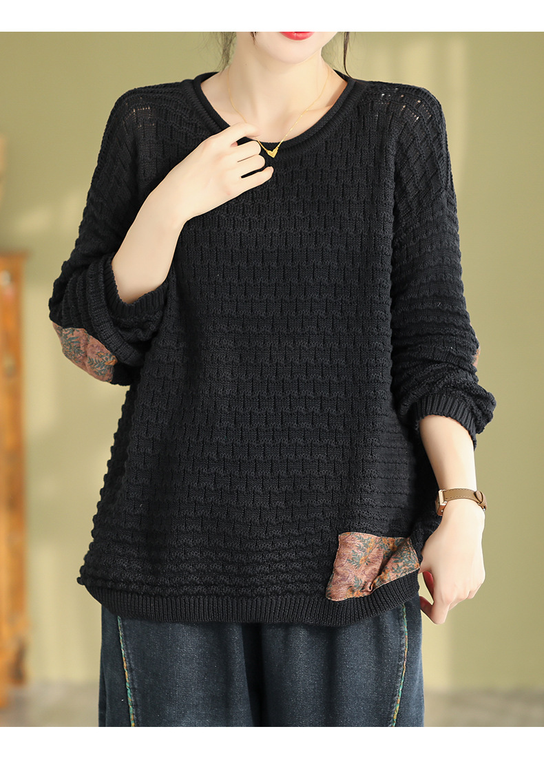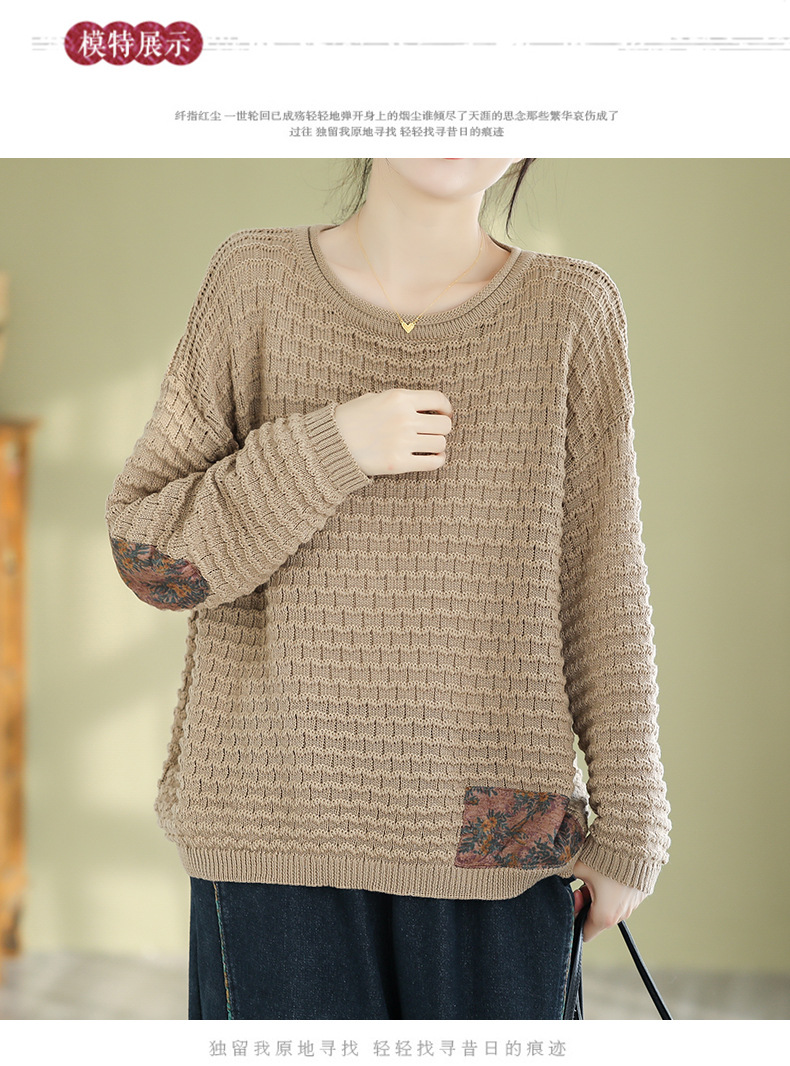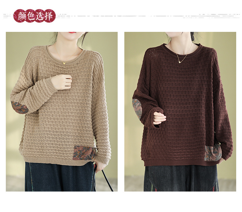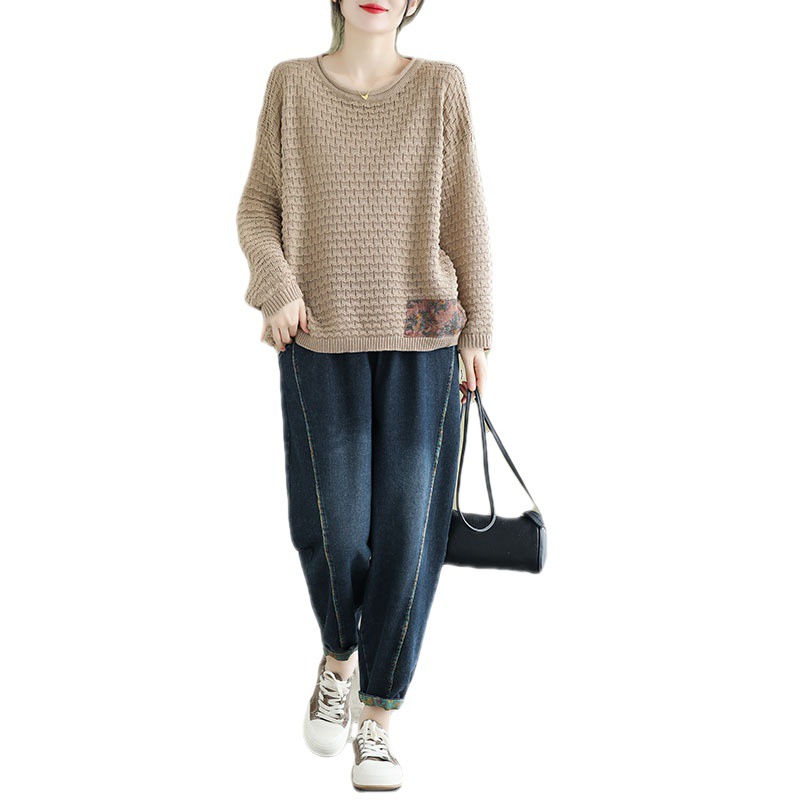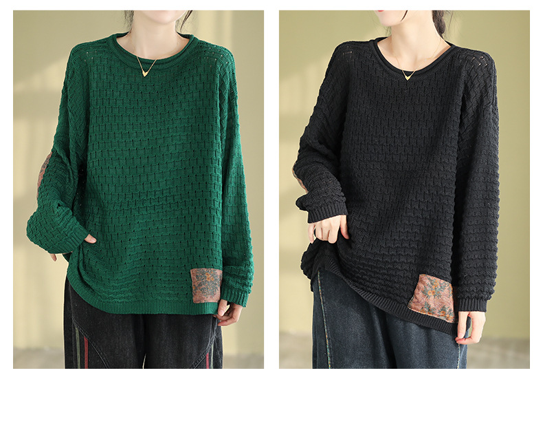 Свитер крупного размера в винтажном стиле с лоскутным узором, вязаный, свободный, повседневный, в этническом стиле, с круглым вырезом, с длинными рукавами, осень-зима 2024