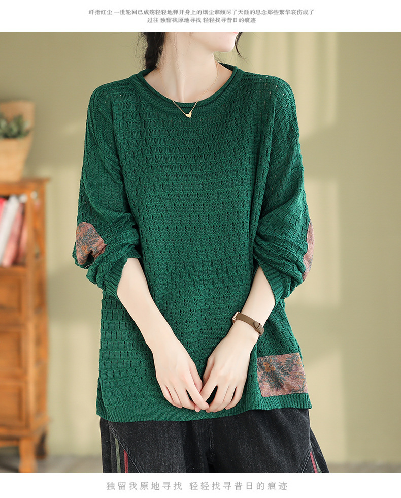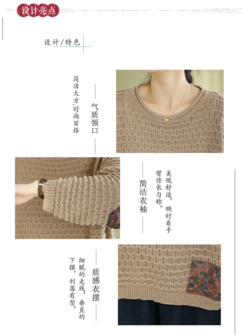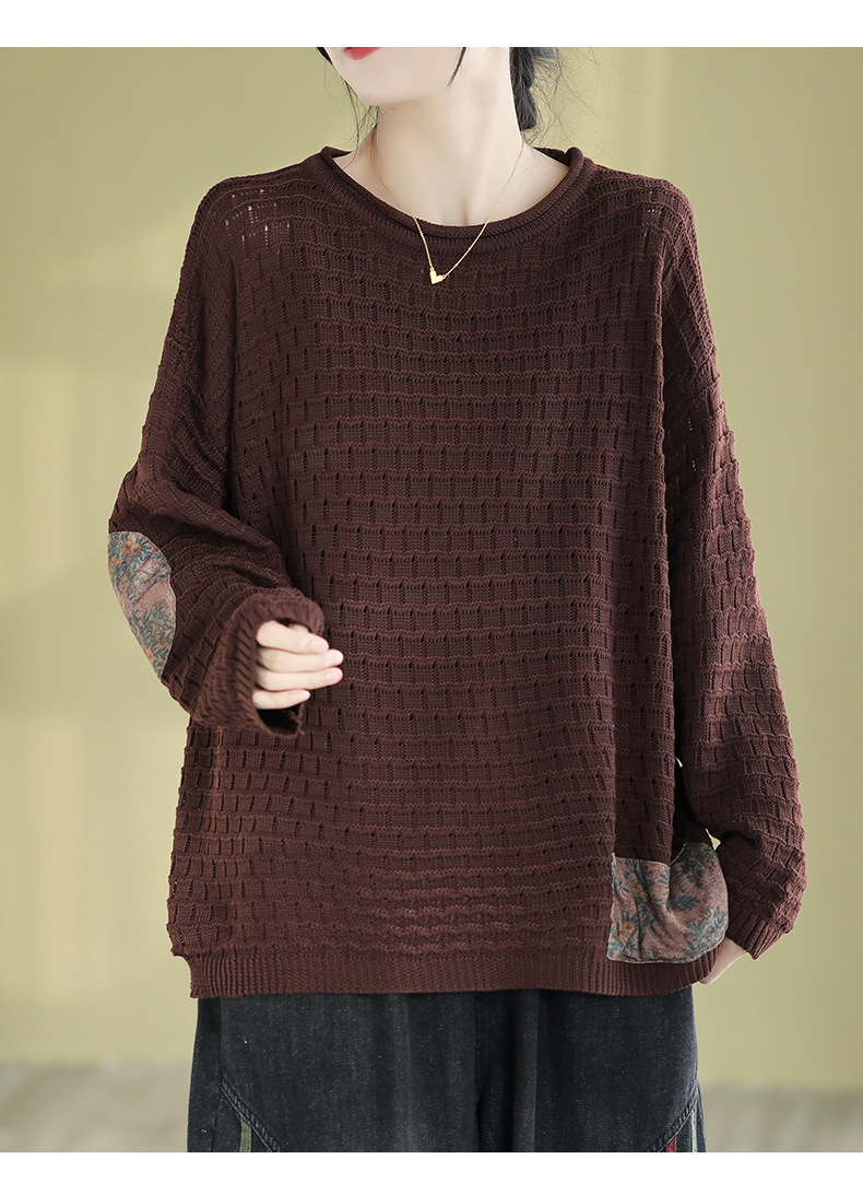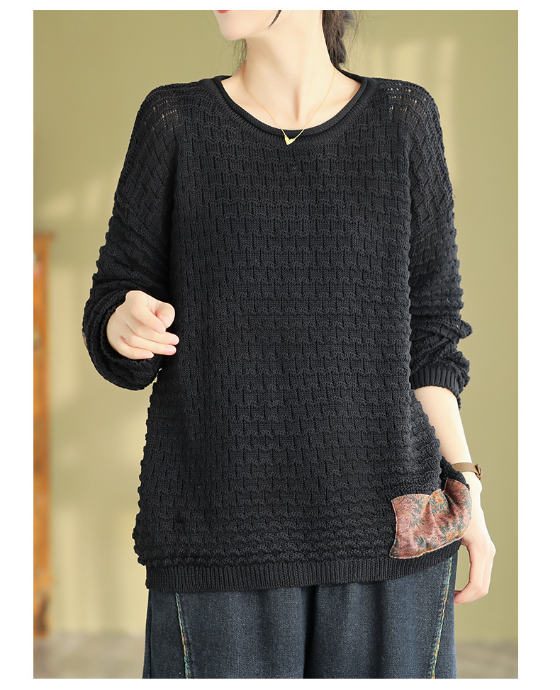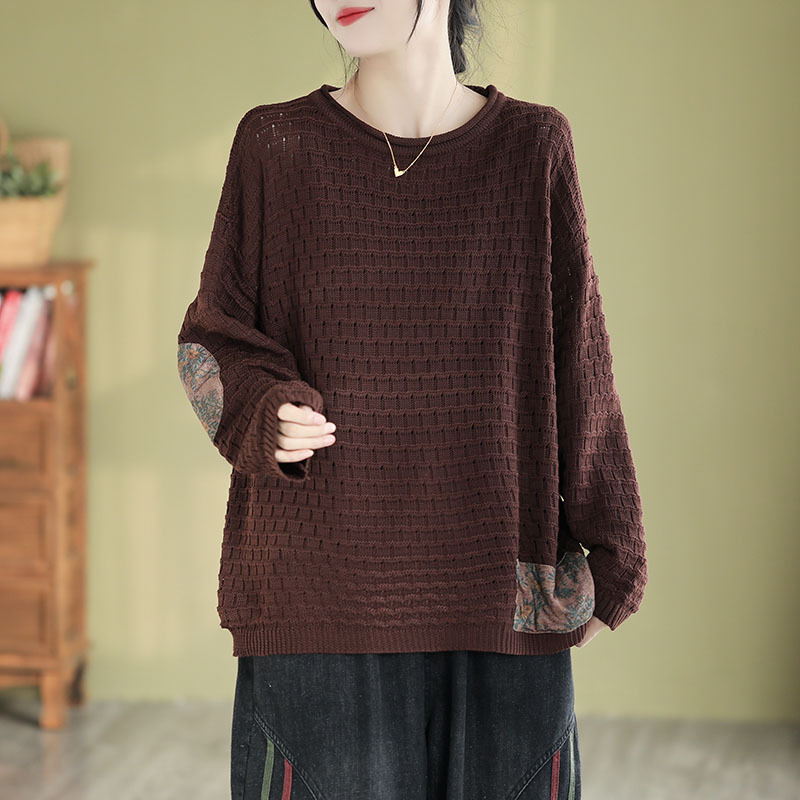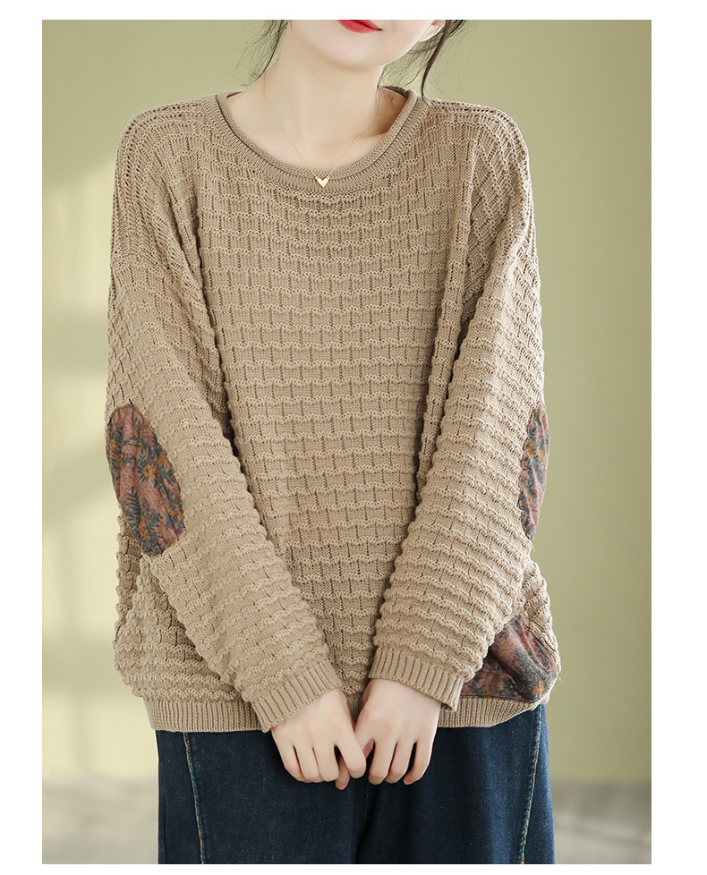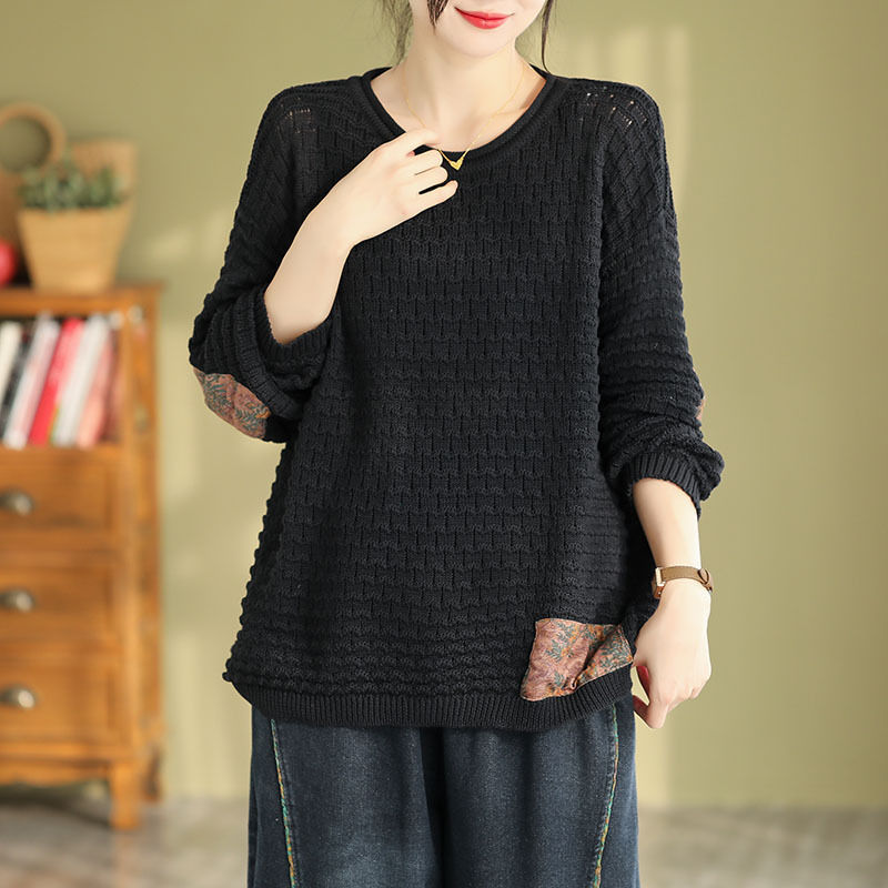 Свитер крупного размера в винтажном стиле с лоскутным узором, вязаный, свободный, повседневный, в этническом стиле, с круглым вырезом, с длинными рукавами, осень-зима 2024